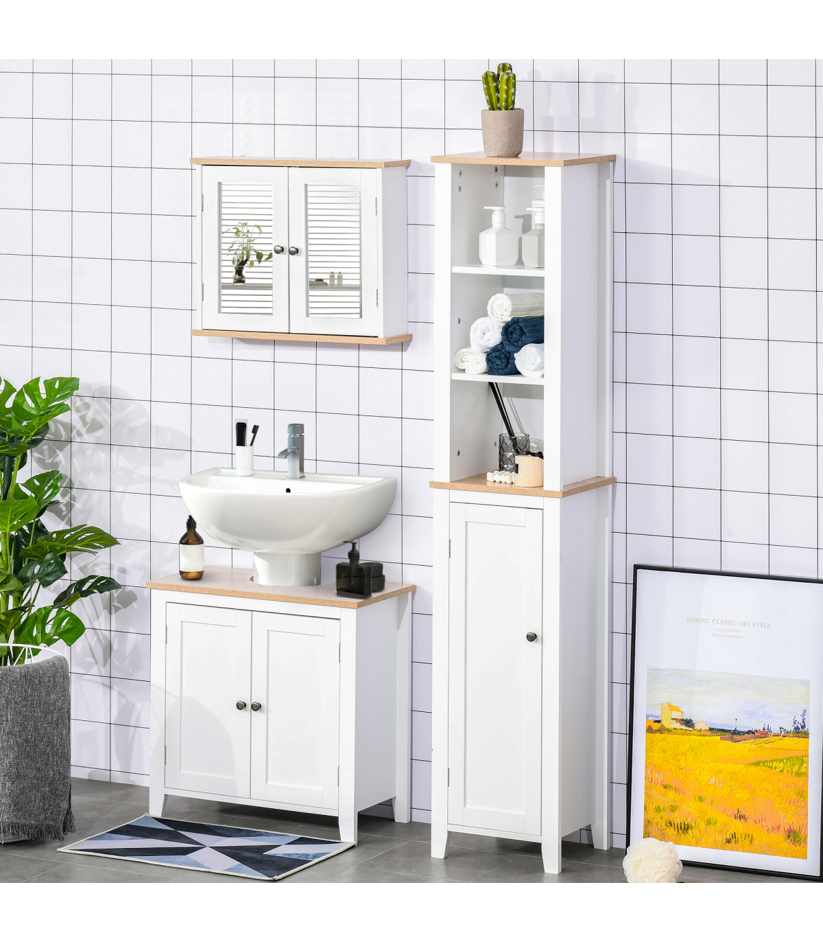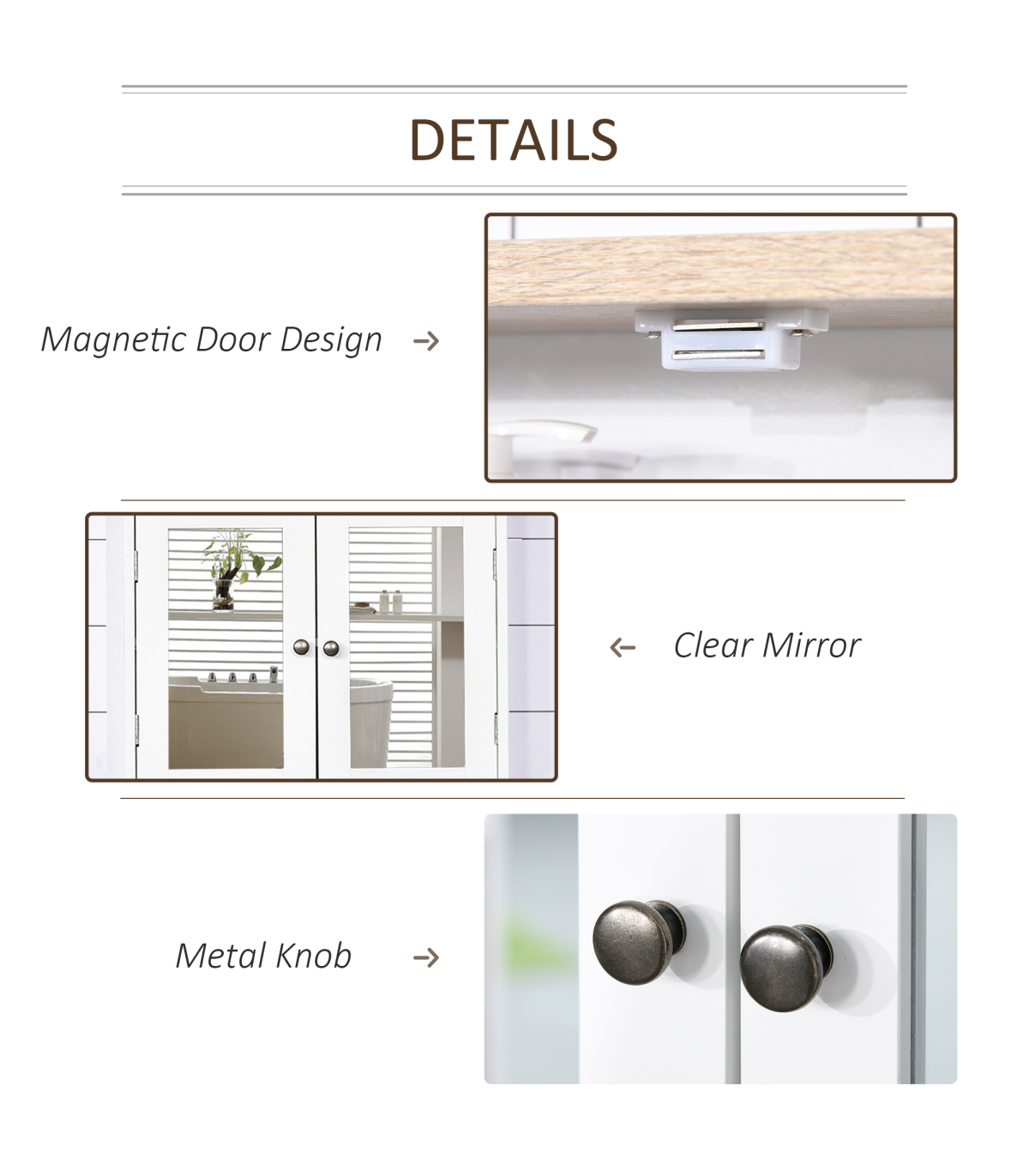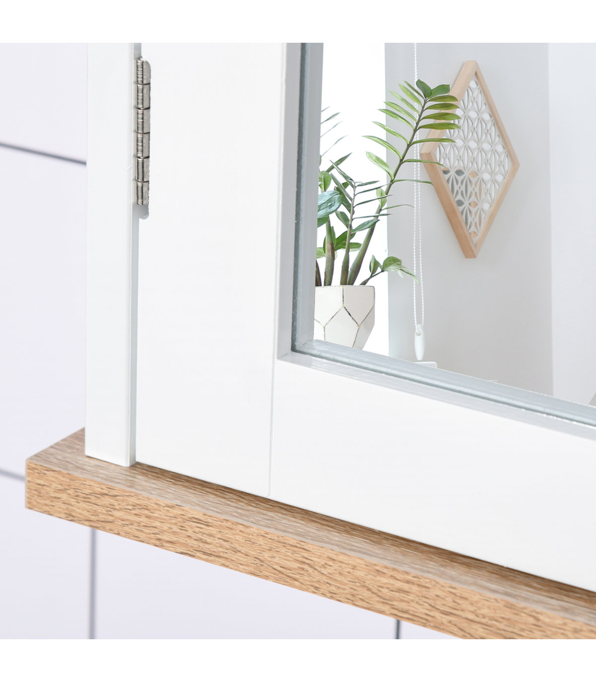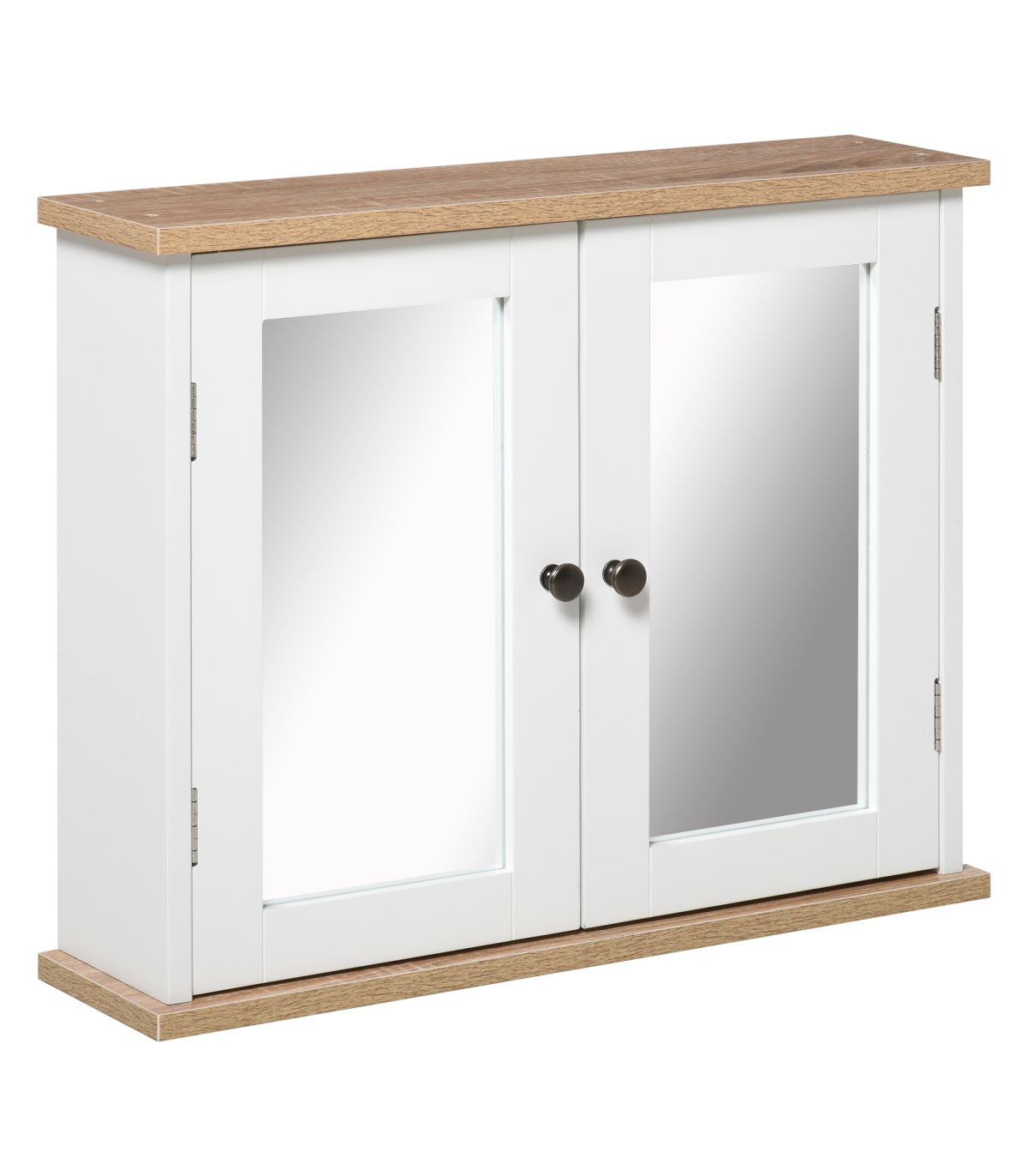 DOUBLE MIRROR DOOR: Twice the space, giving you plenty of reflective room to get ready day and night.INNER ADJUSTABLE SHELF: Can be moved up and down, allowing you to create storage suitable for your toiletries, medicines and other bottles.MDF STRUCTURE: A durable and tough piece, it's suitable for daily use in the bathroom and other rooms.ON-WALL DESIGN: Perfect for rooms with no floor space to spare. DIMENSIONS: 46H x 56W x 14Dcm. Inner shelves: 20H x 50.5W x 9.8Dcm and 21.5H x 50.5W x 9.8Dcm.MAXIMUM LOAD: Whole: 10kg. Shelf: 4kg. ASSEMBLY REQUIRED.