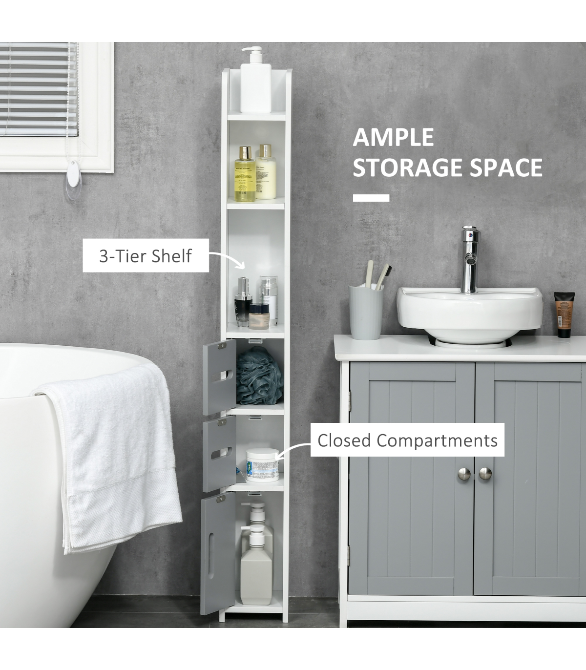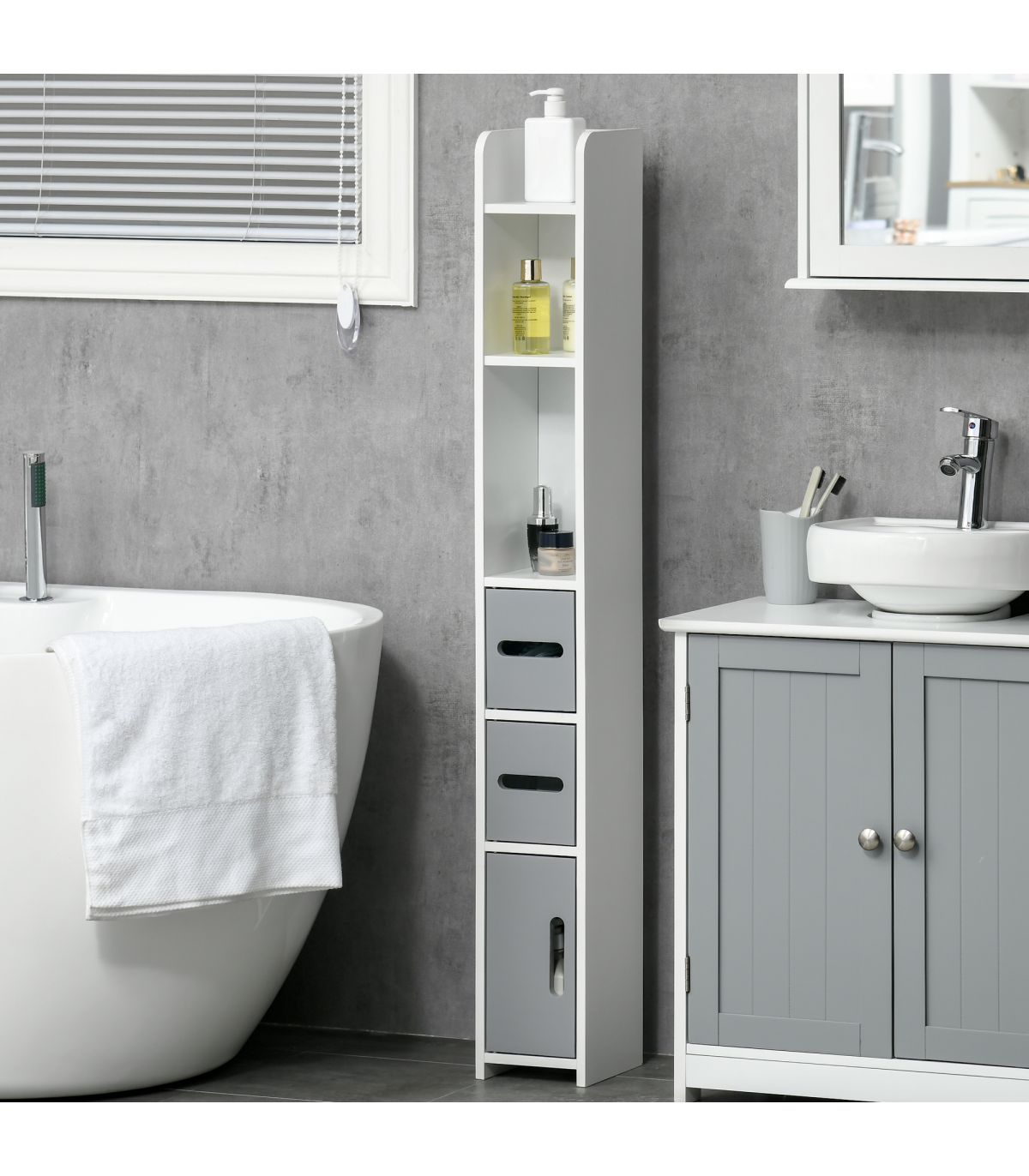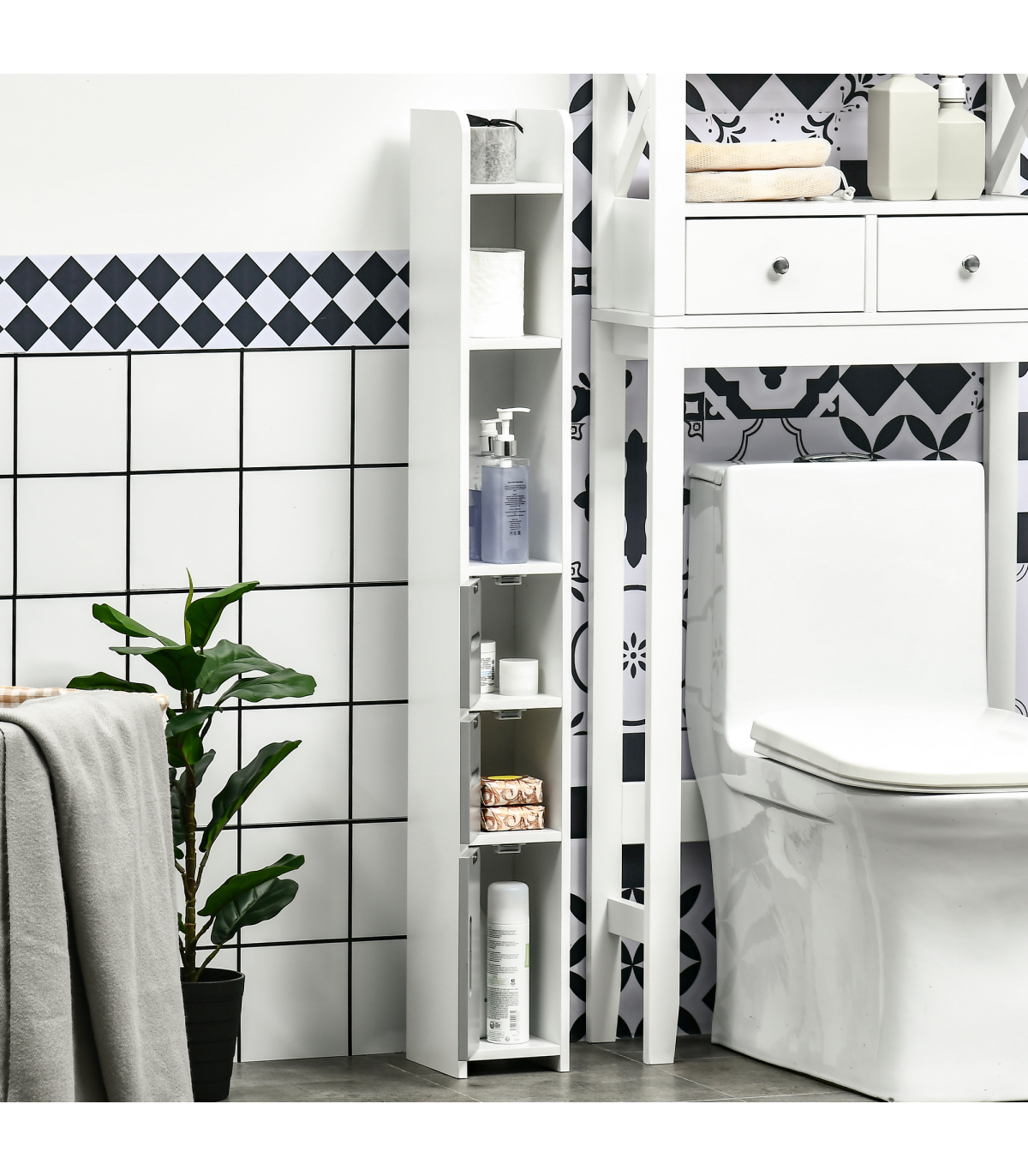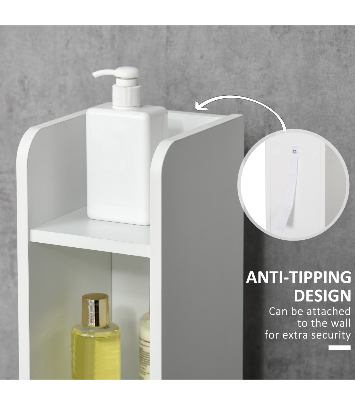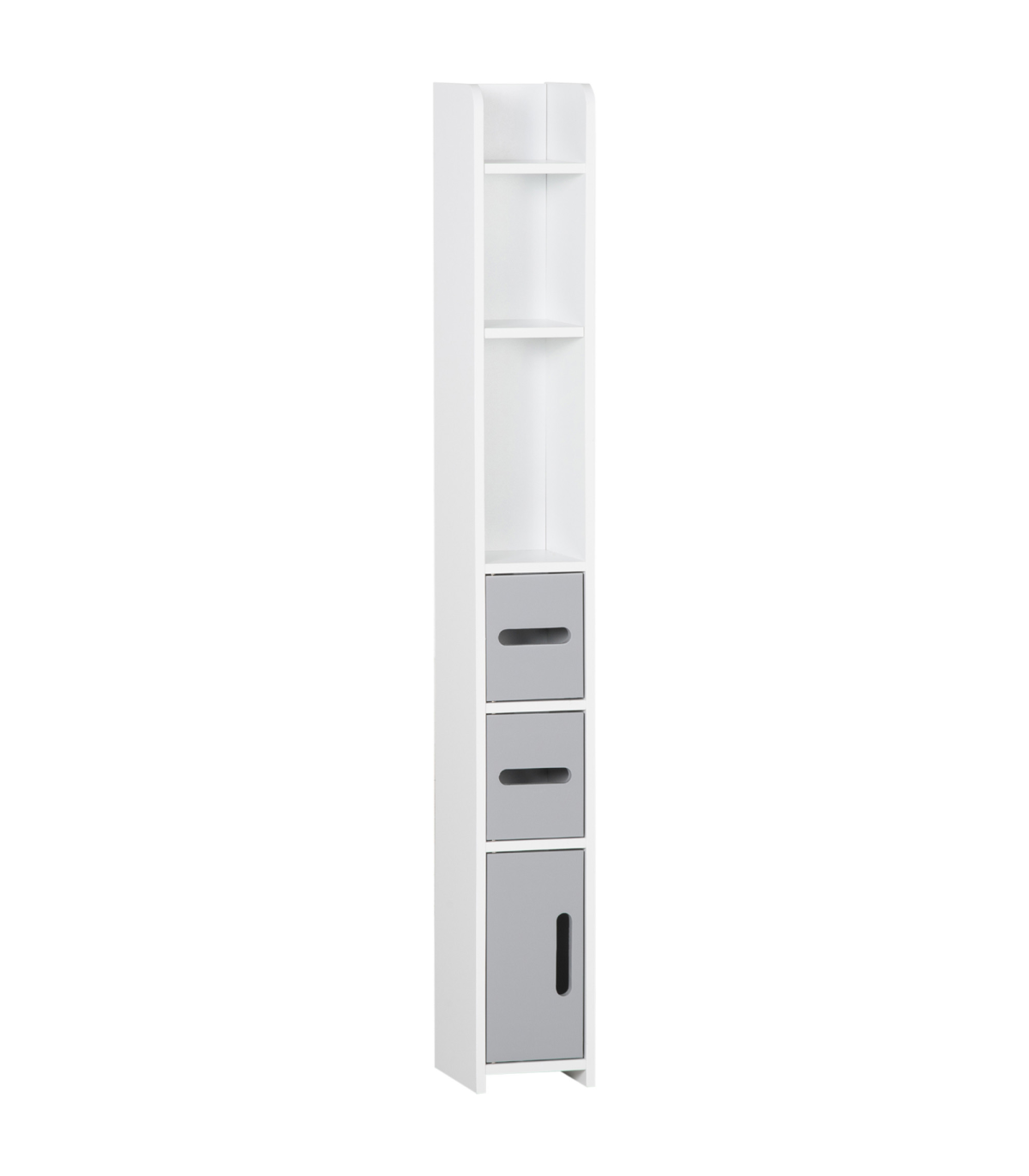 Maximise space and minimise clutter with this freestanding bathroom cabinet from kleankin. The slim, tallboy design makes this bathroom cabinet ideal for the tighter spots. Open shelves and enclosed cabinets offer plenty of room for you to store towels, toiletries and more. The anti-tipping straps to attach to the wall for safety. MDF and particle board structure is tough, with the surface treated for protection.