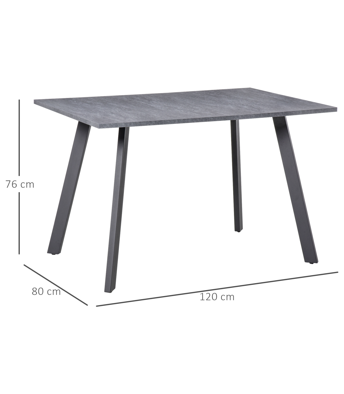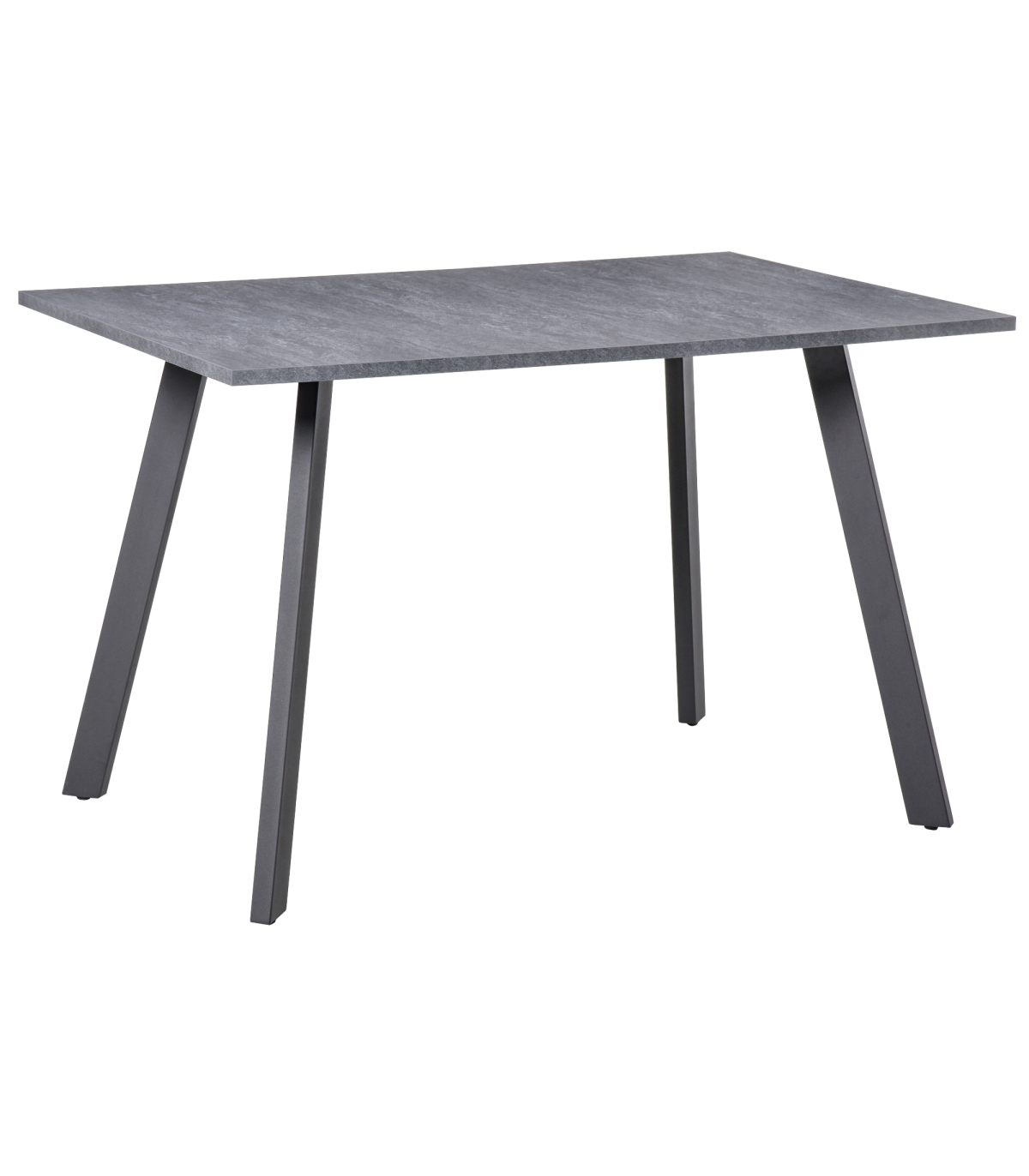 CHALK-LIKE DESIGN: Simple dark tone creates a muted backdrop - perfect for letting colours stand out. Works itself in easily along your current furnitureSPACIOUS TABLE TOP: Rectangle size gives plenty of dining room. Suitable for seating four people. Made from durable MDFMETAL LEGS: Powder coated for extra strength, supports the table fully when in use. Outwardly-angled helps promote balanceADJUSTABLE FEET: Great for when your floor is uneven. DIMENSIONS: 76H x 120L x 80WcmMAXIMUM LOAD 50KG. ASSEMBLY REQUIRED
