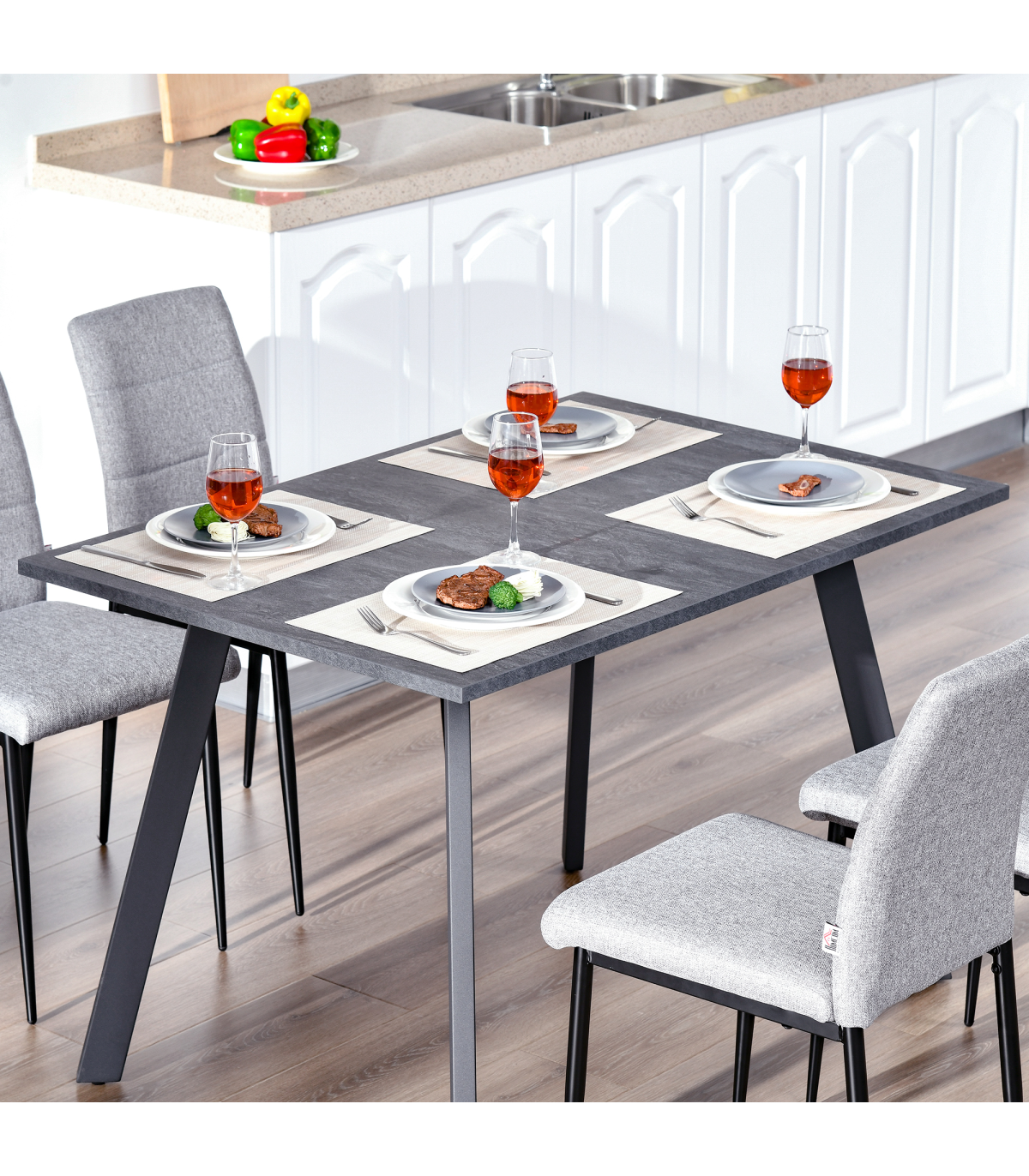 Modern Rectangular Dining Table with Metal Legs Indoor, Dark Grey