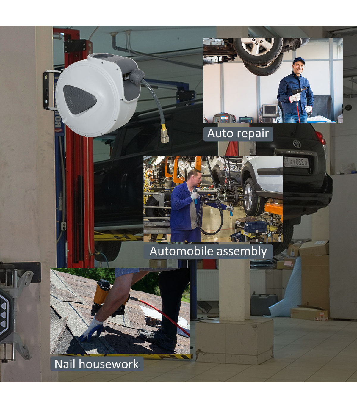 Retractable Air Hose Reel Auto Self-Winding Wall Mount 1/4" 15m+140cm Durhand