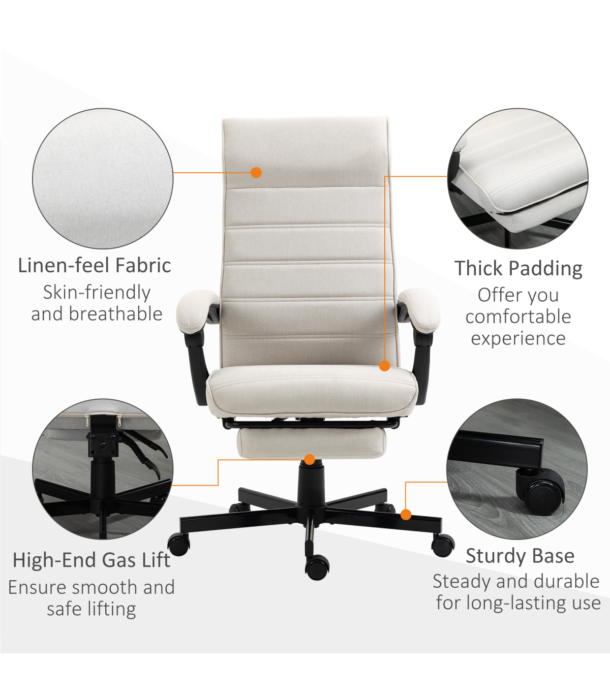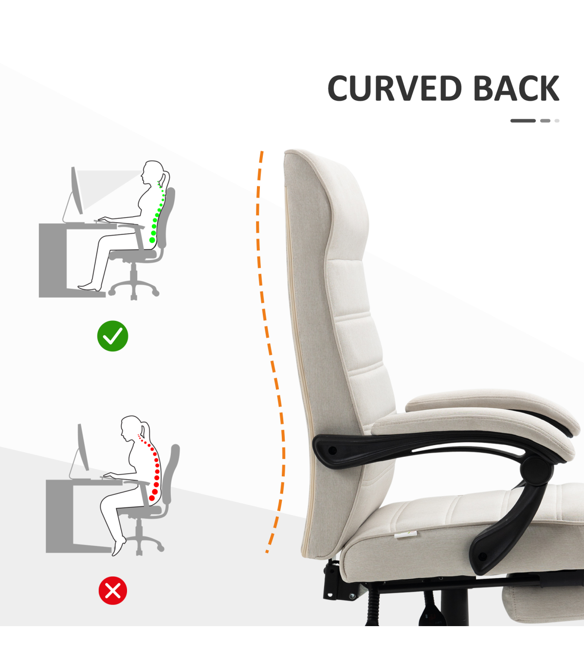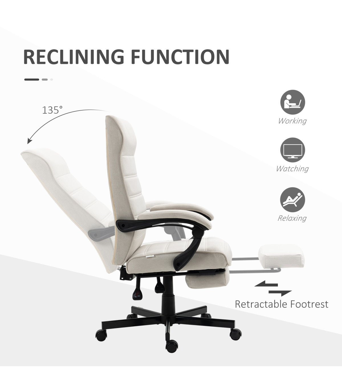 Home Office Chair High-Back Reclining Chair for Bedroom Study Living Room White