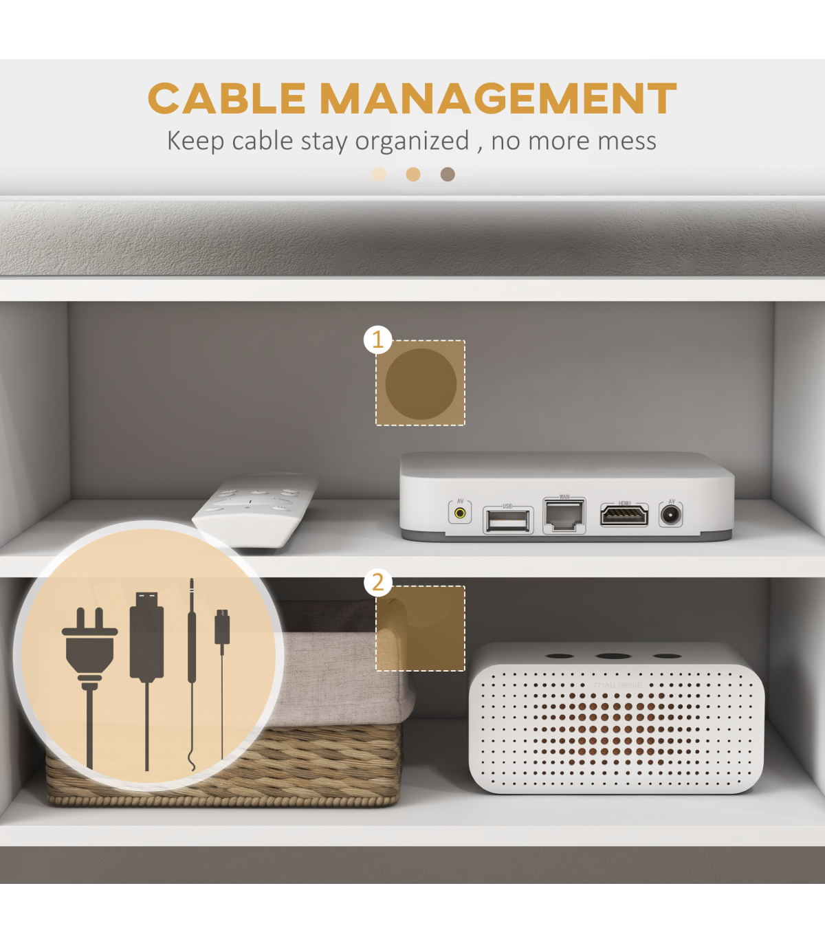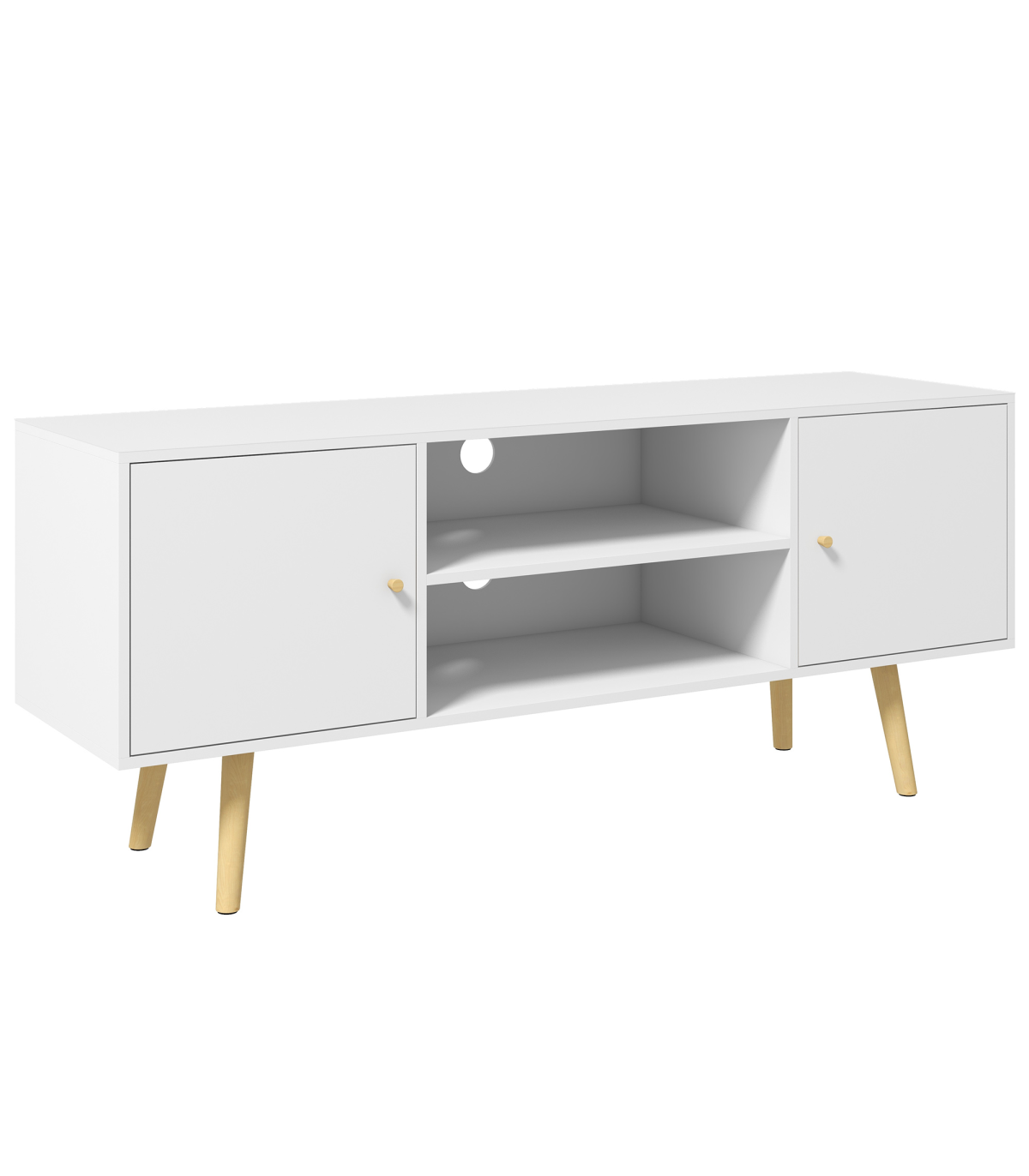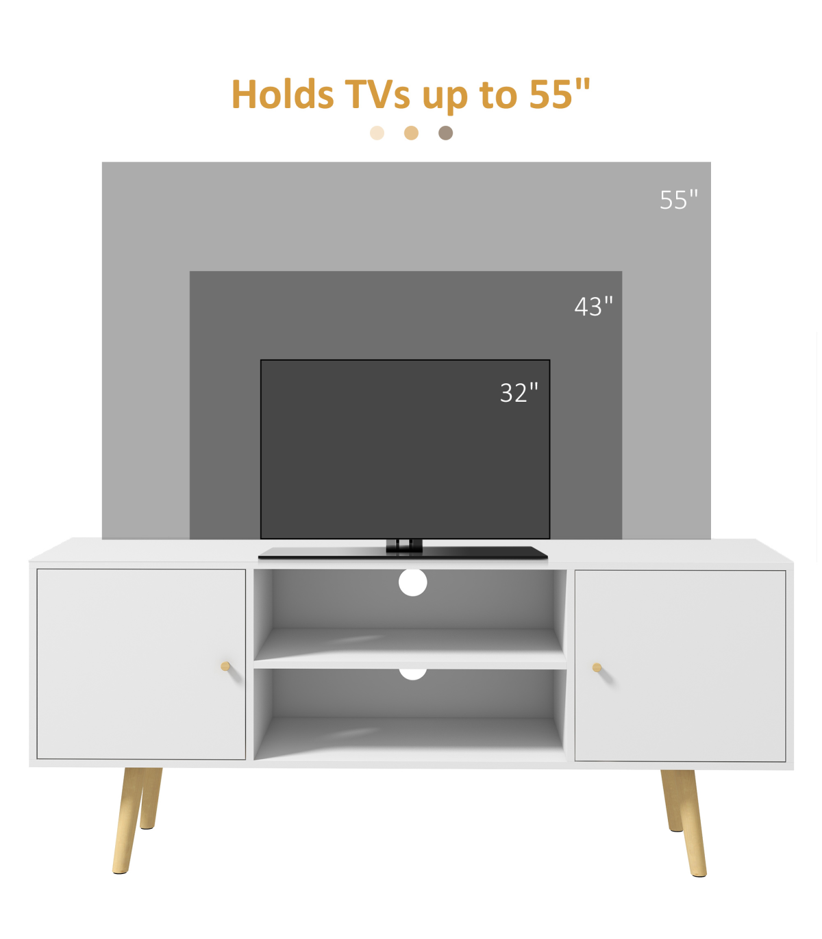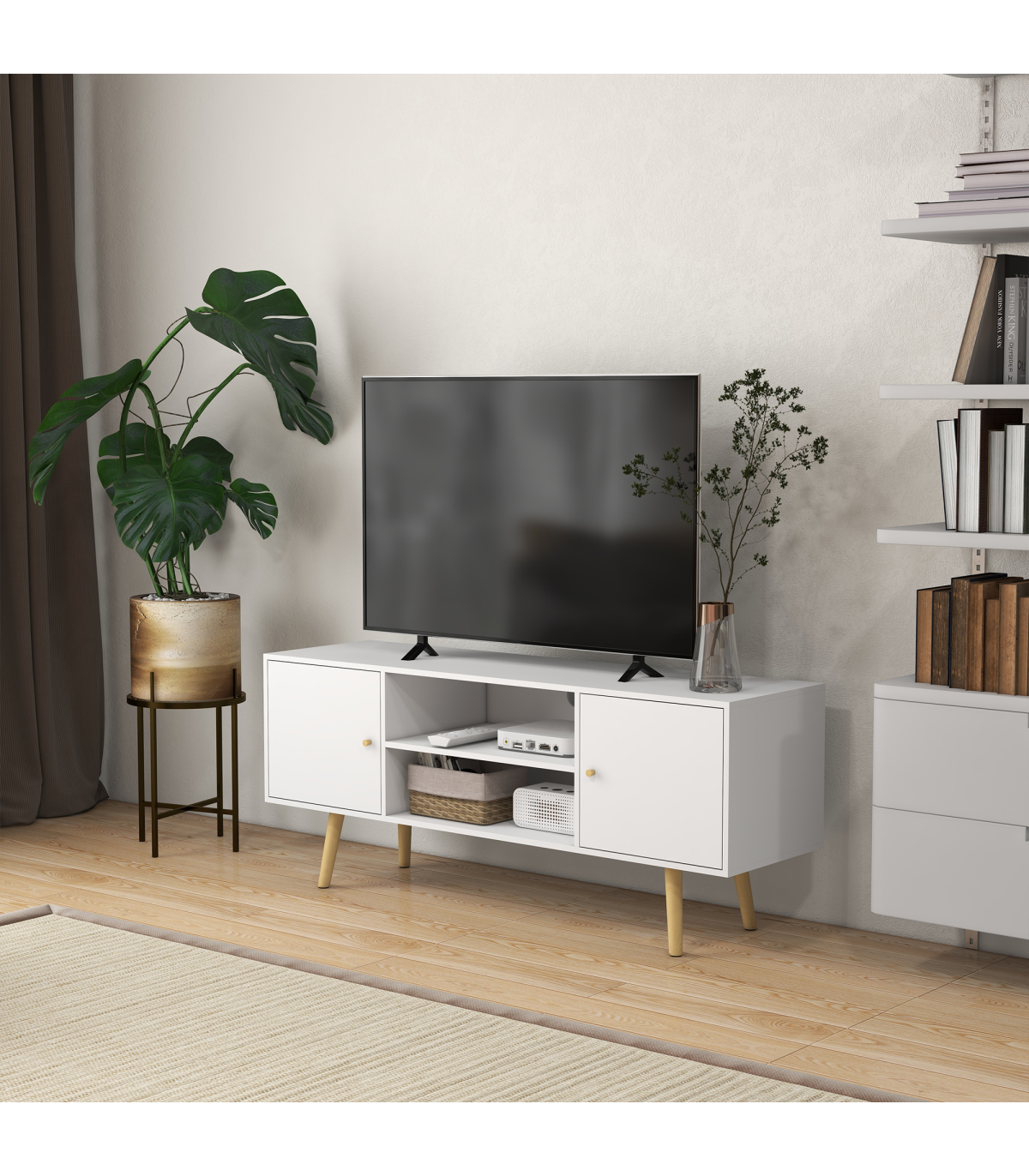 TV Stand Cabinet with Cable Management and Wood Legs Living Room, White