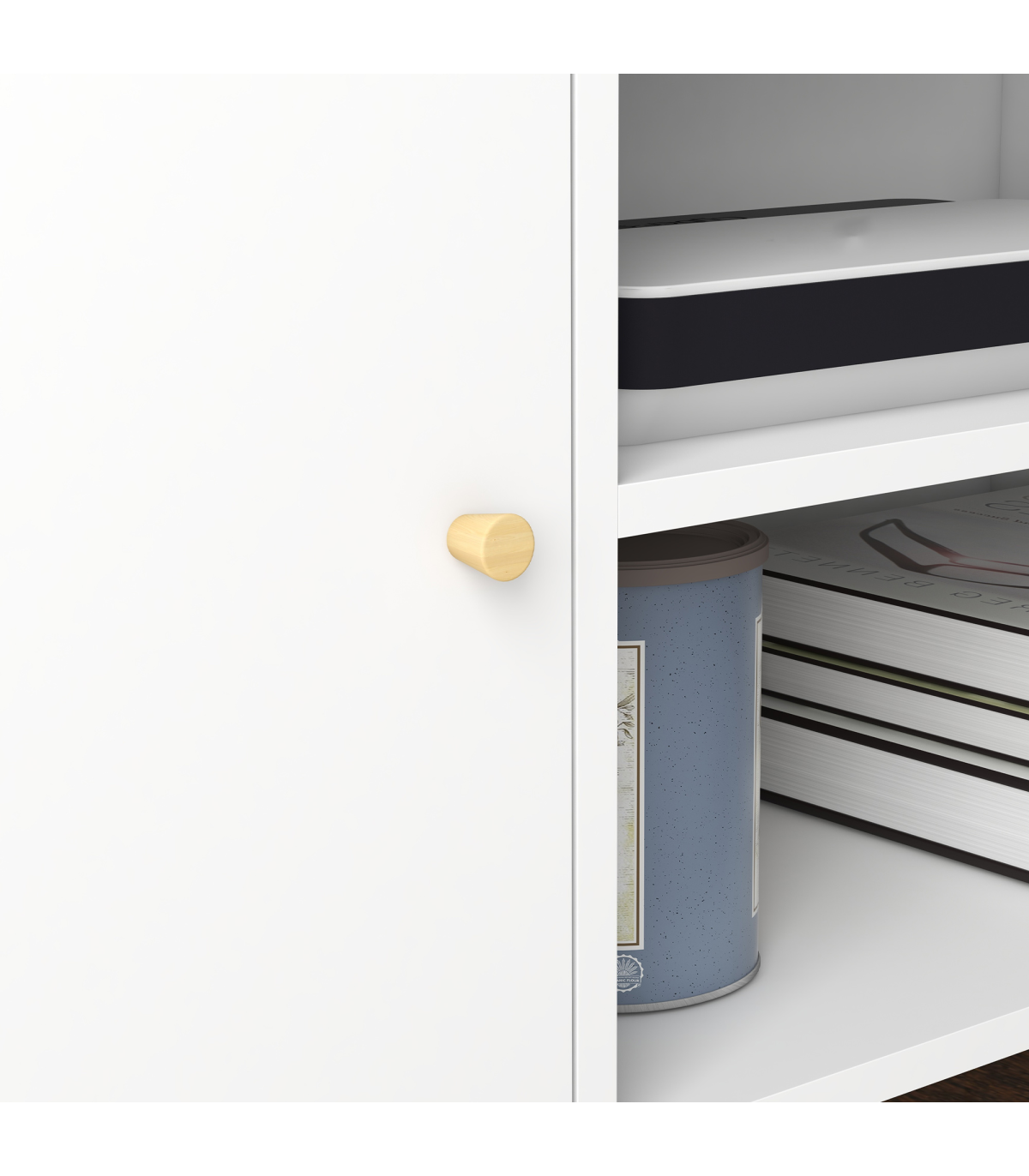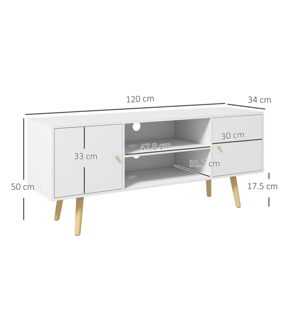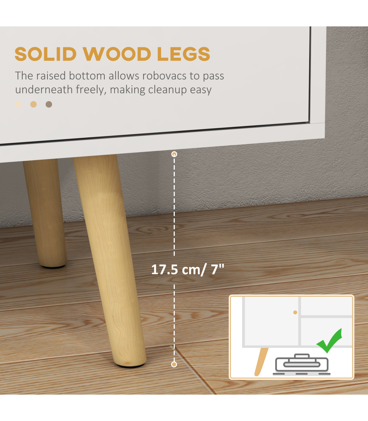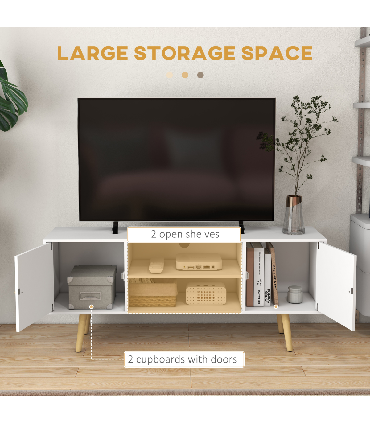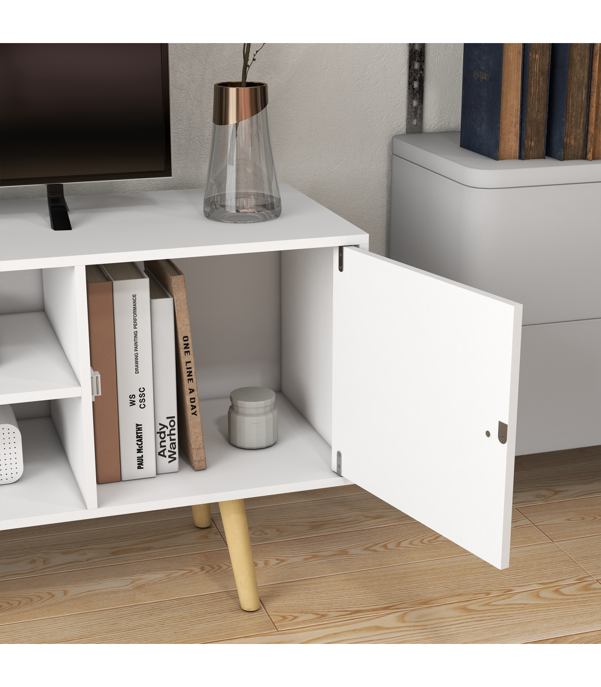 TV Stand Cabinet with Cable Management and Wood Legs Living Room, White