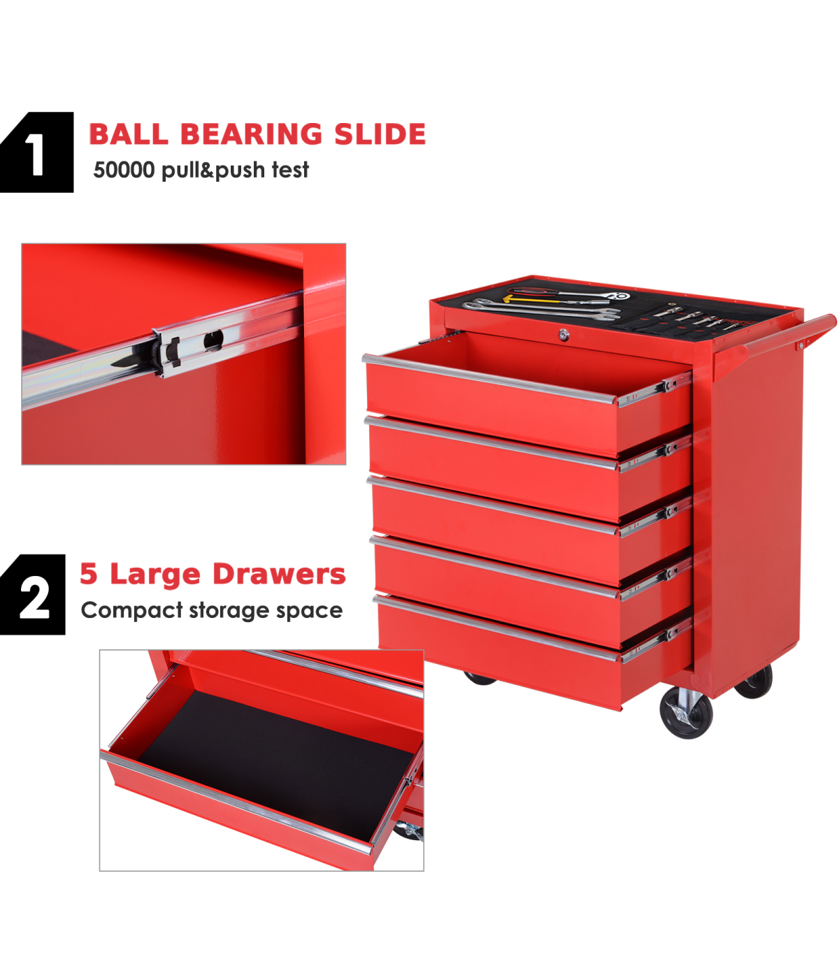 Roller Tool Cabinet Storage Box 5 Drawers Wheels Caster Garage Workshop Red
