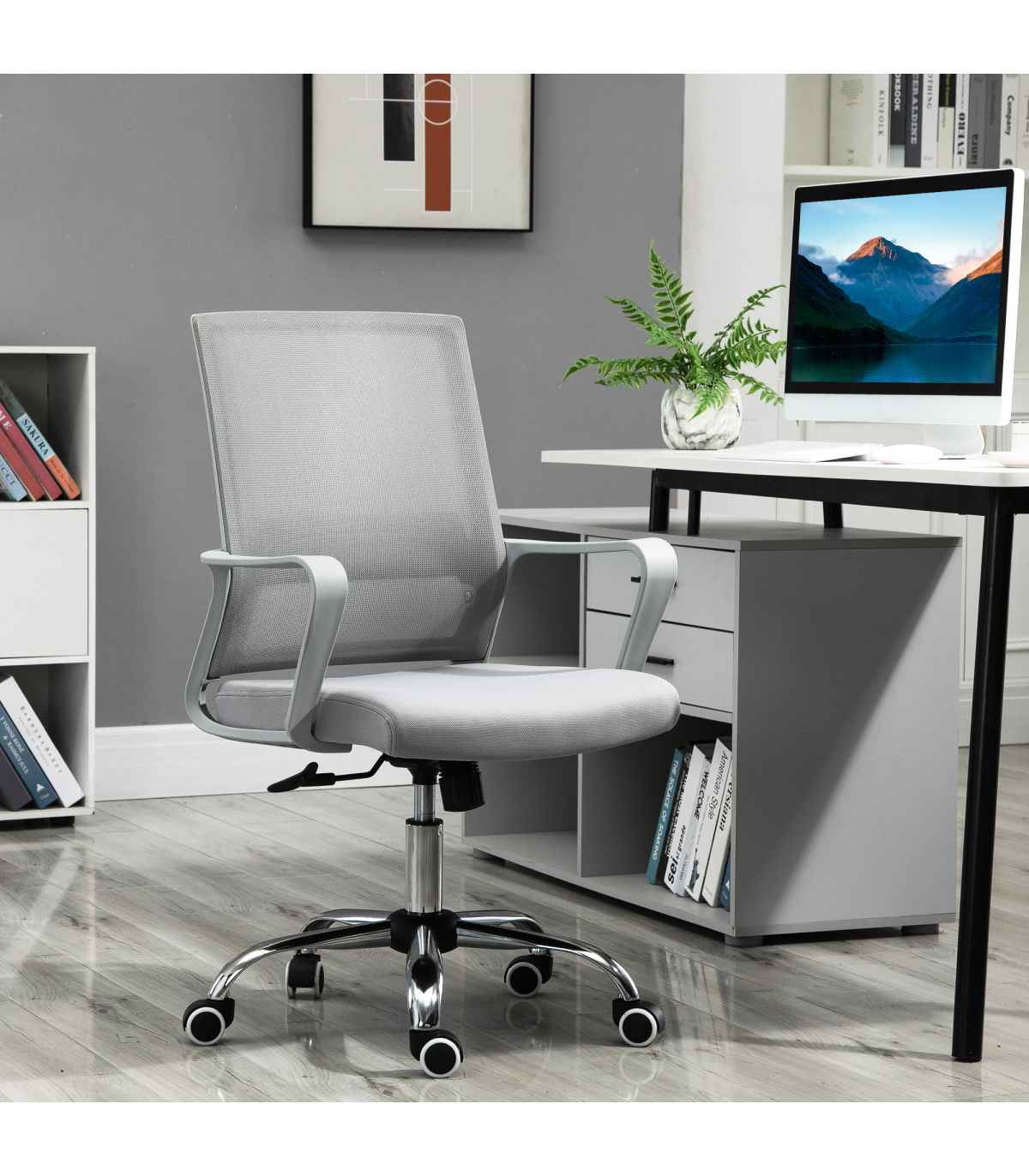 Ergonomic Office Chair Adjustable Height Mesh Chair with Swivel Wheels Grey
