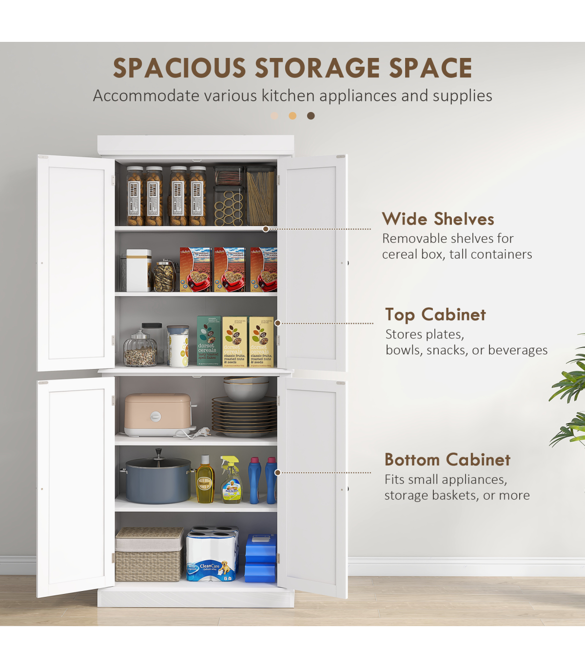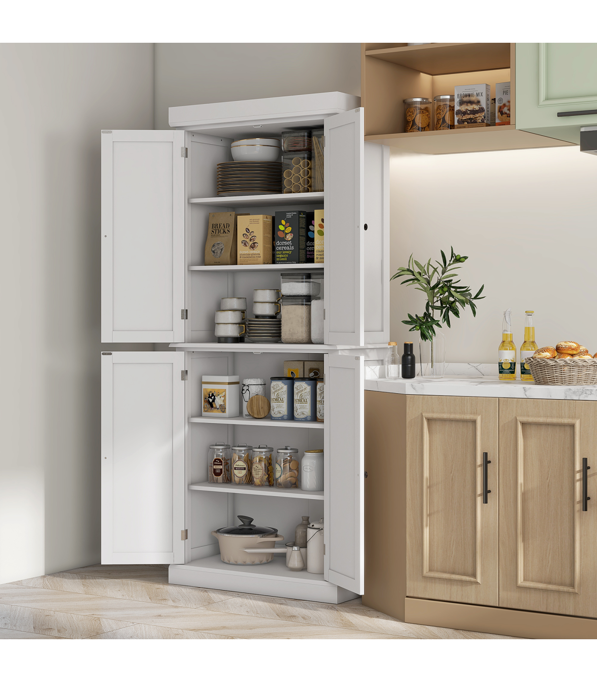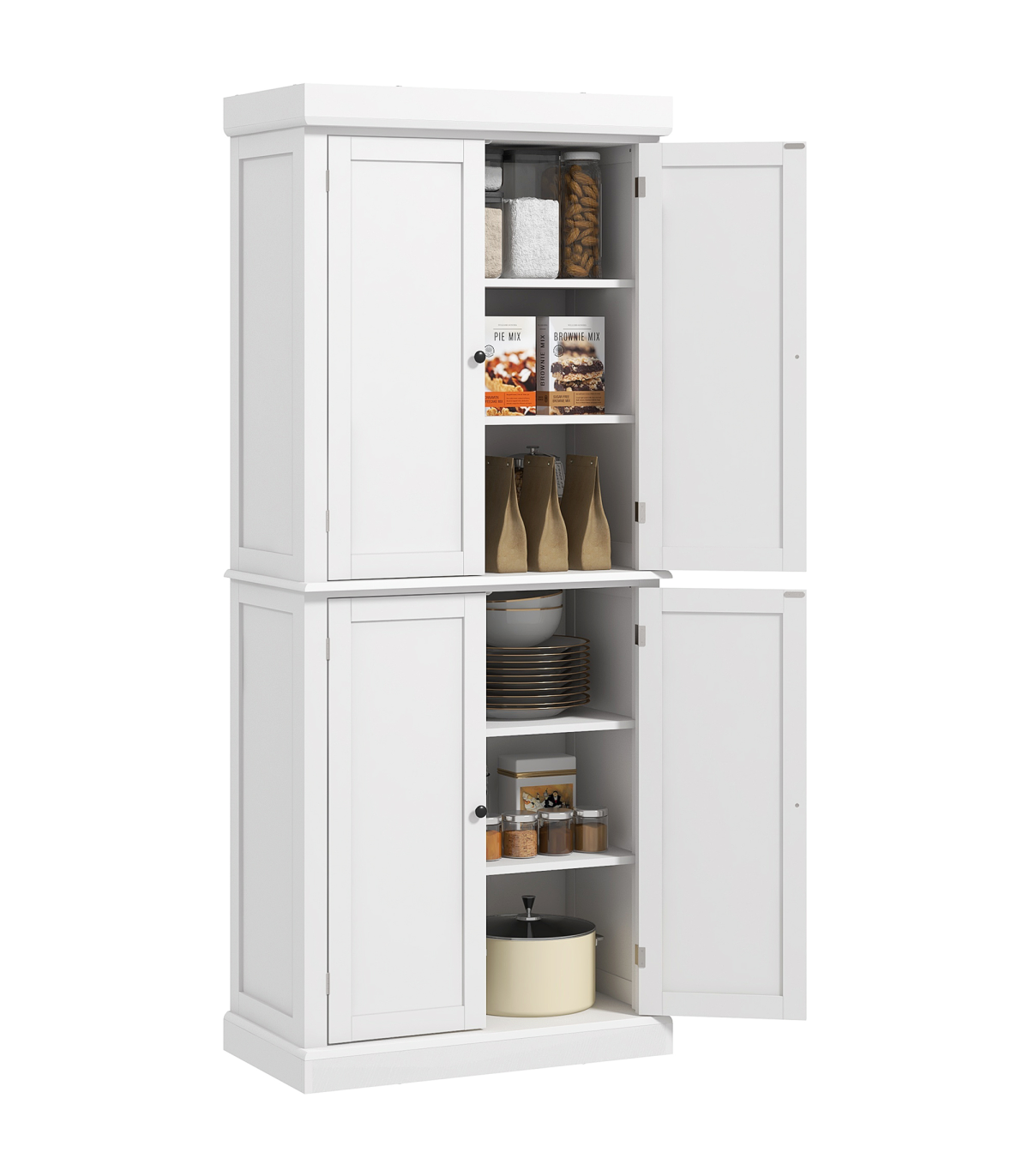 Freestanding Kitchen Cupboard, 6-Tier Cabinet Organizer w/ 4 Adjustable, White