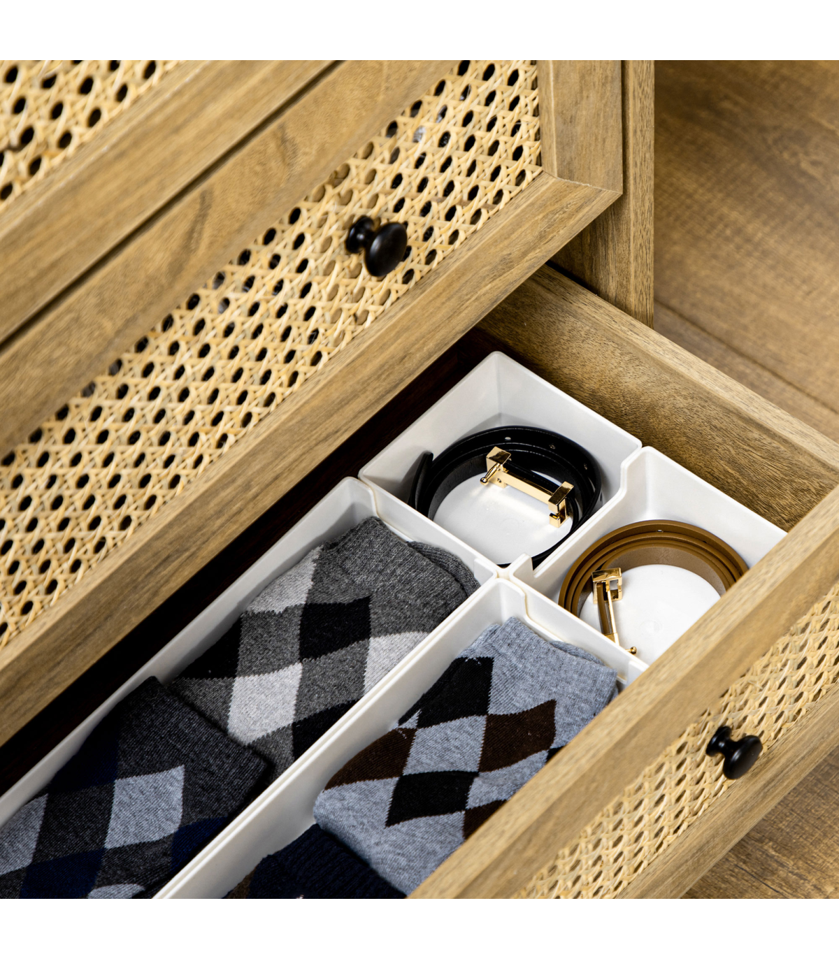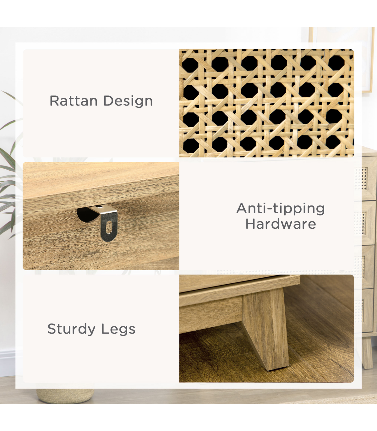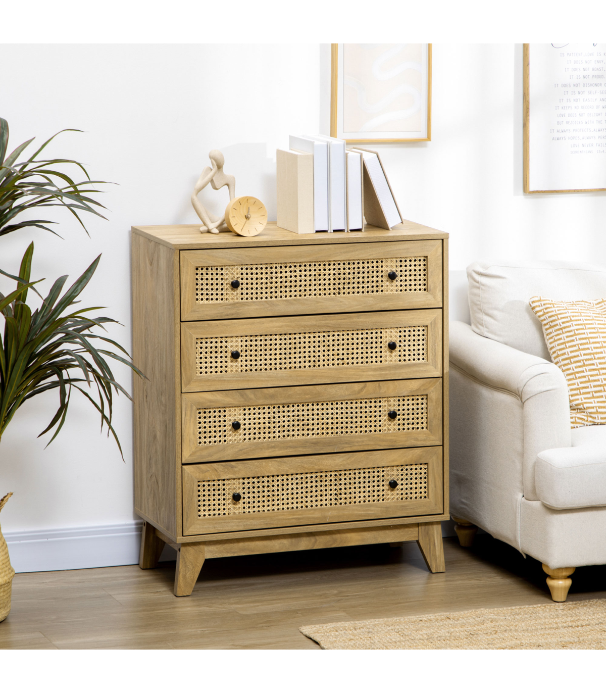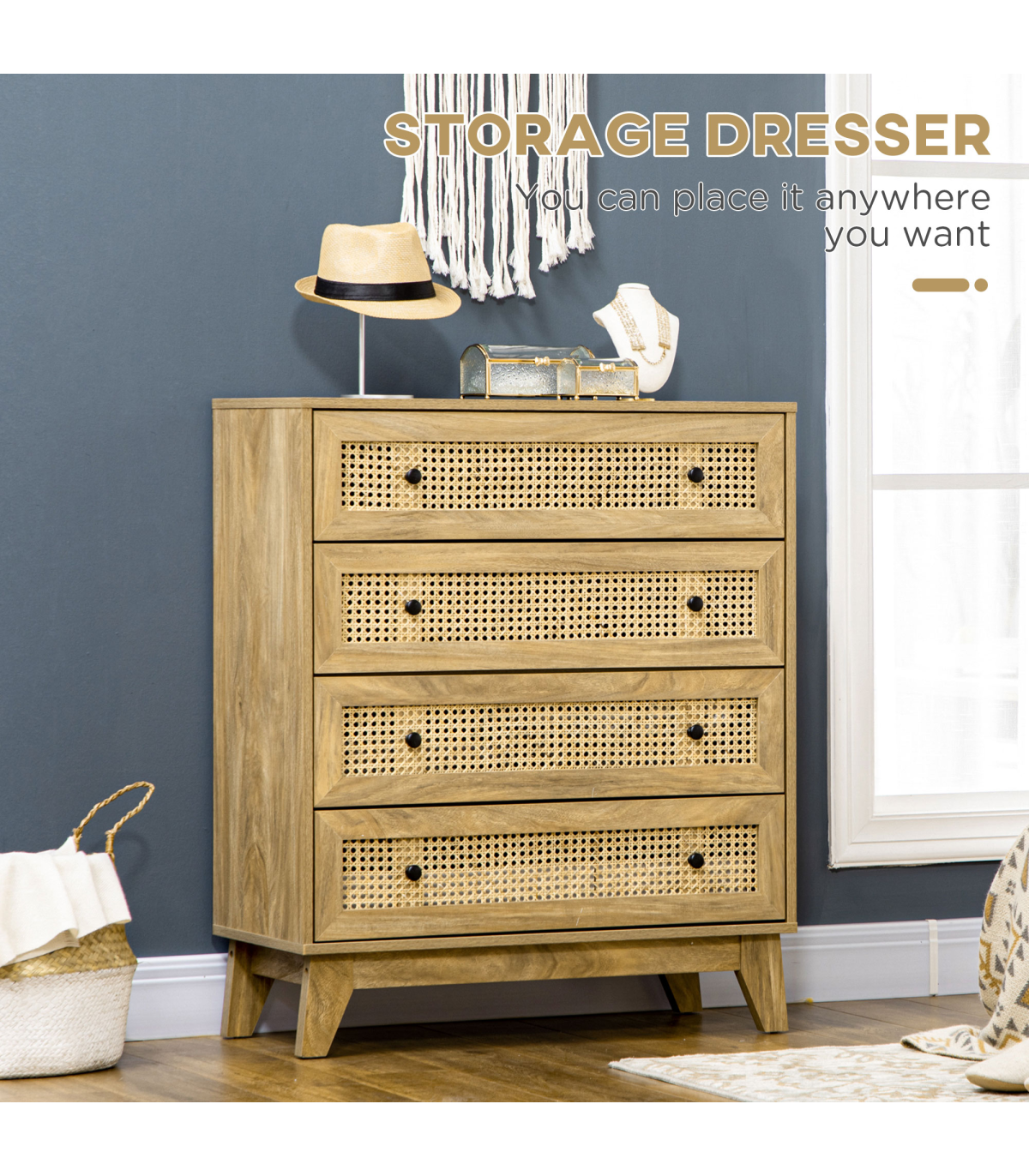 Rattan Chest of Drawers 4-Drawer Dresser Storage Cabinet Bedroom, Wood Effect