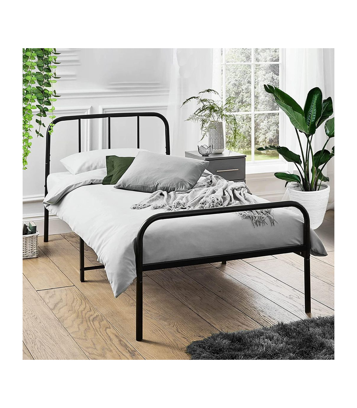 Extra Strong Single Metal Bed Frame with Rounded Head and Foot Board In Black - Improved