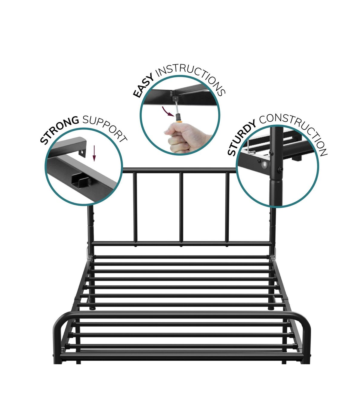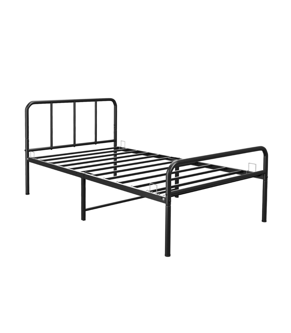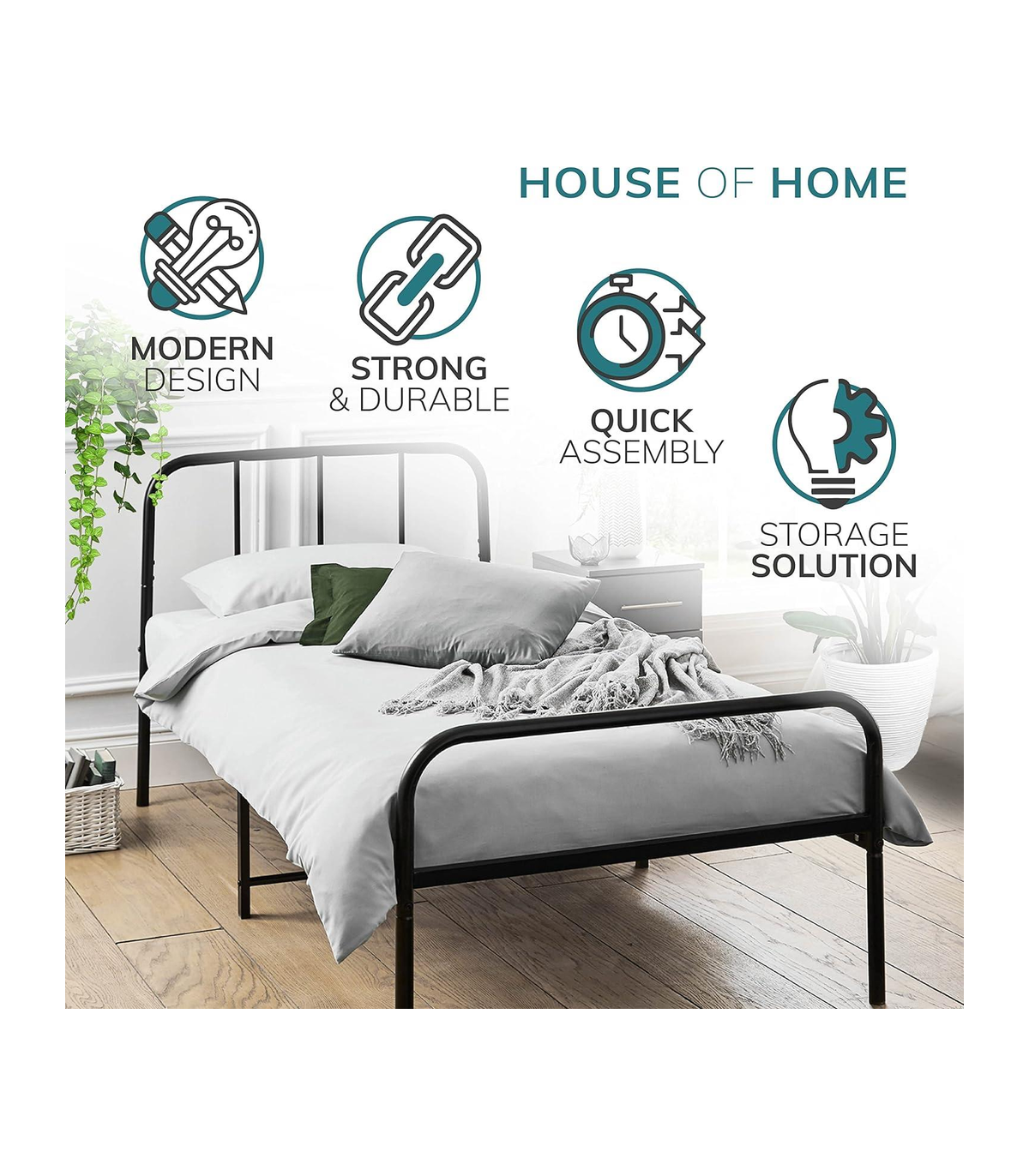 Simplistic yet elegant, these sturdy metal bed frames will add a modern touch to any bedroom. Available in a range of styles and sizes in a sleek black finish or clean contemporary white, these bed frames are perfect for a range of decors and can be dressed to suit your personal style. With strong metal tube slats and center support legs for extra strength, these bed frames are incredible value for money. Large under bed storage space perfect for storage drawers, baskets and containers to hide any bedroom clutter. Ideal for guest’s bedroom, children or your own minimalist bedroom. Fast and easy to build, your new bed frame is supplied flat-packed with simple-to-follow instructions, allowing it to be built quickly and effortlessly. All components for building your bed frame are included in the box. Single Bed Frame - 6ft x 3ft (198cm x 88cm) suitable for a standard single mattress.