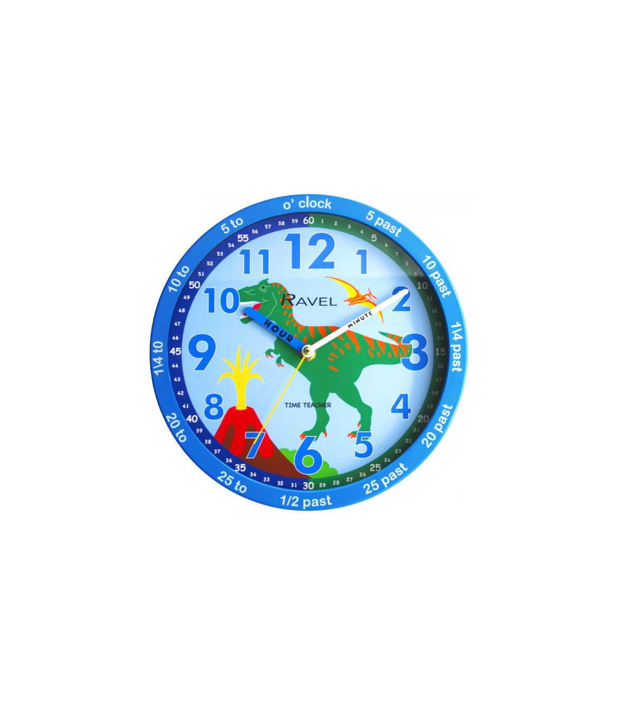 Ravel 25cm Time-Teacher Wall Clock - Blue Dinosaur R.KC.11