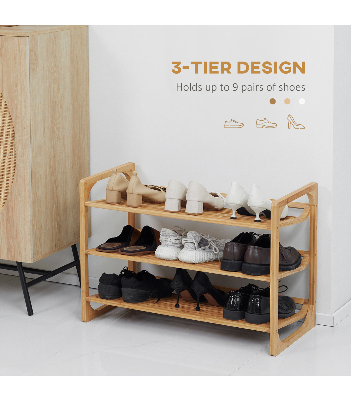 Bamboo Shoe Rack, 3-tier Shoe Storage Shelf for 9 Pair Shoes for Entryway