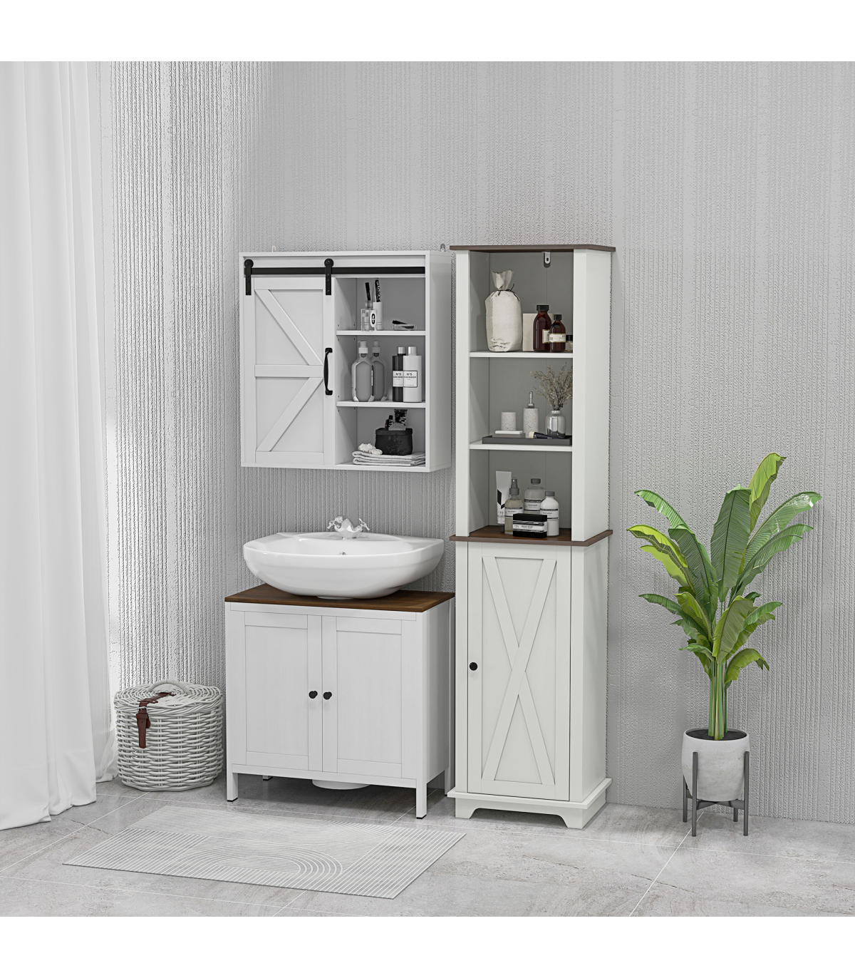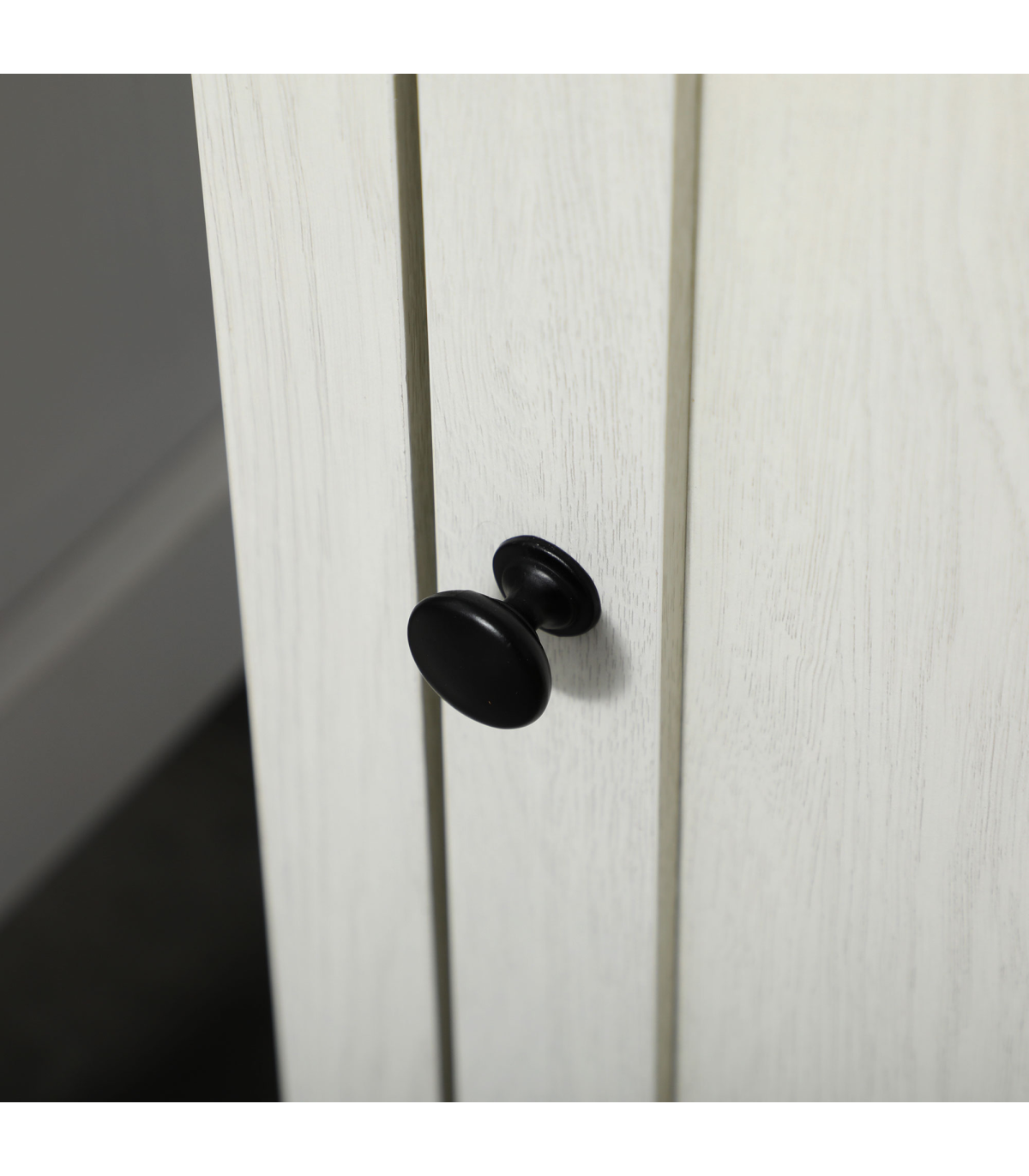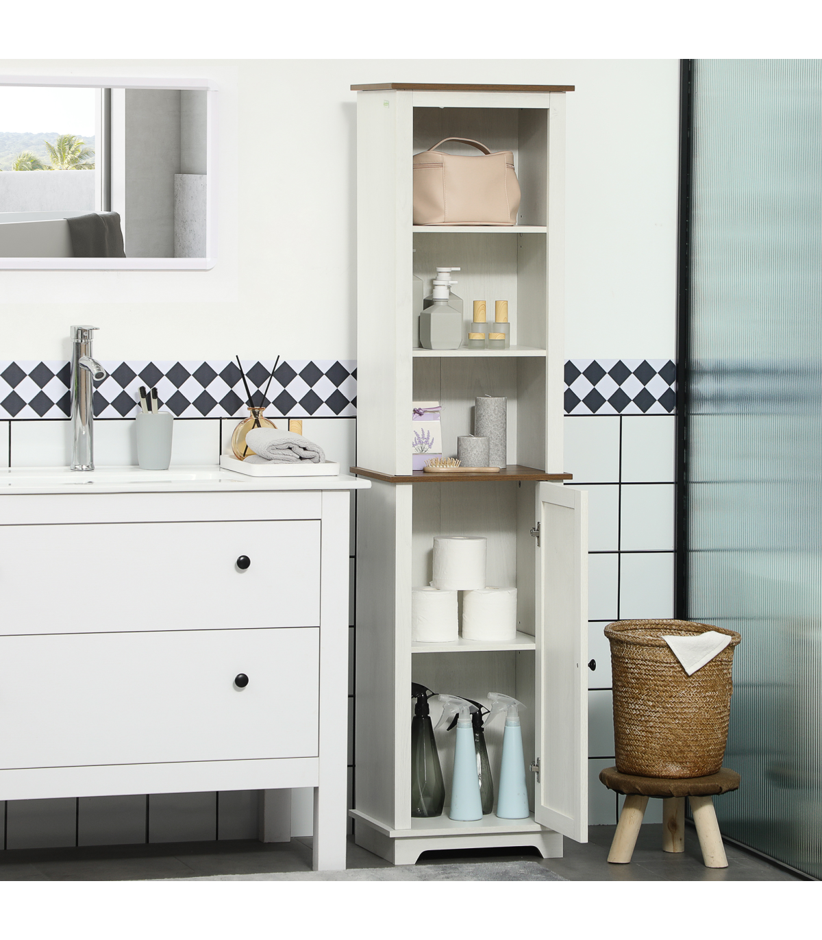 Multi-storage: Slim bathroom cabinet comes with three shelves and a cupboard with door: store towels, products and cleaning supplies.Tall bathroom cabinet design: Slim and narrow, won't take up too much space - great for tighter spots.Adjustable shelves: Set the top shelf and cupboard shelf to a level you want - a more customisable bathroom storage unit.Anti-tipping straps: Attach this bathroom cabinet for safety - suitable for family households.Dimensions: 160H x 39.5W x 30Dcm. Maximum load 50kg. Assembly required.