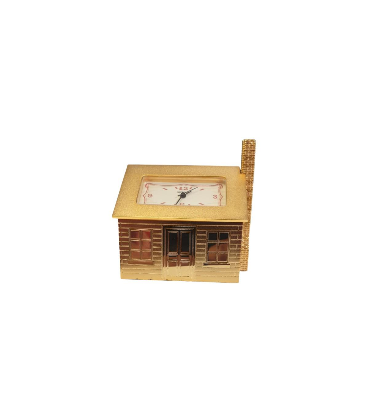 Miniature Clock Goldtone Plated House Design Solid Brass IMP1011 - CLEARANCE NEEDS RE-BATTERY