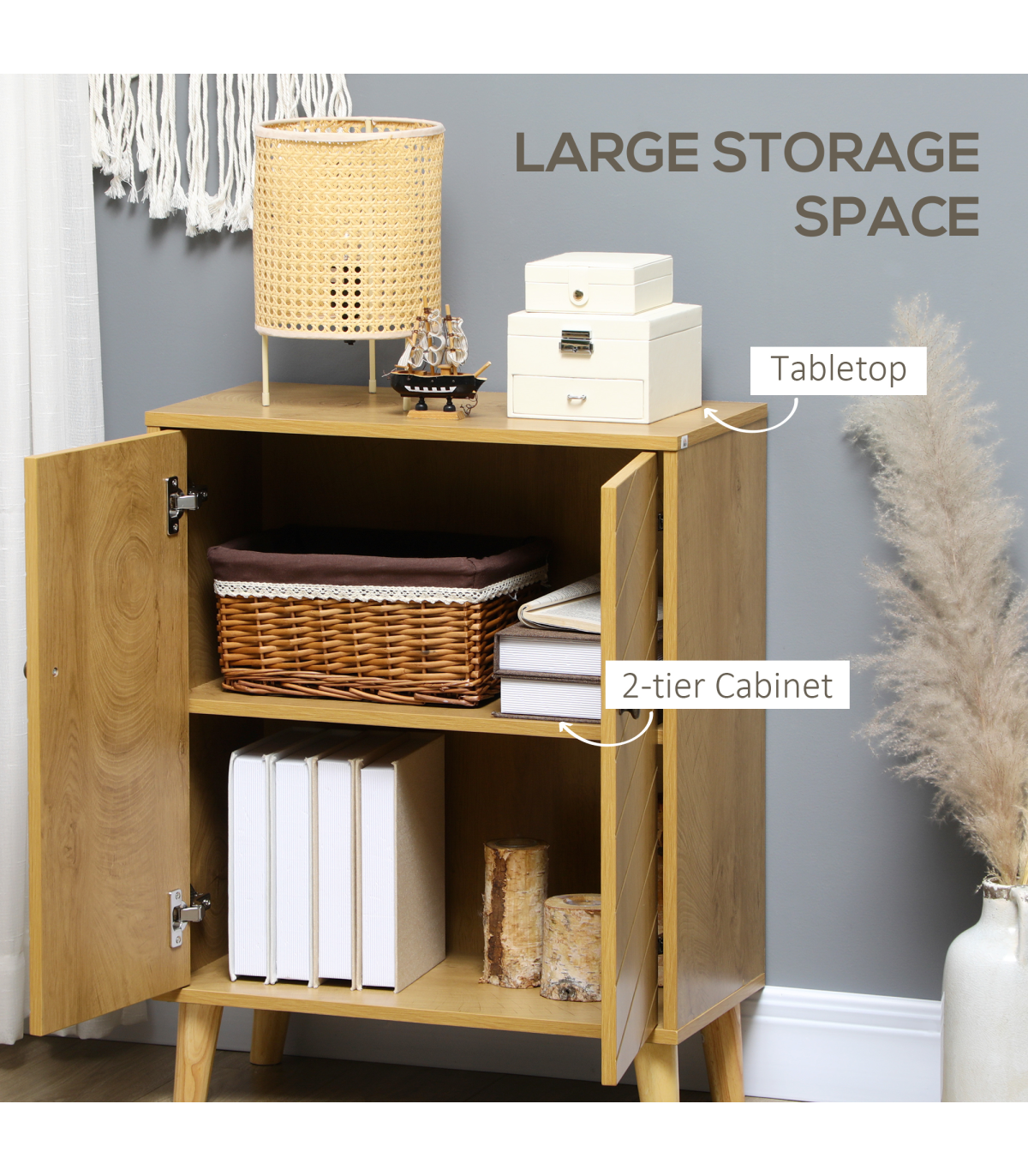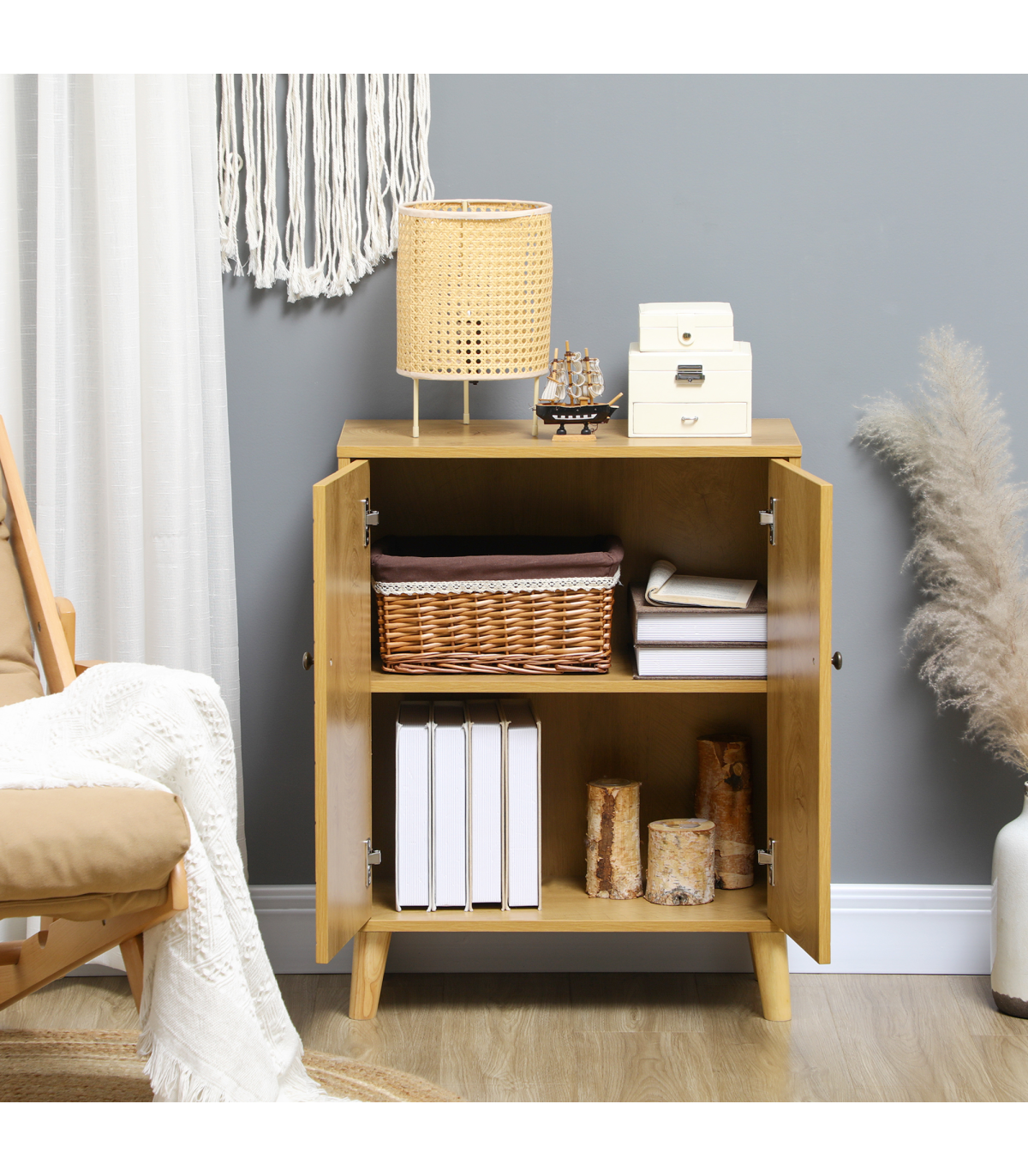 Keeping your home storage style simple and classic this season - look to this HOMCOM sideboard. Made from MDF for a sturdy, durable structure, it comes in a wood-effect design: a forever-classic look which matches beautifully with your current furniture. Open the two doors and inside there's a middle shelf - creating two areas for you to store items. Complete with four wooden legs for plenty of support.
