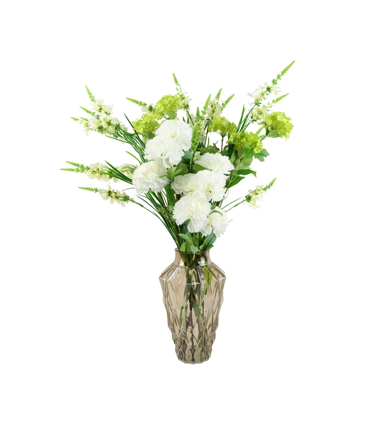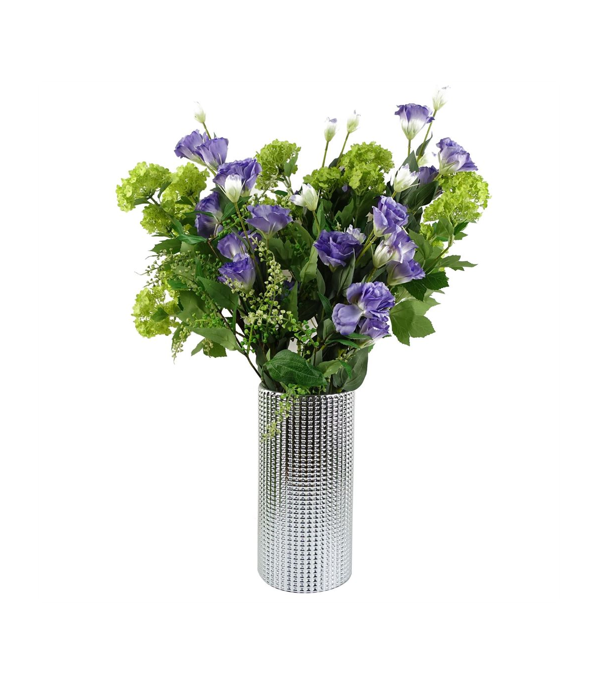 Pack of 6 x Viburnum stem with silk flowers and leaves. Can be used to make arrangements with our other artificial flowers or as decorations on their own. Each stem measures 70cm overall height x 12cm wide and has an array of flowers. Flowers are silk. These are easy to cut down shorter using a pair of wire cutters if required. Some of our photos show vases to give an idea of size and possibilities for arrangement but no vases or planters are included with these flowers.