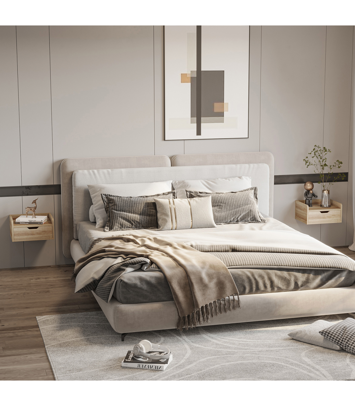 ? Floating design: fix each night side table to a position you want ? Drawer and flat top means plenty of storage and holding space ? Sturdy particle board structure, in a simple and classic wood-effect finish ? Set of two: use together in one room or separately ? Maximum load 10kg per table, assembly required