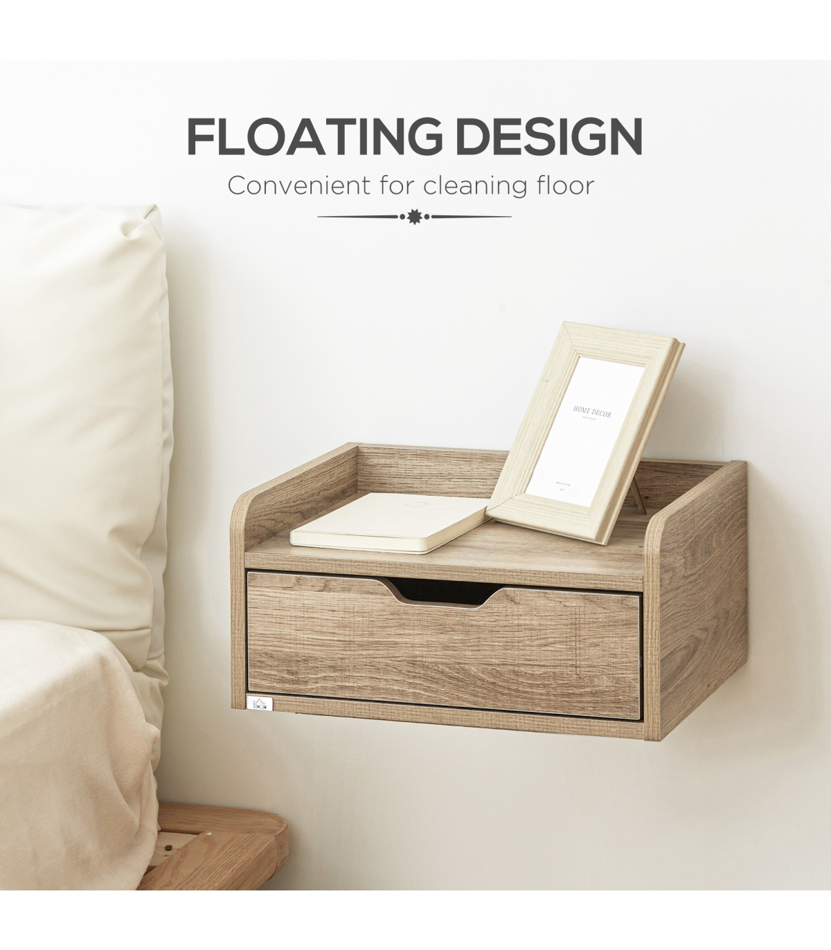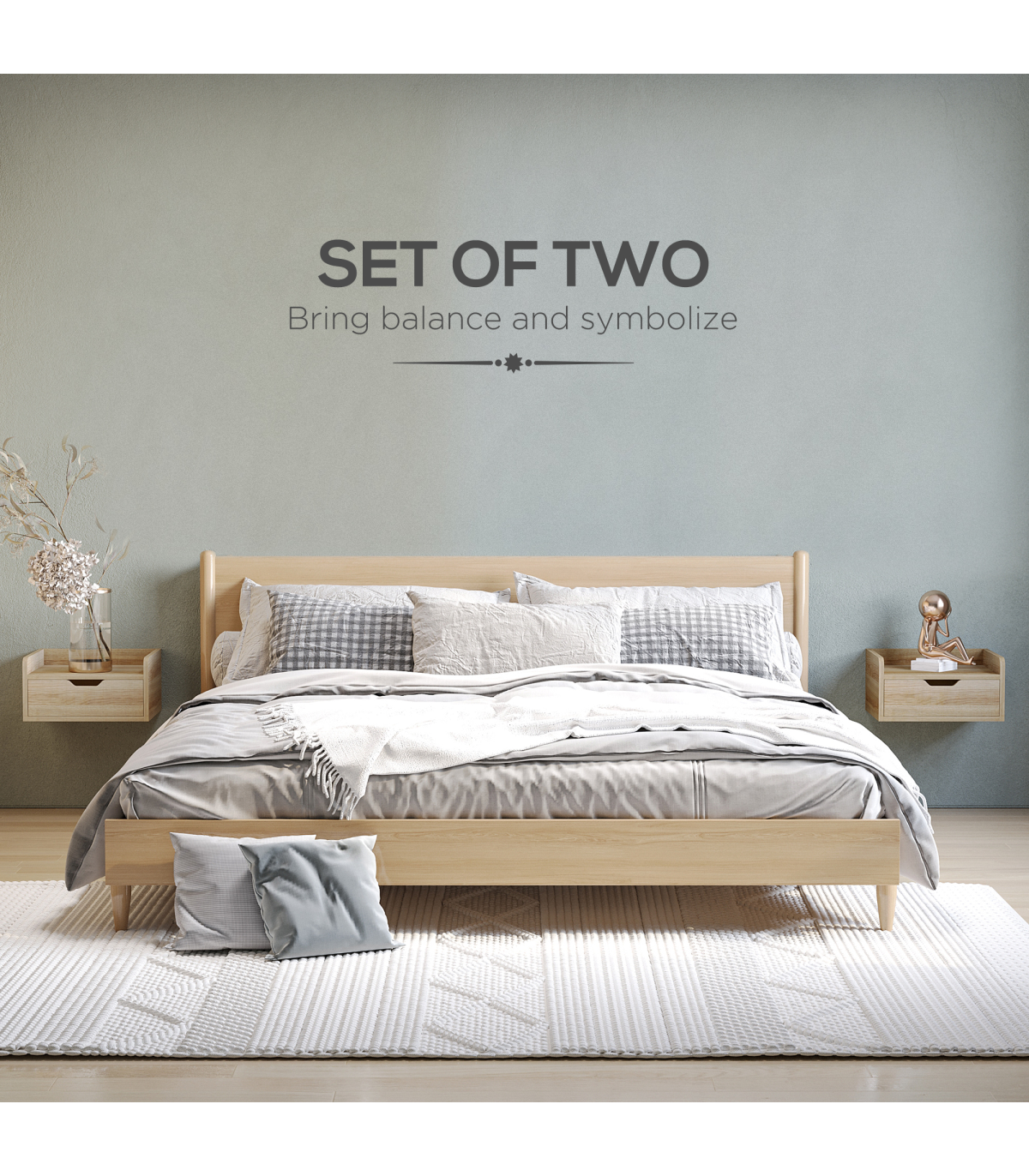 HOMCOM Floating Nightstand Set of 2, Wall Mounted Bedside Table with Drawer