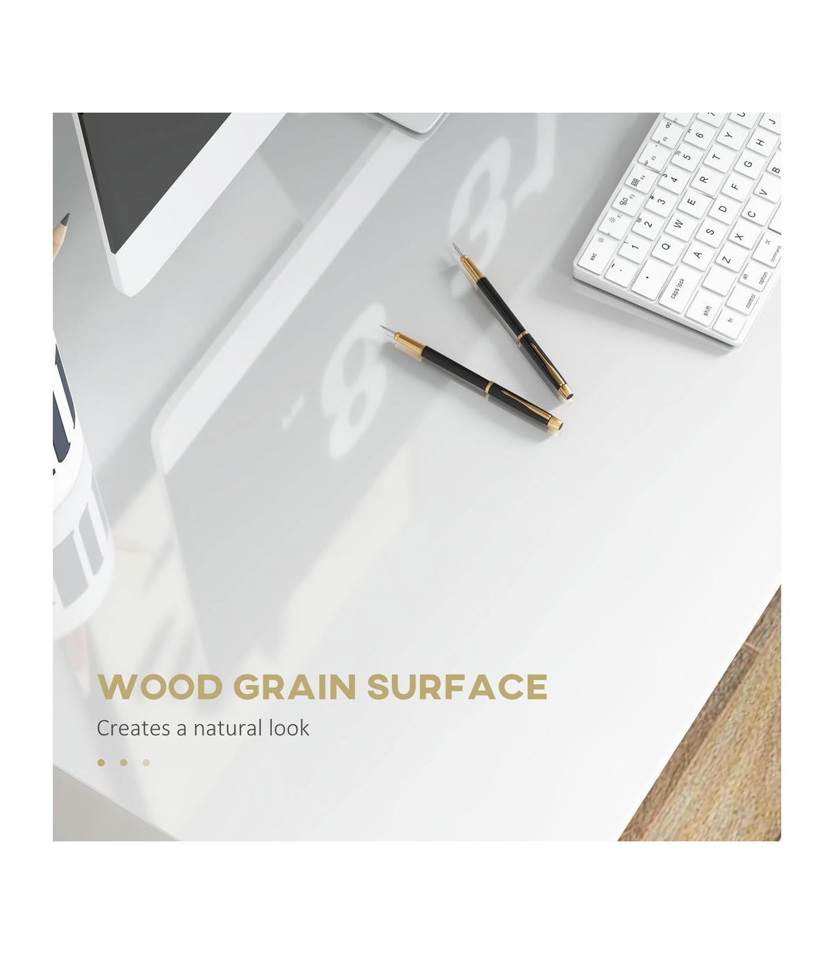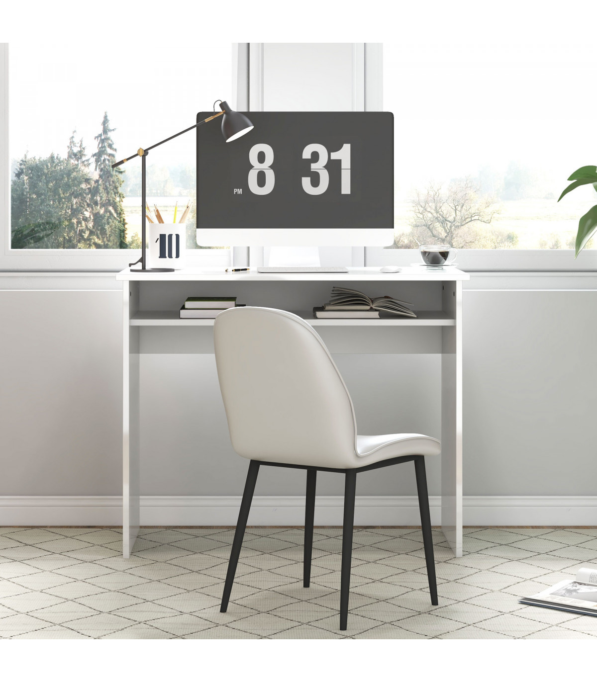 - Extra storage space underneath the tabletop store smaller office supplies, such as pens, sticky notes, and staplers