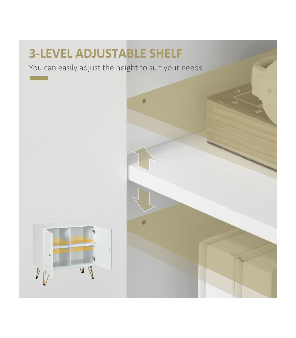 ● 3-level adjustable shelves provide you more storage options