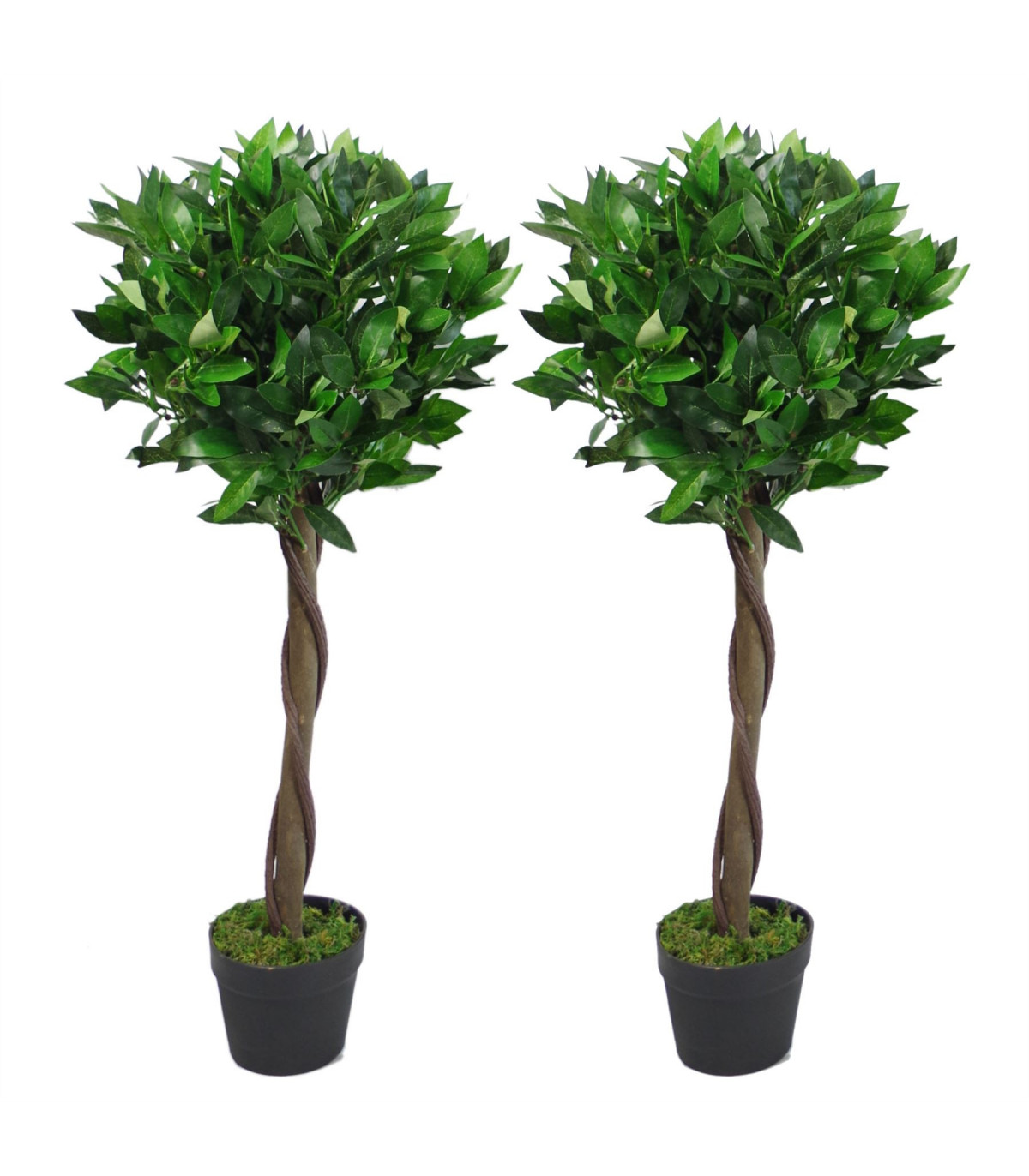 Pair of 90cm (3ft) Twisted Stem Artificial Topiary Bay Laurel Ball Trees