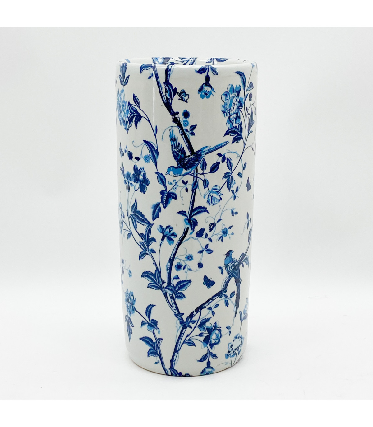 18" ROUND BLUE & WHITE BIRD UMBRELLA STAND