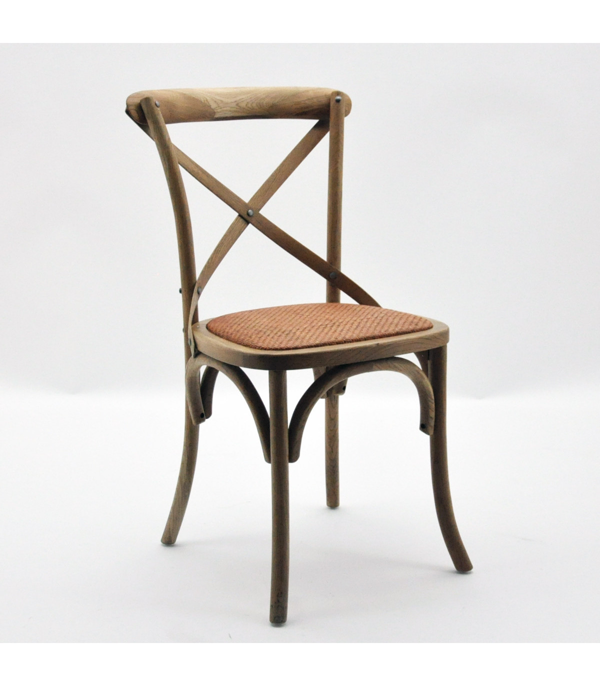 NATURAL FRENCH CROSS BACK CHAIR Sit back and relax on this cross-back dining chair. Also stackable for easy storage Easy to clean Sturdy & Versatile