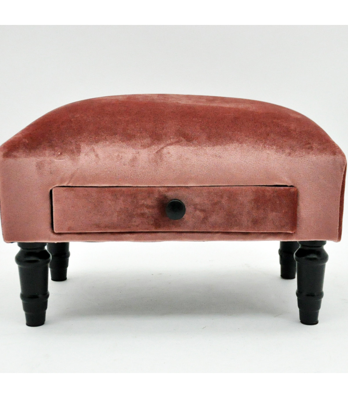 PINK VELVET FOOTSTOOL WITH DRAWER
