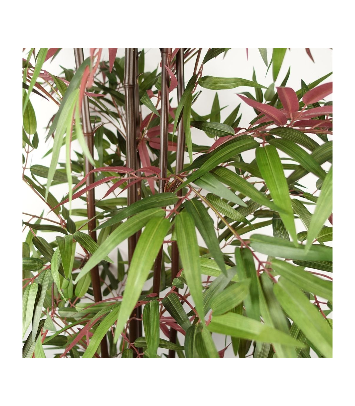 180cm Artificial Bamboo 1140 Red Green Silk Leaves. When arranged as shown in our pictures this stands 180cm tall x 80cm x 80cm. The plastic weighted pot measures 17cm (w) x 14cm (h).Highly realistic premium quality artificial plant. Comes potted in a plain black plastic pot and is ready to display but these do look all the more impressive if you stand them inside a larger decorative planter. It comes potted in a plastic weighted pot and whilst it can be left like that you can (if you wish) place it inside a larger planter for a different look. It is very easy to maintain - no watering required! It will benefit from the occasional dusting or can also be hosed off in the garden - these are very robust plants!It is highly realistic with botanically accurate foliage. These come ready to display, just arrange them on delivery and they will look like the real thing.
