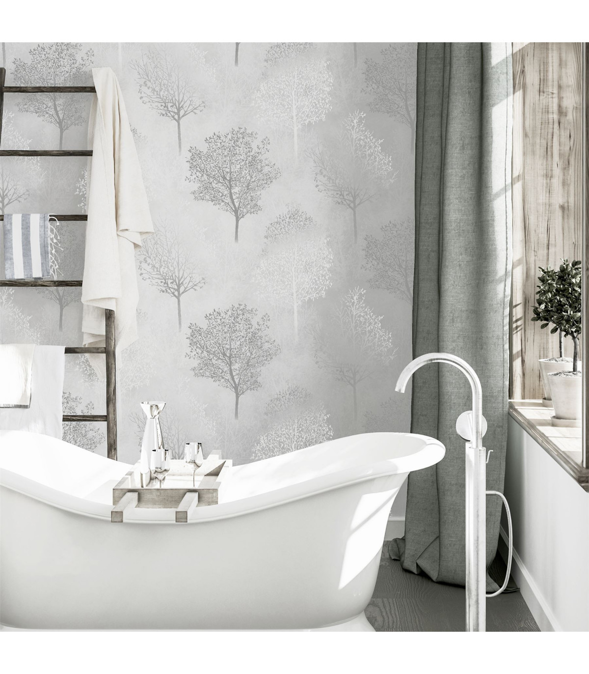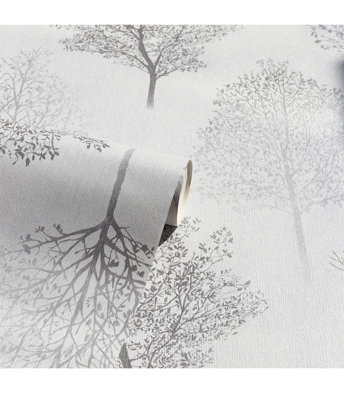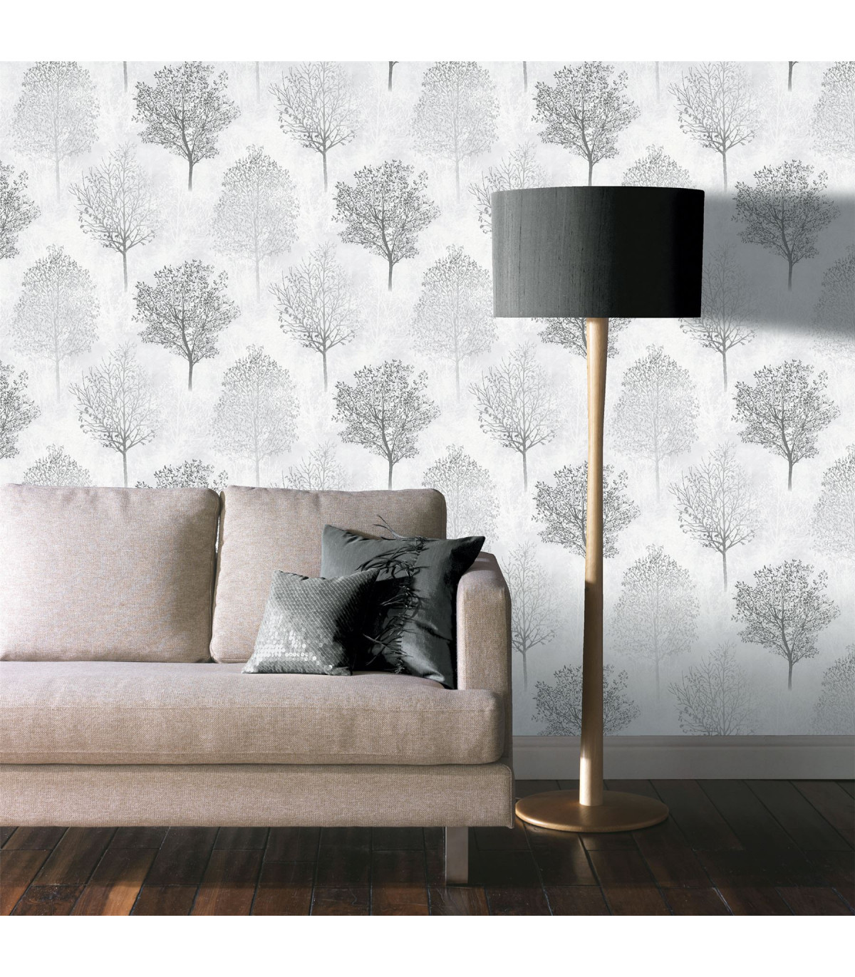 Create a woodland wonderland in your room, with a wallpaper that features silhouettes of trees in monochrome tones. With an all-over glitter finish for a hint of magical sparkle, it's a textured paper that will add a touch of luxury to your home. A vinyl wallpaper, it's not only tough and hardwearing - ideal for high traffic areas like halls - but it will cover slight imperfections too. So wherever you hang it, from living room and dining room to bedroom and bathroom, this is a paper that blends practicality with elegant style. Hanging Method: Paste the Paper Pattern Match: Off Set 26.5cm Pattern Repeat: 53cm