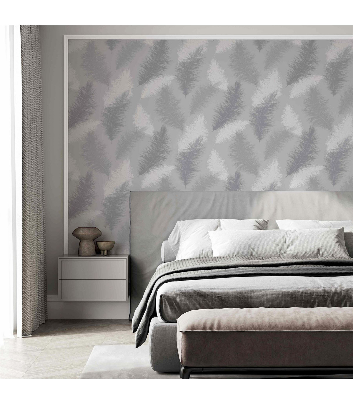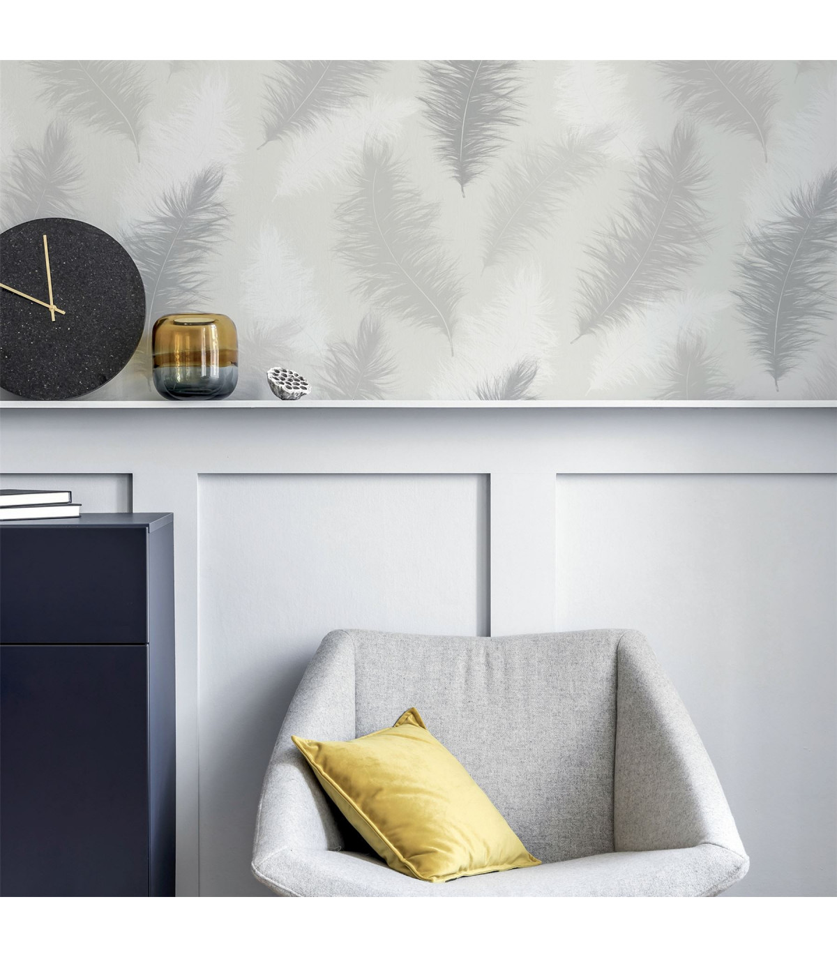 A fabulously eye catching wallpaper in an on-trend design and fashionable mix of colours. It contrasts a matt grey background with subtly sparkling gel effect feathers for a touch of luxury. A large-scale print, it will add impact and accentuate the sense of space in your room. Whether your home is contemporary or classic in style, this paper will create a stunning feature wall, in a bedroom or living room. Suitable for most rooms except high moisture environments, like bathrooms. Suitable for most rooms except high moisture environments, like bathrooms. Hanging Method: Paste the Paper Pattern Match: Off Set 32cm Pattern Repeat: 64cm