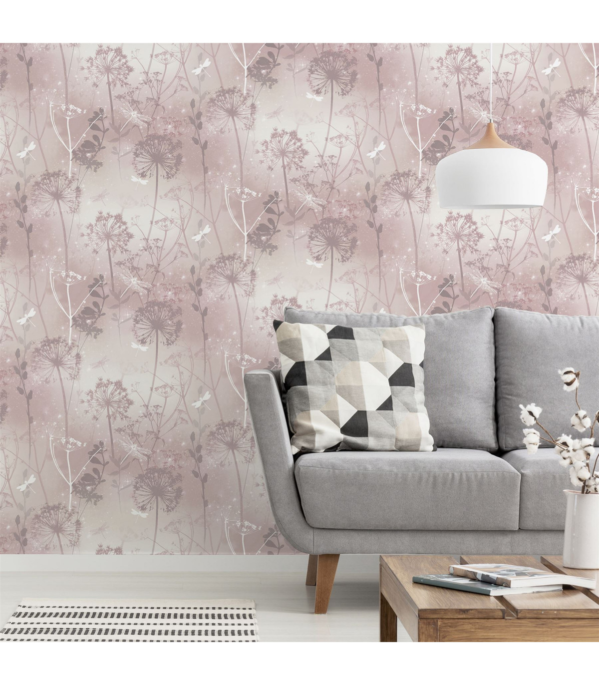 An ethereal wallpaper reminiscent of summer, in soft shades of blush pink with silvery grey. The sparkling, glitter gel highlights catch the light to give your room subtly sparkling glamour. This is a pretty paper that will look fabulous in a living room, dining room, bedroom or hallway, whether you hang it on a feature wall or paper all four walls. Suitable for most rooms except high moisture environments, like bathrooms. Hanging Method: Paste the Paper Pattern Match: Off Set 26.5cm Pattern Repeat: 53cm