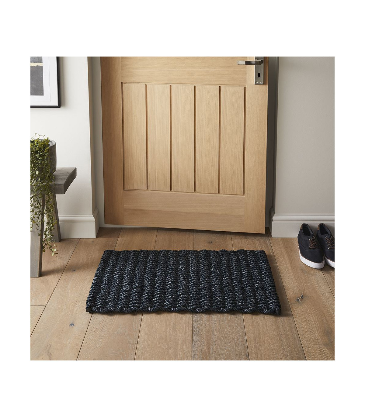 A beautiful and highly durable doormat for indoor or sheltered outdoor use. The Bestselling Didsbury Rope design is made from biodegradable, tough, twisted polypropylene cord developed for the marine industry. Designed with a raised weave structure for scraping mud. This product is mildew-resistant, free-draining, reversible, and easy to clean. When new and before weathering, Didsbury Rope mats have a surface sheen. During this time, place securely on a non-slip and non-polished surface to aid slip resistance