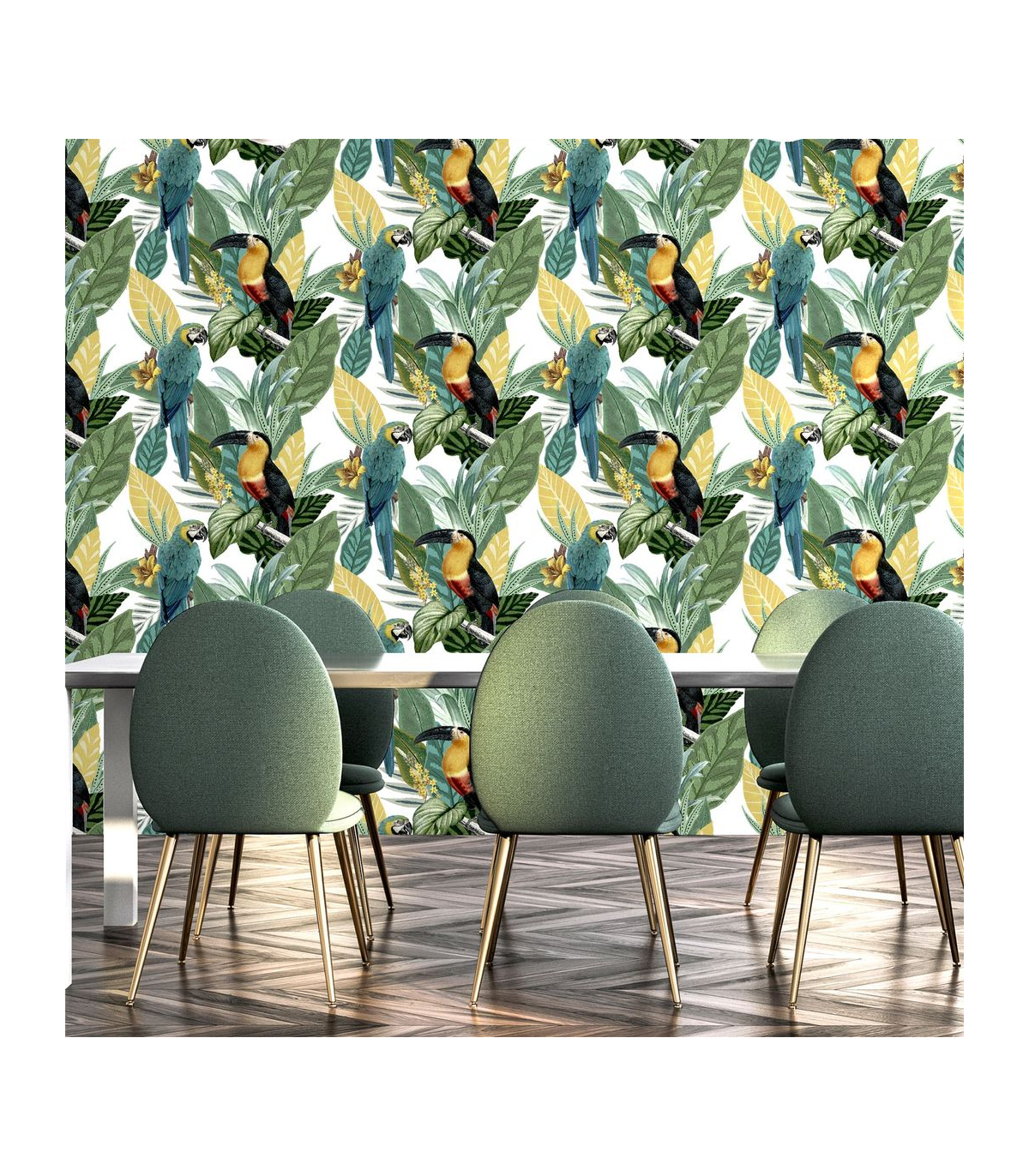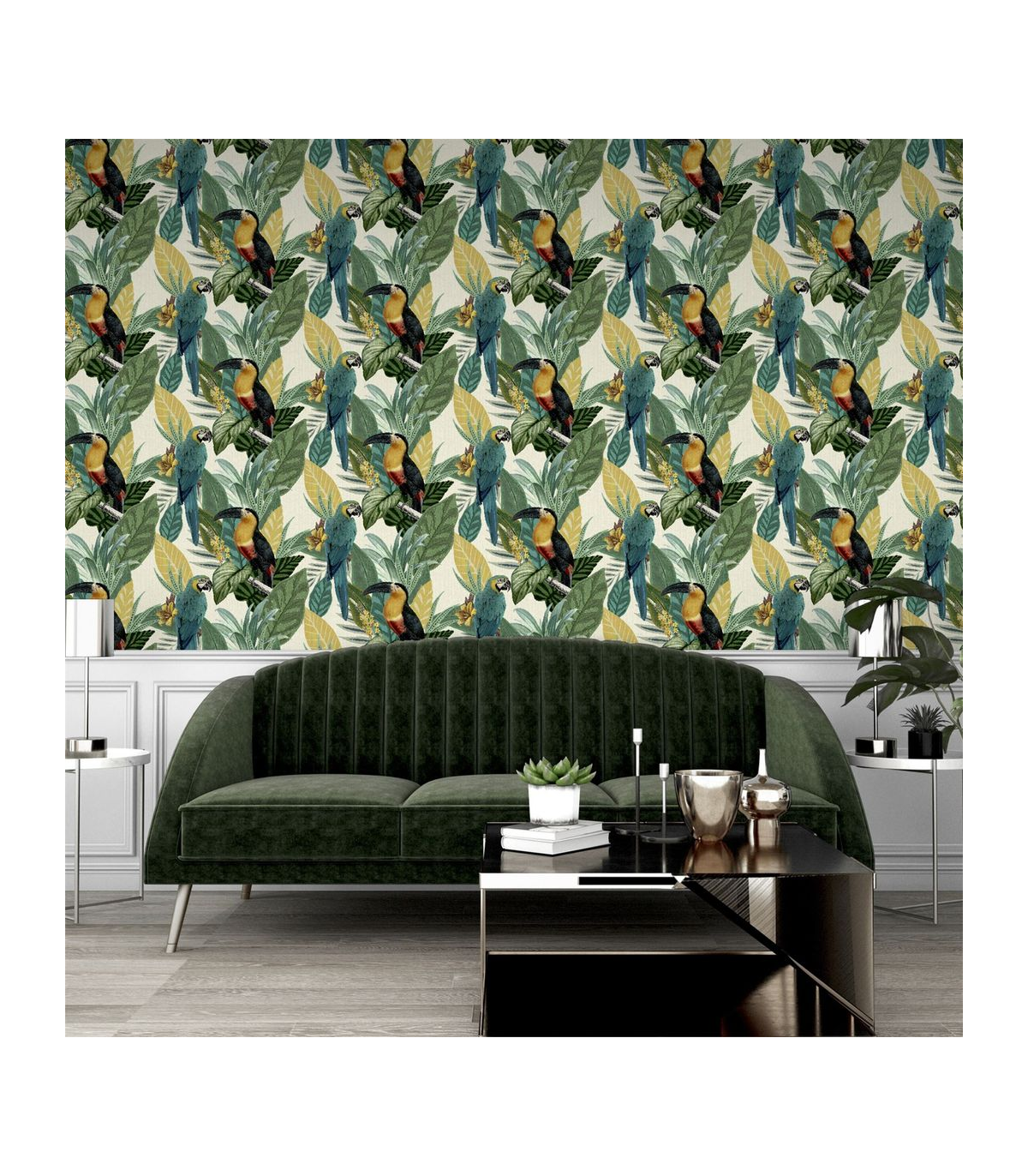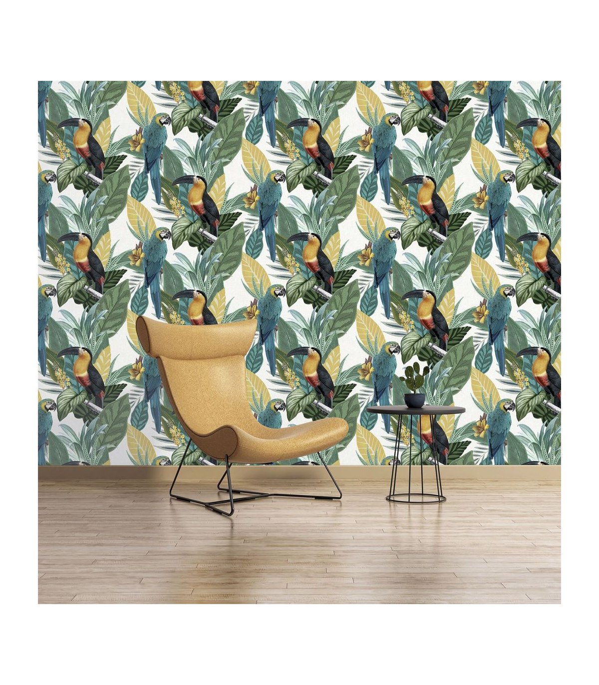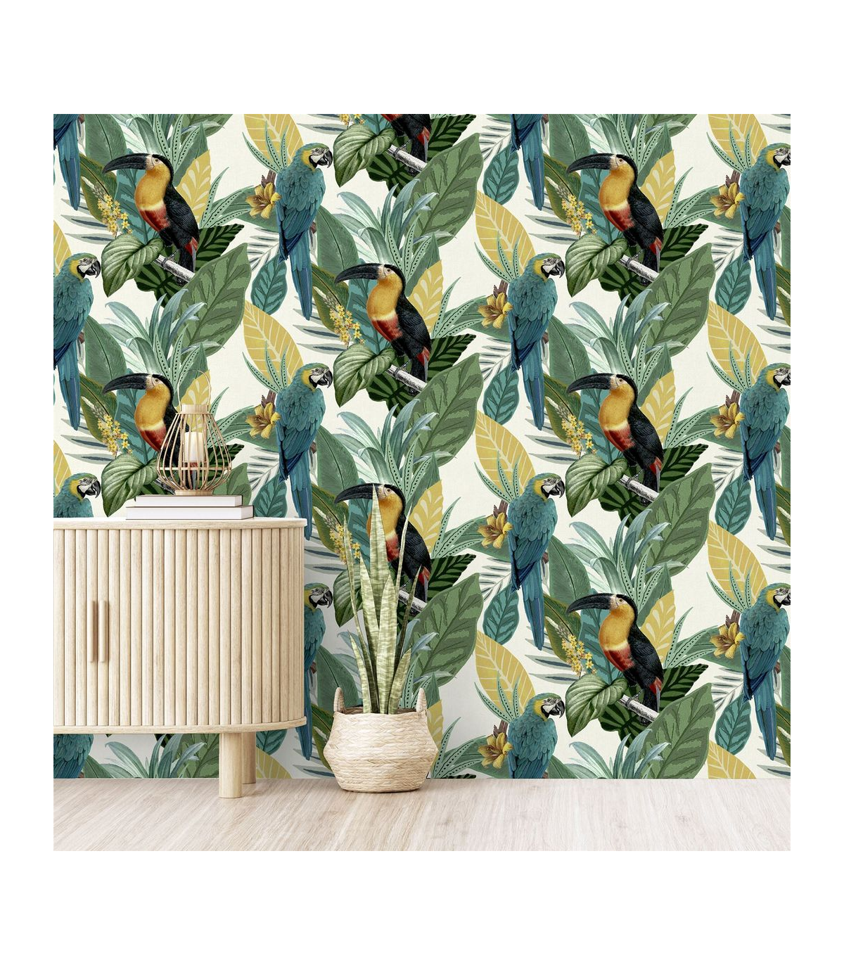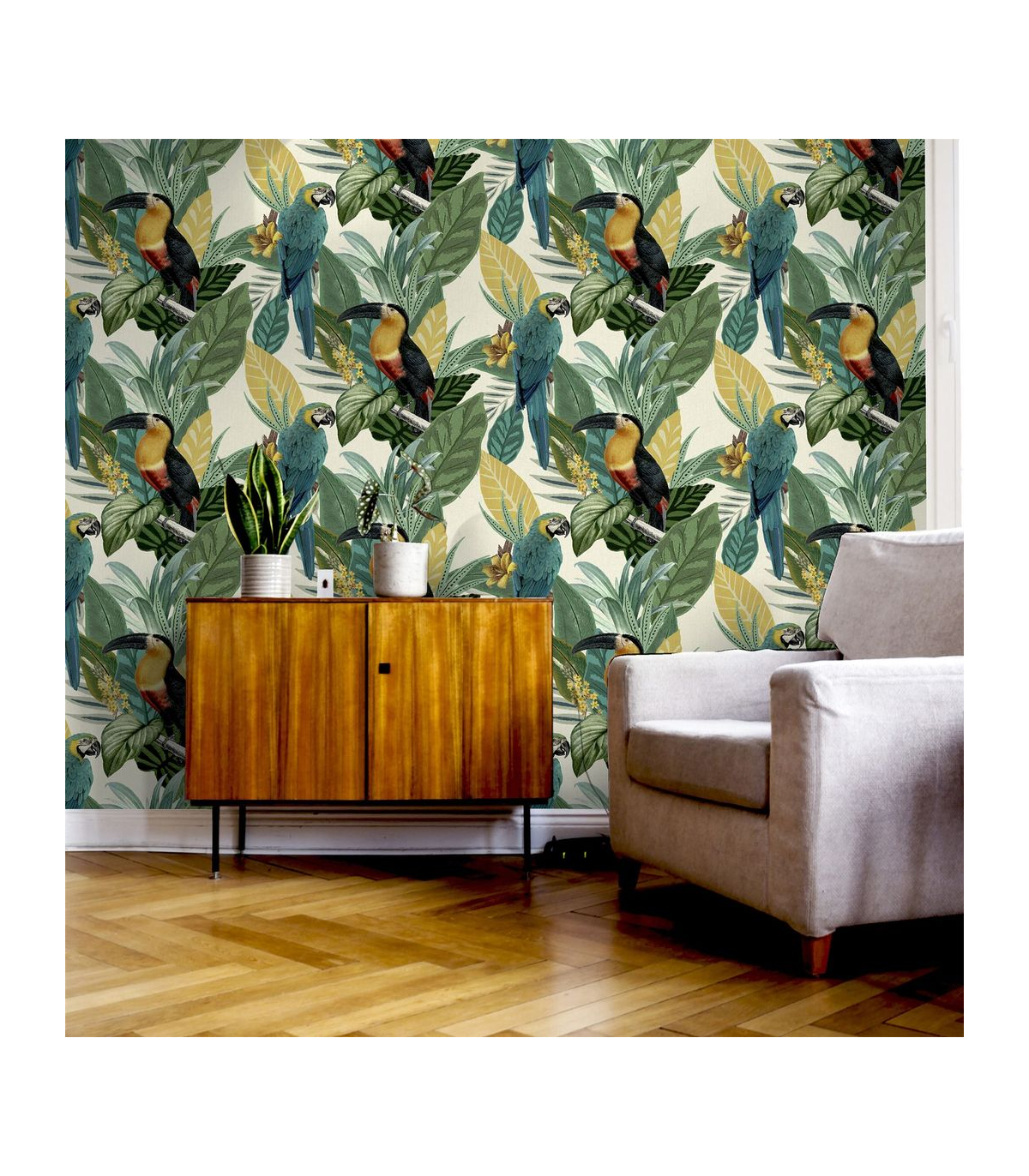 Would you like to add a touch of nature to your living space, well this gorgeous toucan design is perfect for creating a lovely jungle themed room with toucans and parrots throughout. Set on a light background with an array of foliage for a truly mesmerising finish. Suitable for most rooms except high moisture environments, like bathrooms. Hanging Method: Paste the Paper Pattern Match: Off Set 26.5cm Pattern Repeat: 53cm