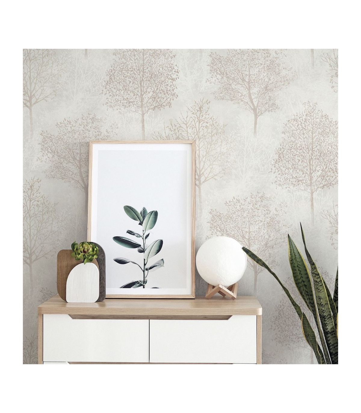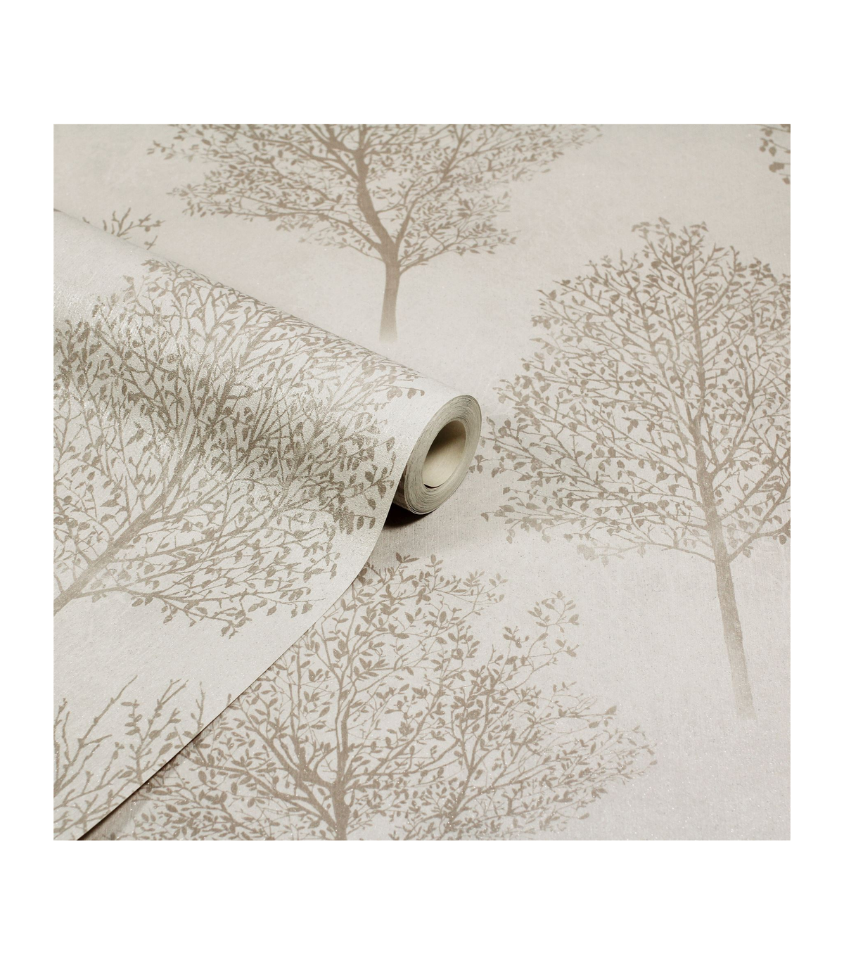 A subtle woodland wallpaper design with no shortage of mystical appeal. With silhouettes of trees in pale, natural tones and an all-over glitter finish to catch the light from every angle. This textured paper will add a touch of luxury to your home, whether it's traditional or contemporary in look. A vinyl wallpaper, it's not only tough and hardwearing - ideal for high traffic areas like halls - but it will cover slight imperfections too. So wherever you hang it, from living room and dining room to bedroom and bathroom, this is a paper that blends practicality with elegant style. Hanging Method: Paste the Paper Pattern Match: Off Set 26.5cm Pattern Repeat: 53cm