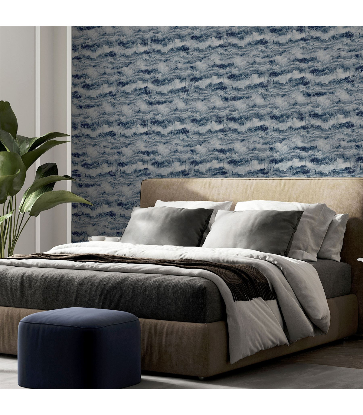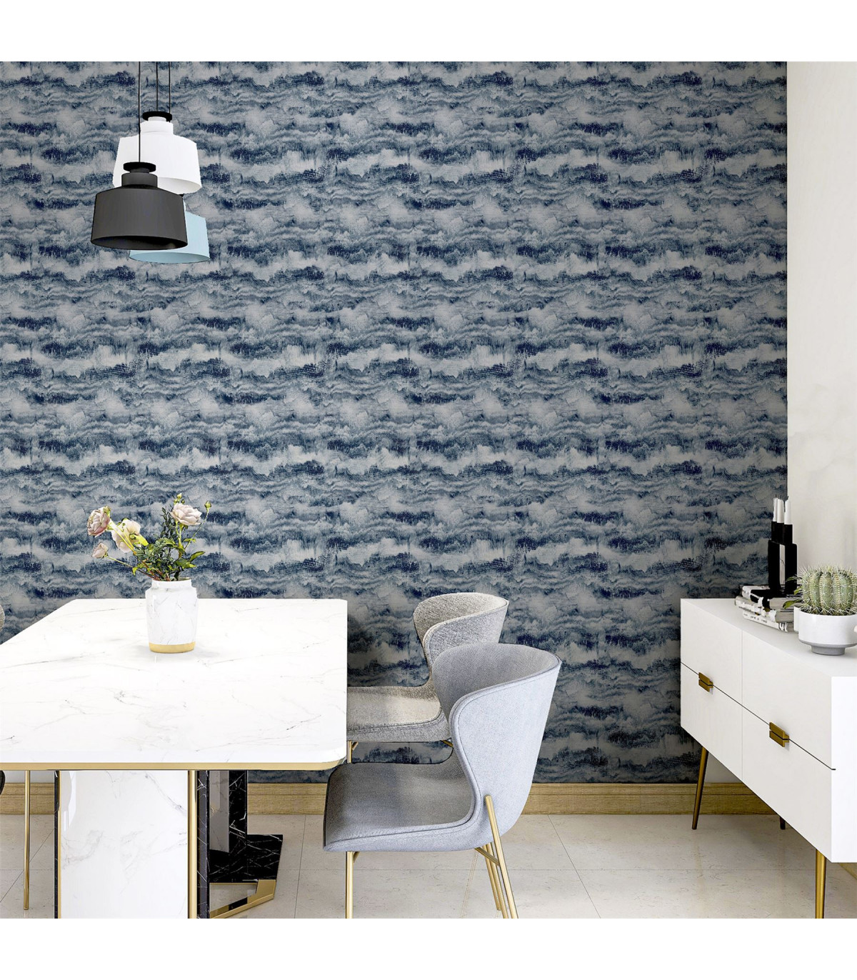 Add depth to a room with this expressionist design. Painted canvas invokes inky lines, brushstrokes and soft hand drawn shapes which have resulted in this quirky design. With natural tones of navy on a white background this design is perfect for adding a subtle yet striking look to a room. on space, mess and clean up. Hanging Method: Paste the Wall Pattern Match: Straight Match Pattern Repeat: 56cm