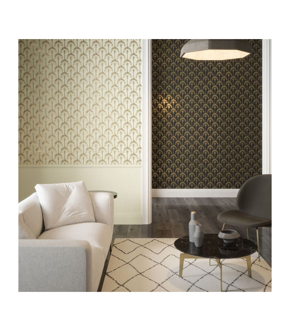 Our Palm Palace design is perfect for the luxurious exotic look. The design features illustrative palm, reminiscent of colonial style which add to the overall opulent feel. The vintage feel is a nod to the golden age of the Caribbean and the gorgeous palms we've seen in Cuba. The palms are finished off in a shimmery gold metallic on top of a soft delicate cream background. on space, mess and clean up. Hanging Method: Paste the Wall Pattern Match: Straight Match Pattern Repeat: 53cm