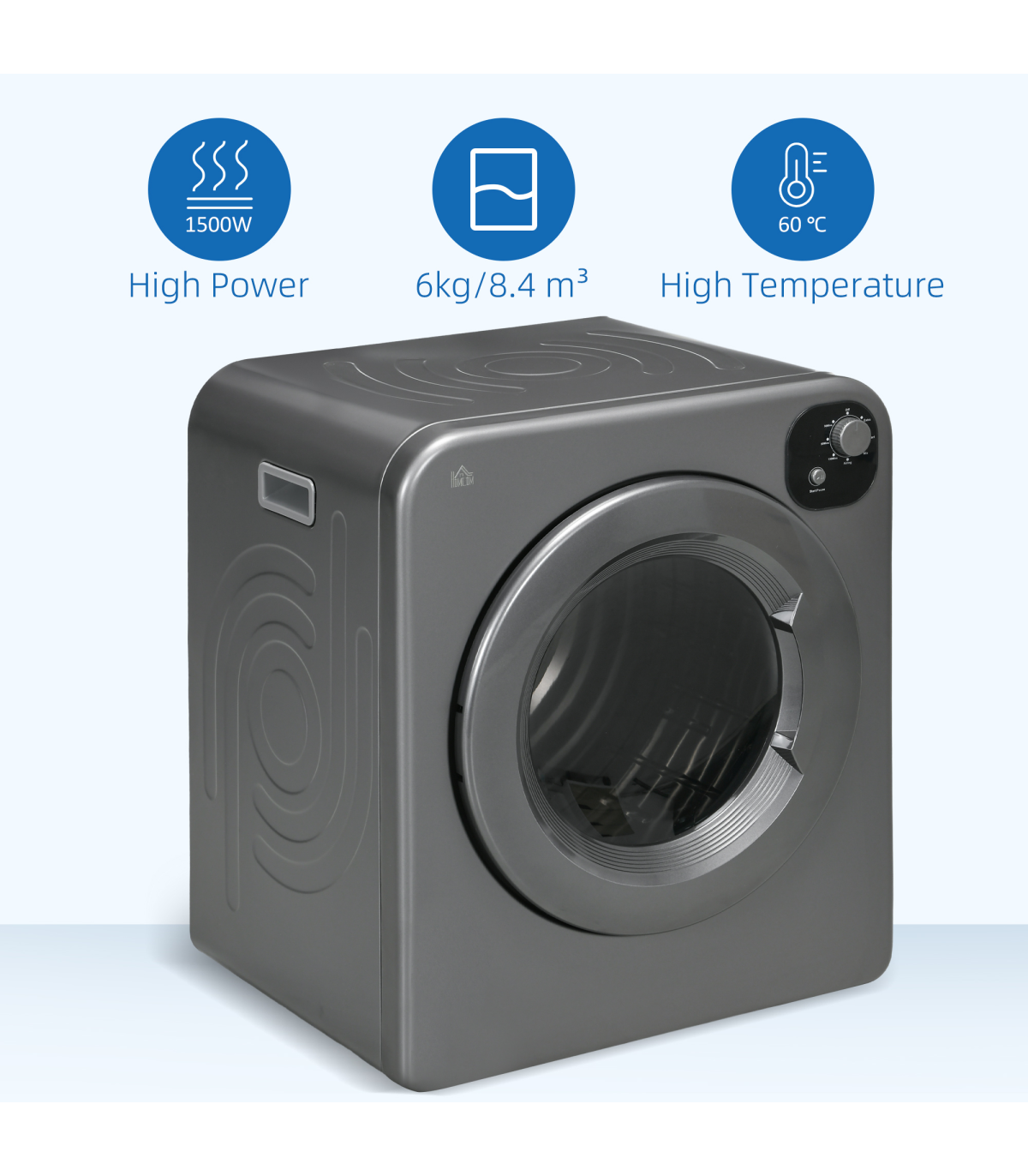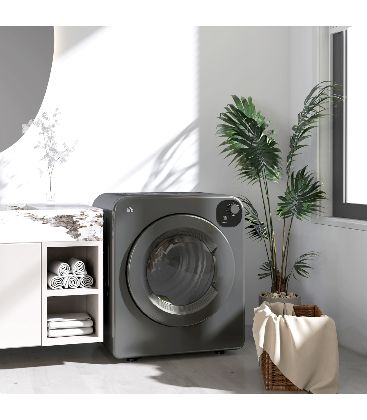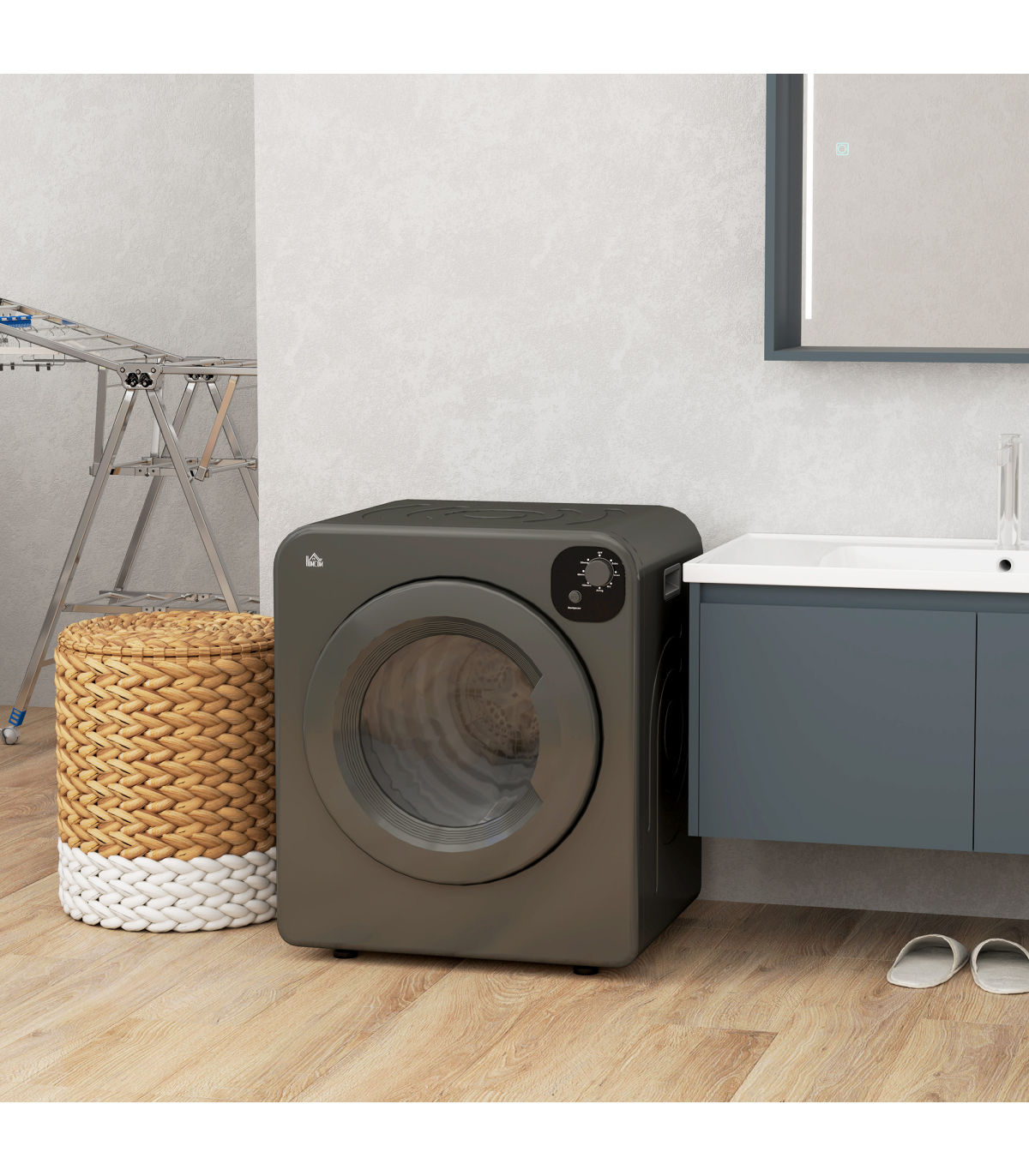 HOMCOM 6kg Vented Tumble Dryer with 7 Dry Programmers for Small Spaces Grey