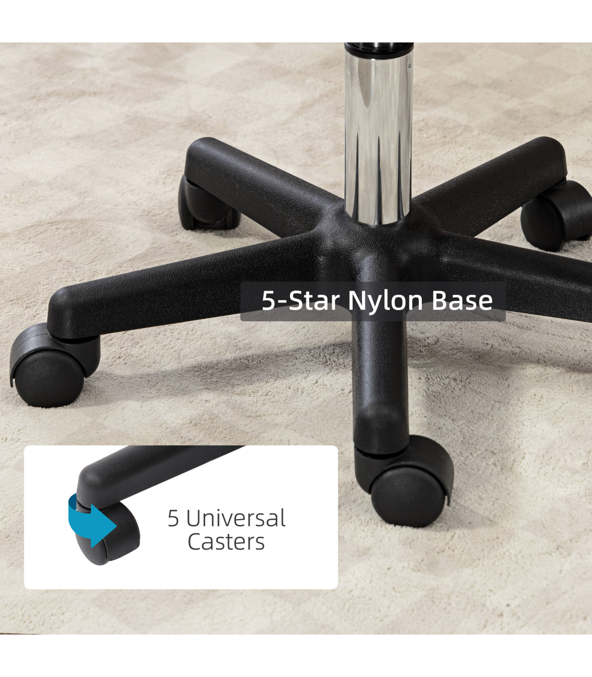 This saddle chair from HOMCOM allows you to sit at just the right height for whatever the task is at hand: painting, styling hair, massage and more. The five wheels allow you to move freely side-to-side, as your body moves naturally. The firm curved back and cushioned seat gives you the comfort needed for long sitting periods, with the steel frame offering full support. So take a seat and focus on your work with complete ease.