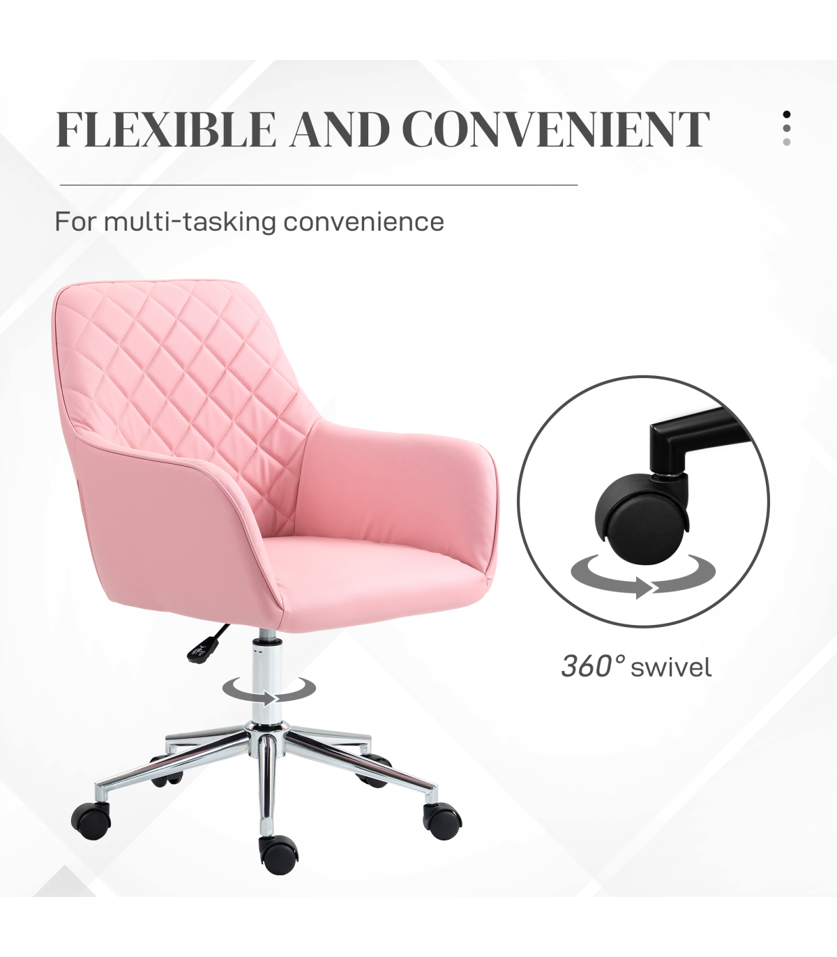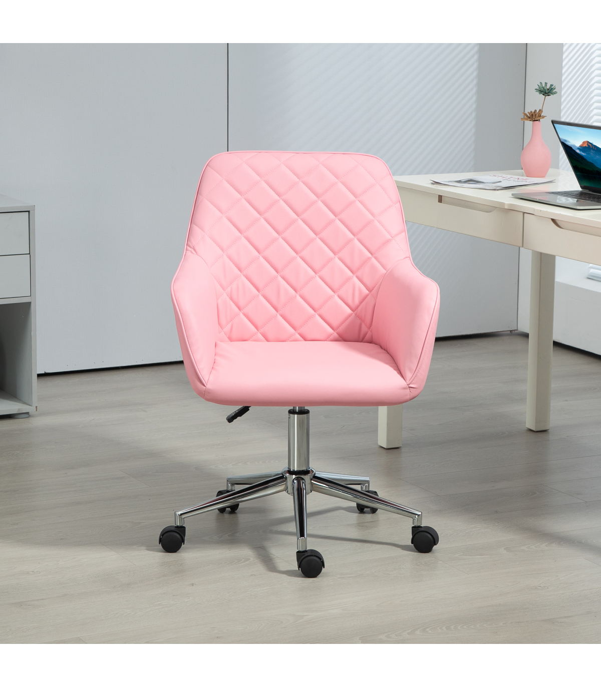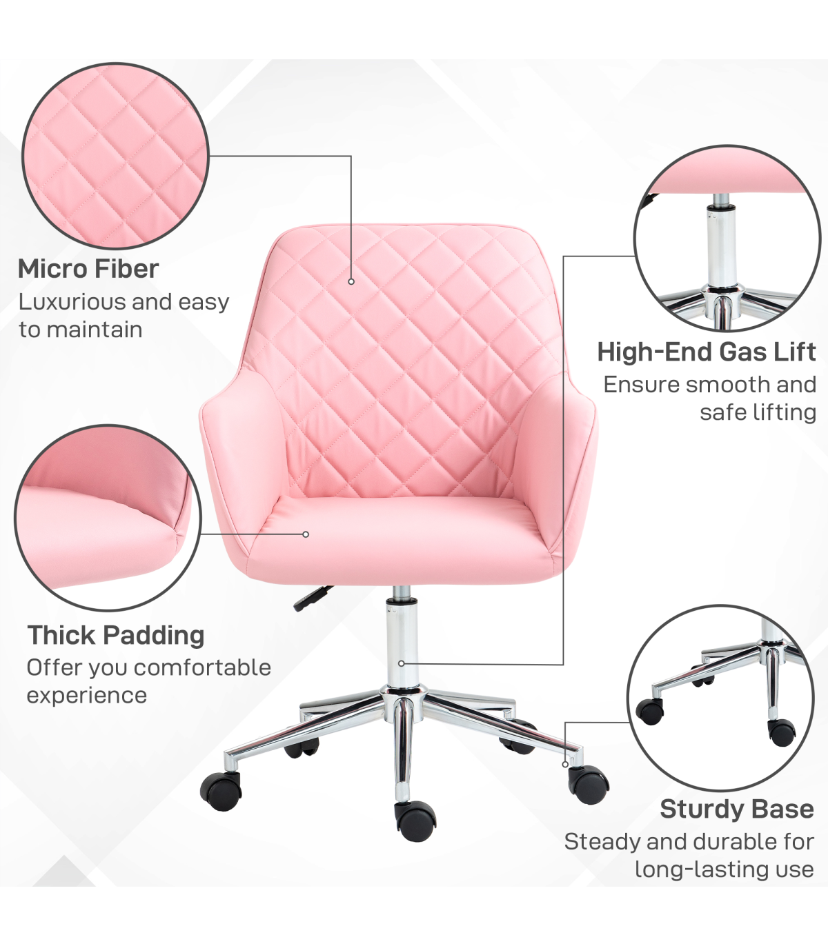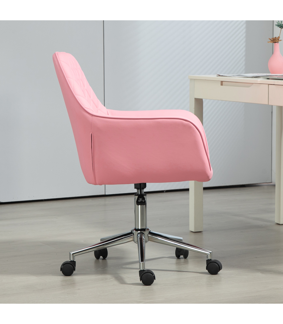 Vinsetto Home Office Chair Leather-Feel Fabric Swivel Chair with Armrests Pink