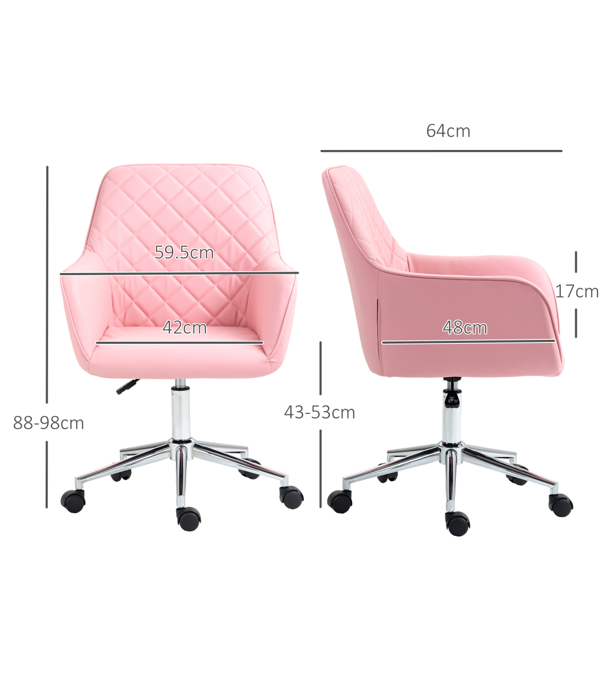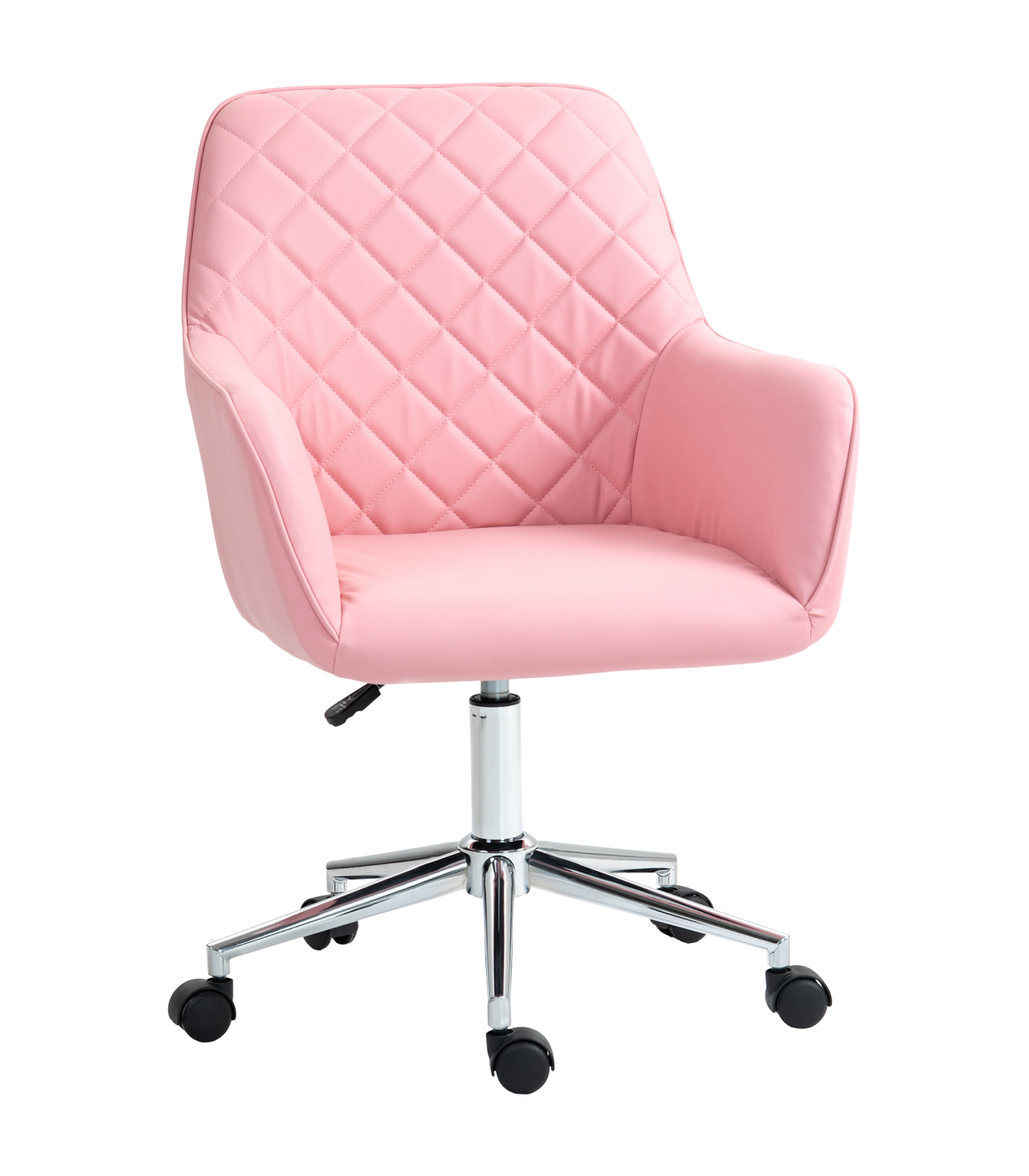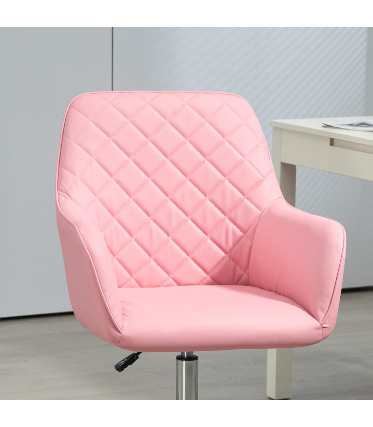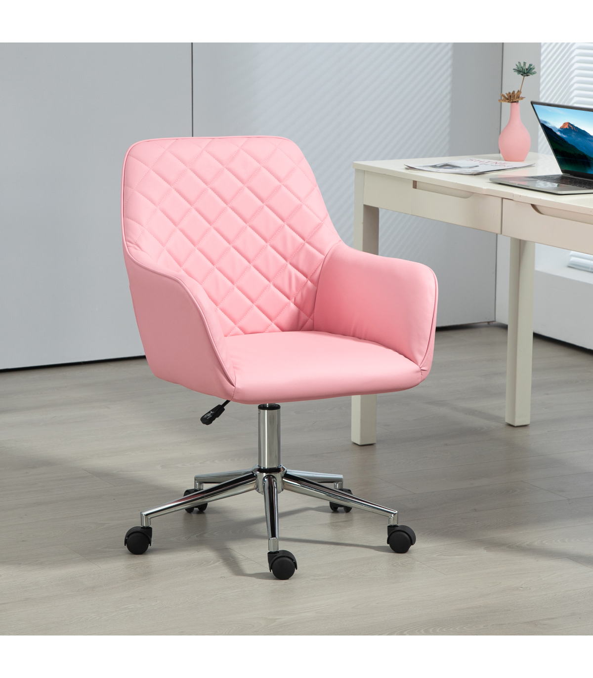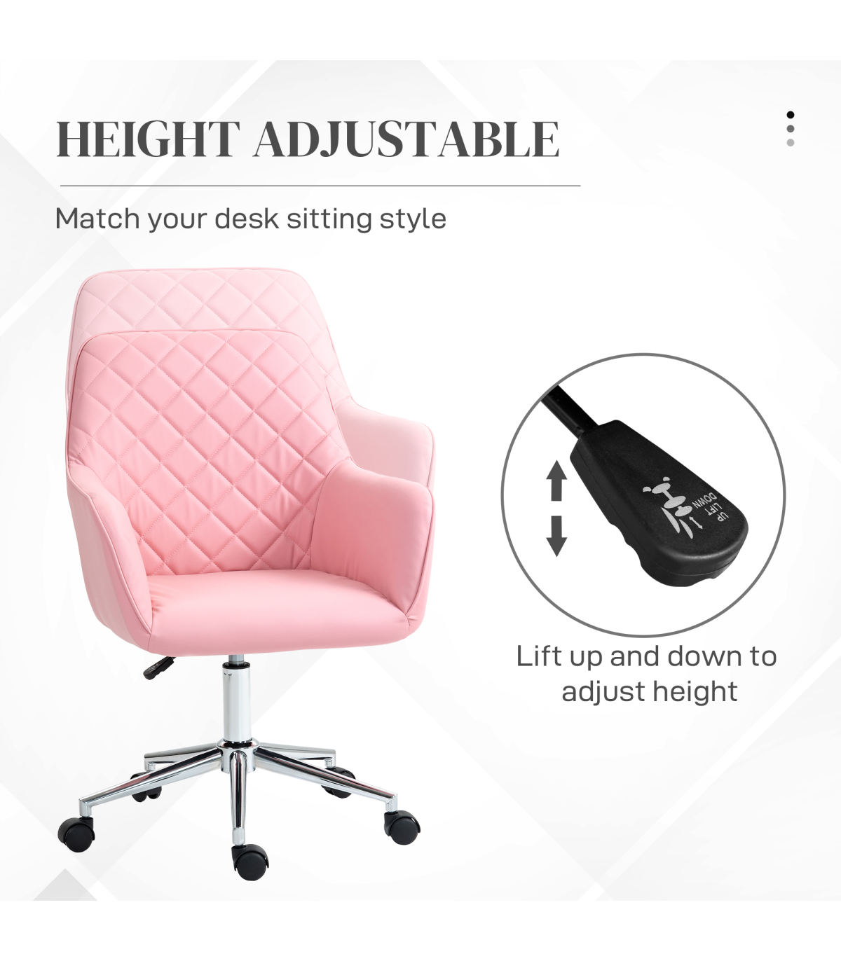Vinsetto Home Office Chair Leather-Feel Fabric Swivel Chair with Armrests Pink