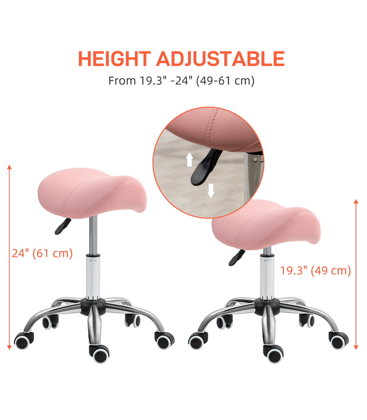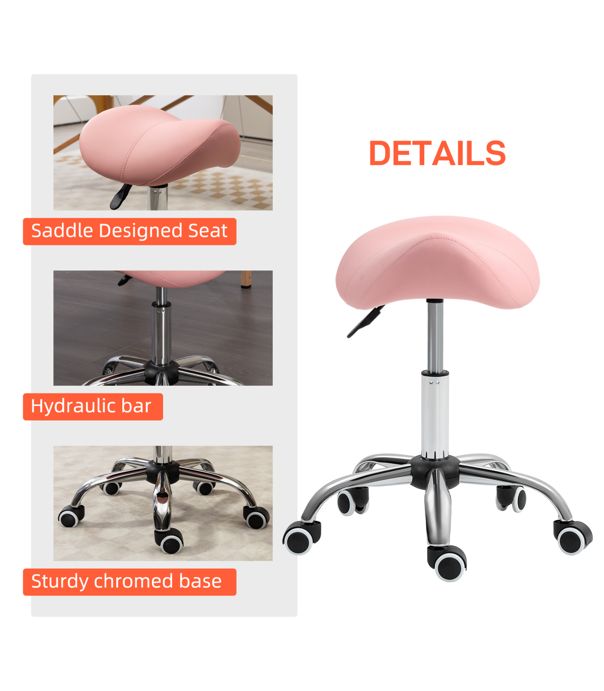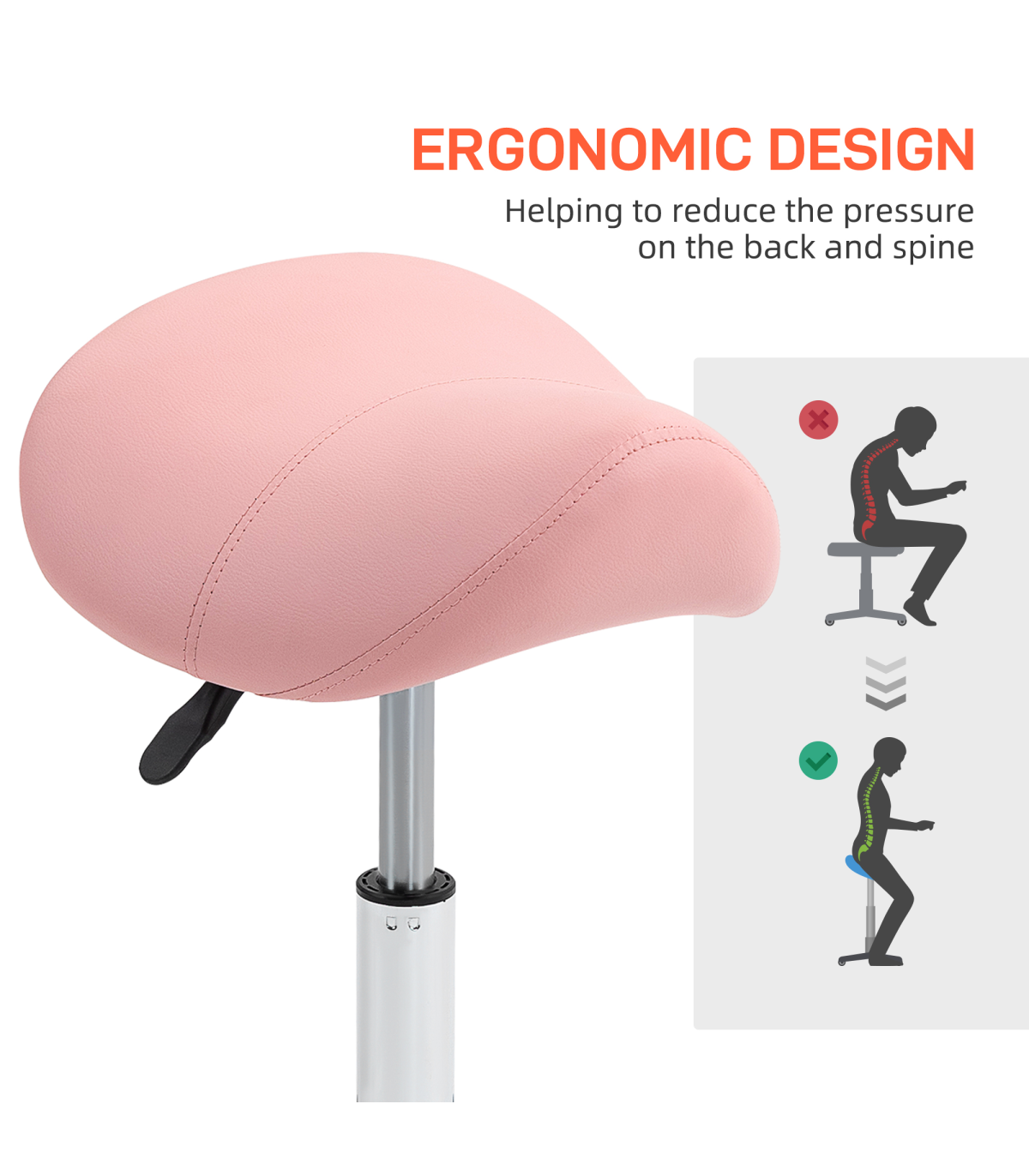HOMCOM PU Leather Saddle Stool w/ Moulded Padded Seat Adjustable Height Pink
