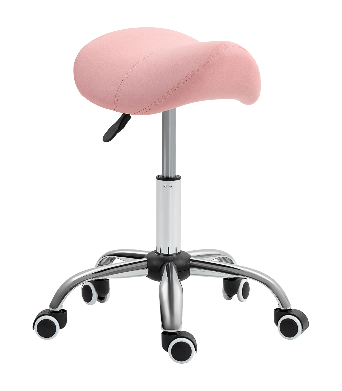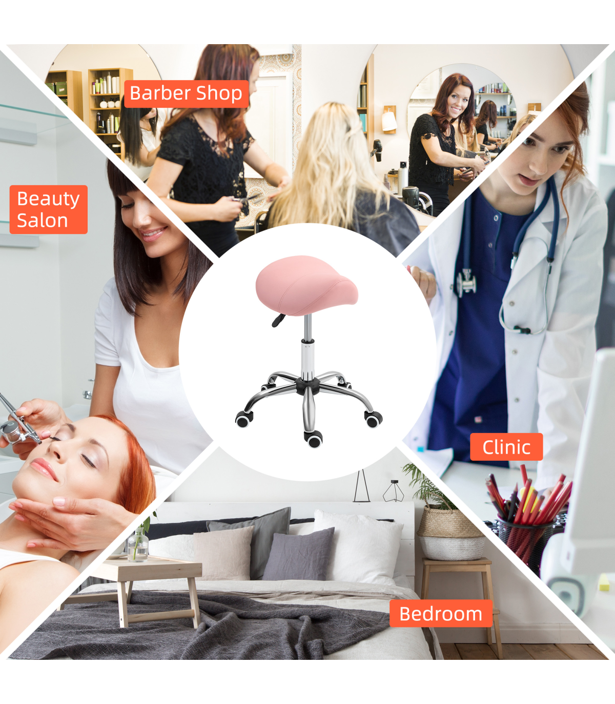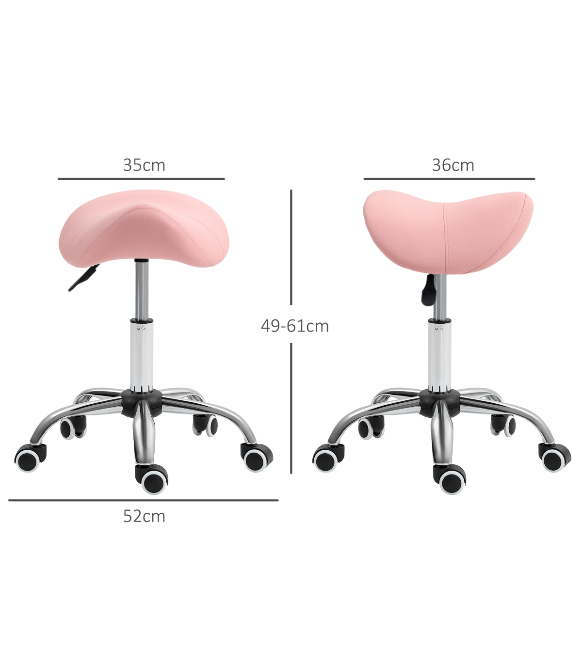 HOMCOM PU Leather Saddle Stool w/ Moulded Padded Seat Adjustable Height Pink