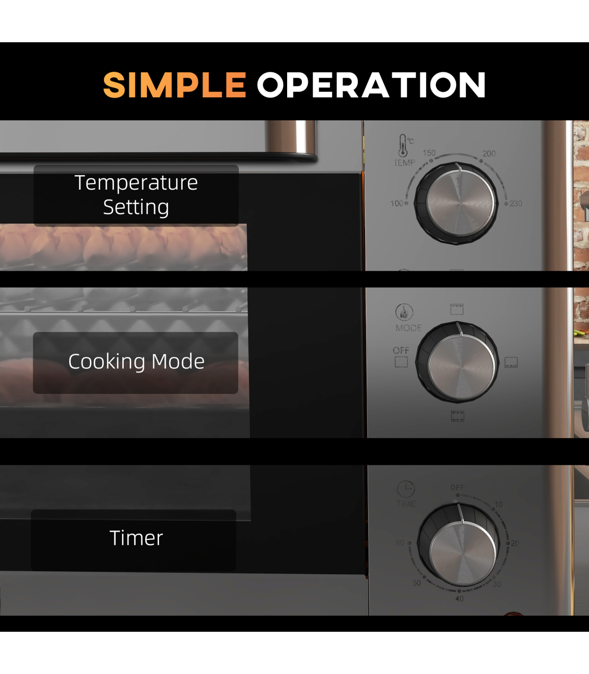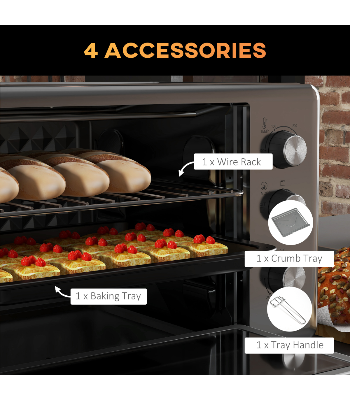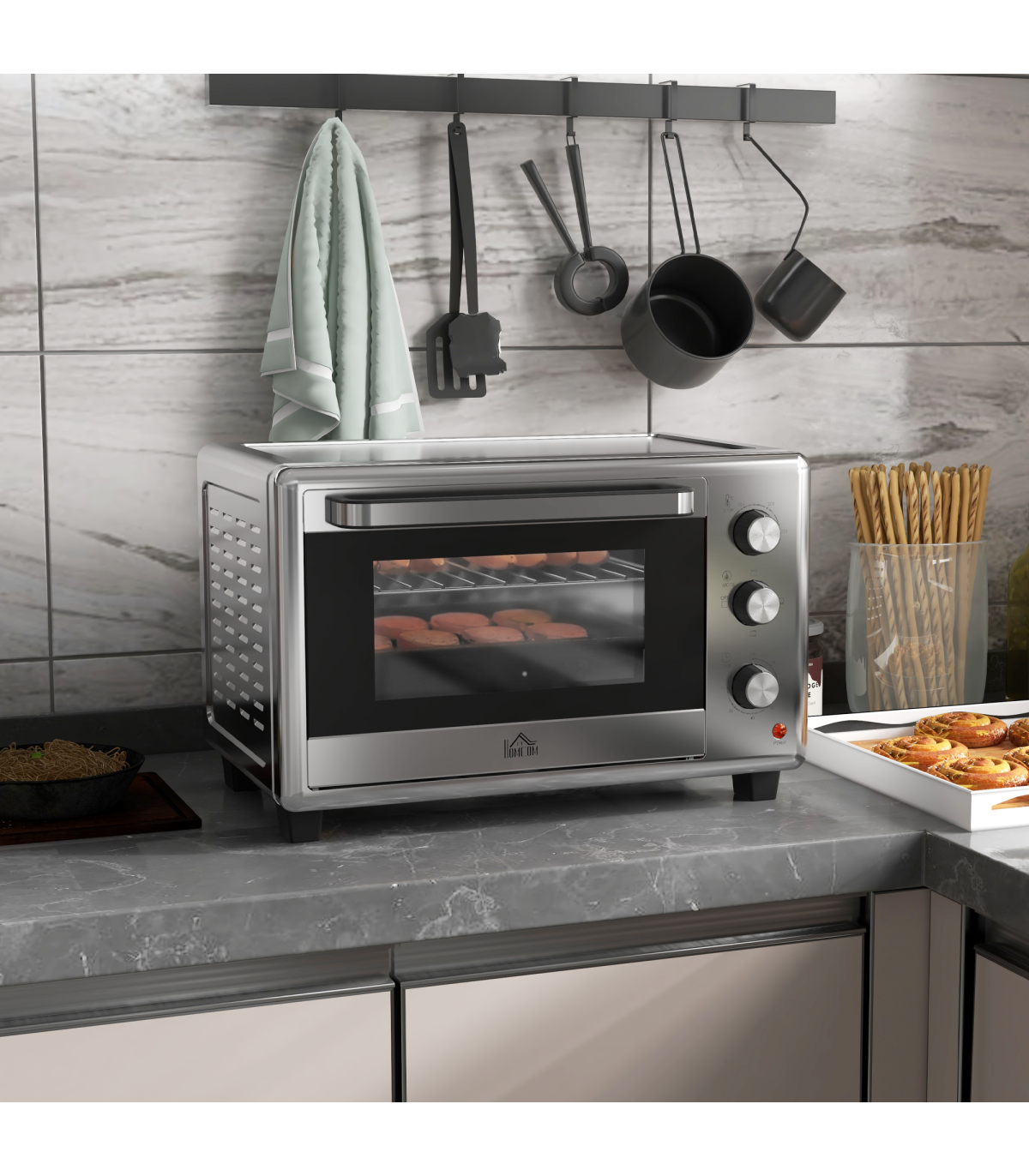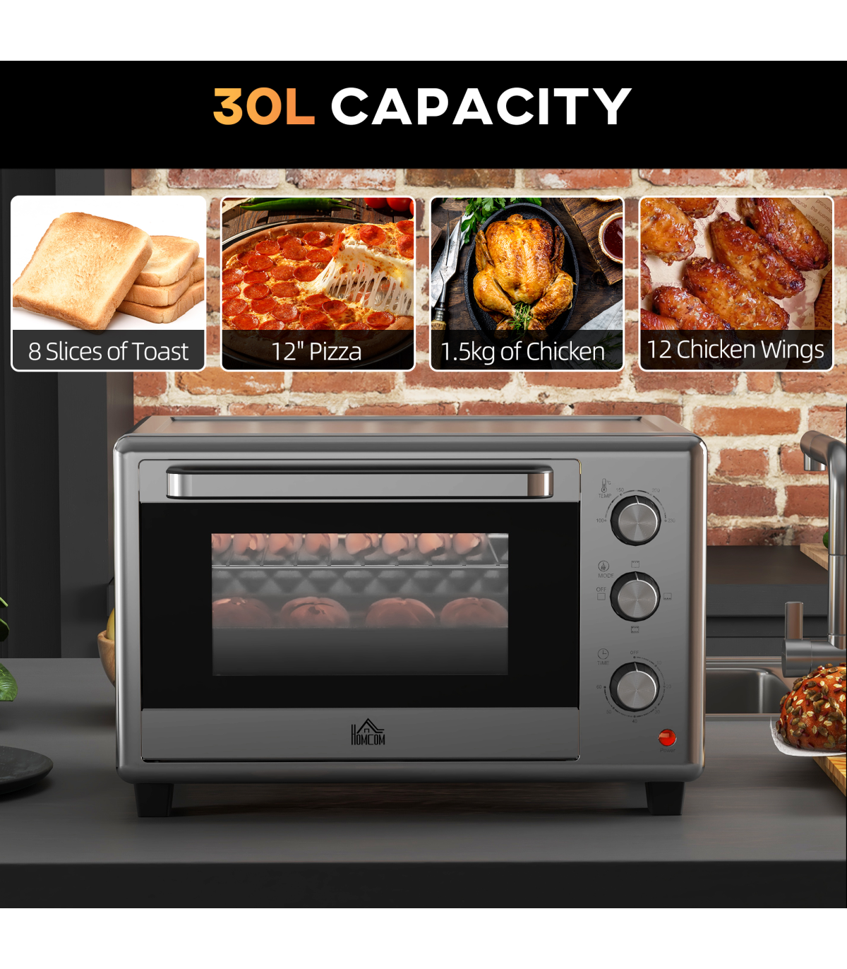 Cooking hot meals doesn't have to be confined to the usual kitchen spot. Get this HOMCOM mini oven - its compact and portable design means you can use it practically anywhere you like. The 30L capacity is generous: holds approx. 8x bread slices - enough for a one-person meal. Adjust the temperature between 60-230℃, with the choice to use the upper grill or lower grill individually - or together. Small over also has handy 60 minute timer.