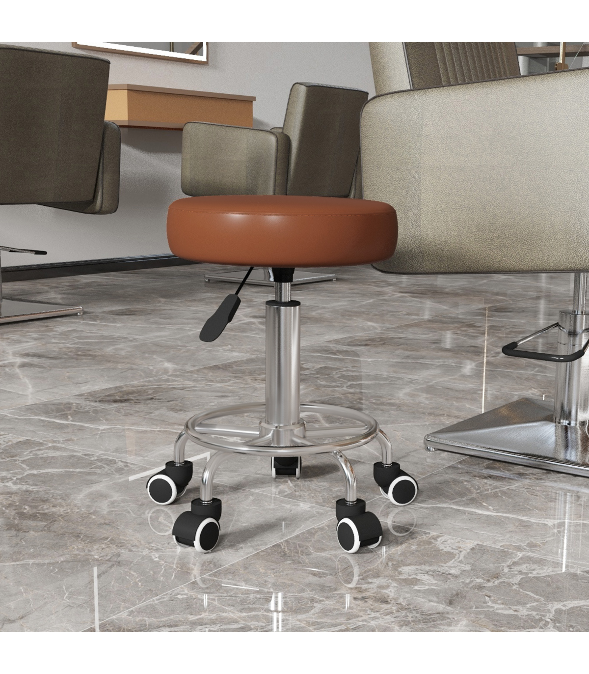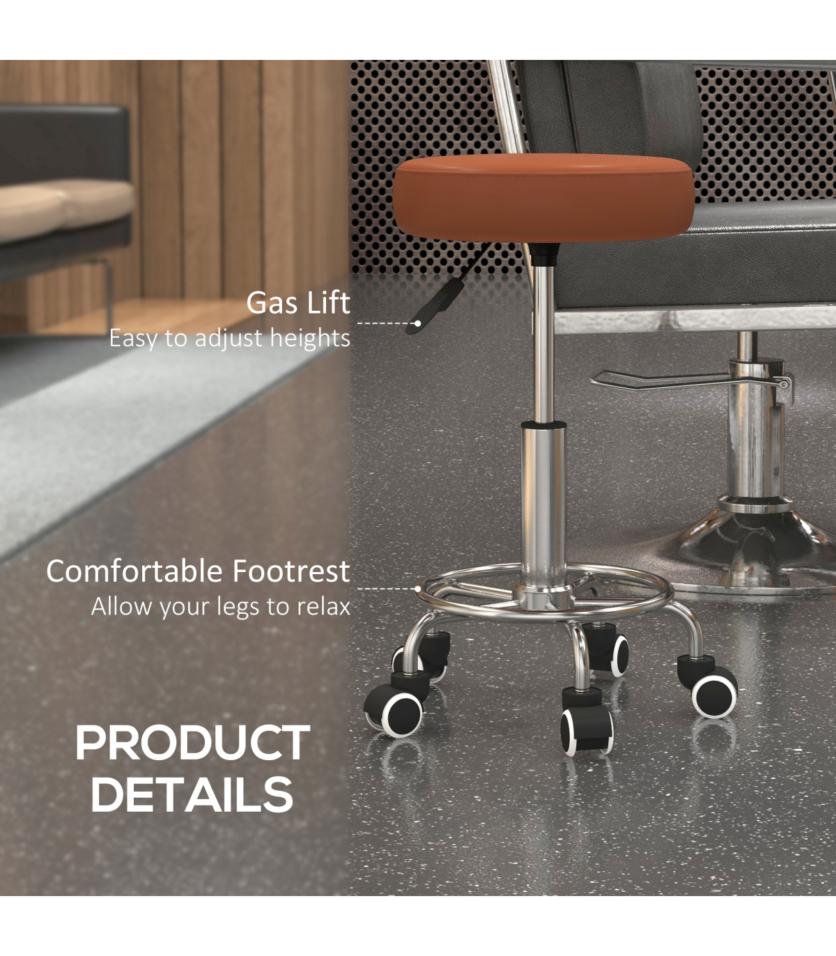 Vinsetto Round PU leather Salon Beautician Stool Adjustable Height, Brown