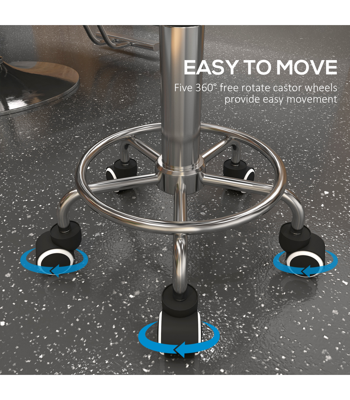 This hairdressing chair from Vinsetto provides maximum comfort and freedom as you work, whether that be as a hairdresser, dentist, beautician or so forth. The swivel chair uses a steel frame for a solid structure, set to different height works for you. It is fitted with padded seat for comfort, PU leather which can be wiped clean. There are five castor wheels for easy movement, with a footrest for extra comfort. An easy way to move easily around clients and perfect that haircut or treatment.
