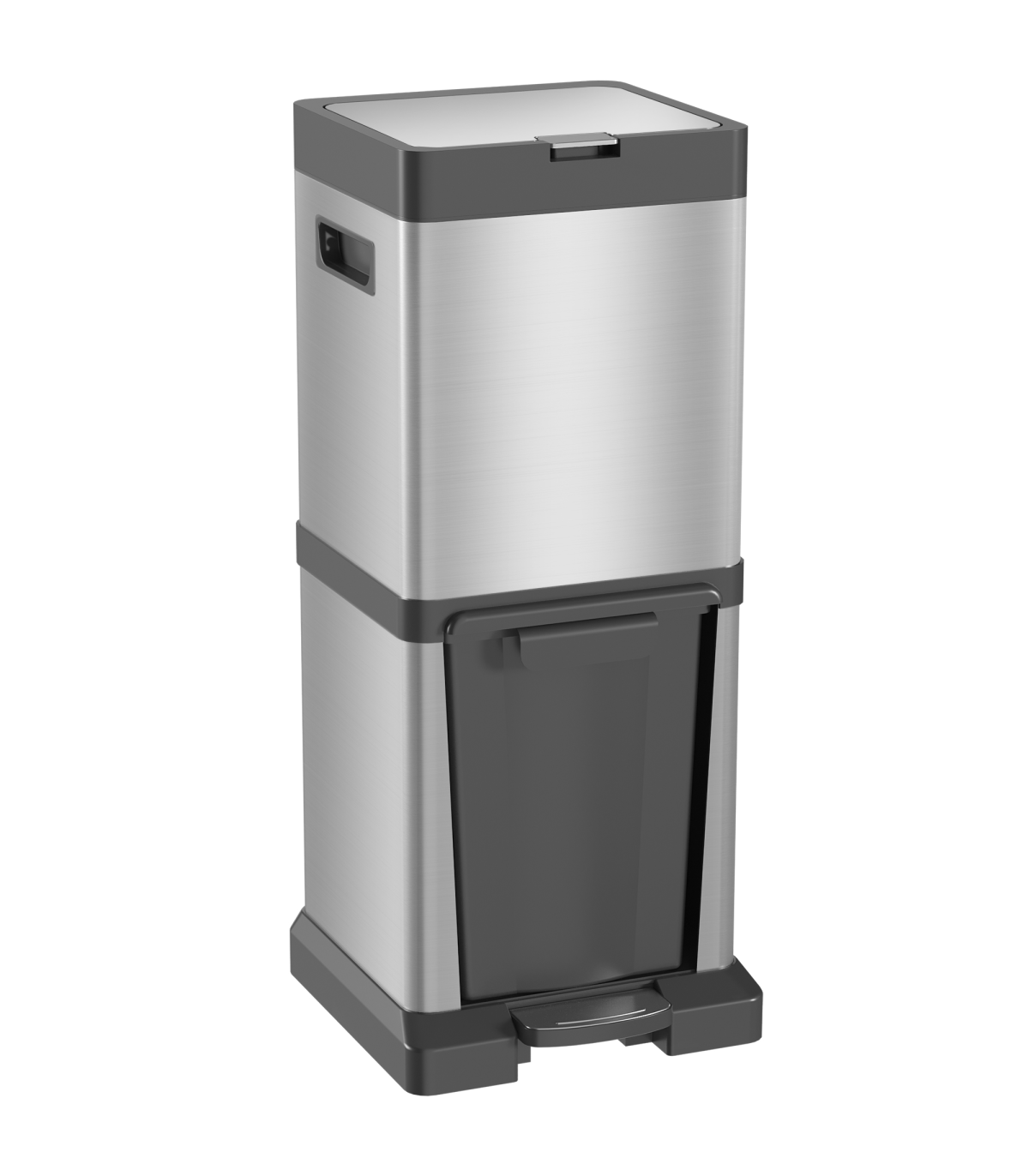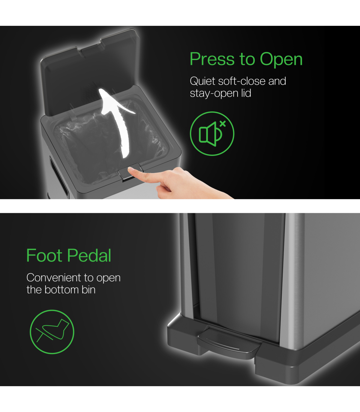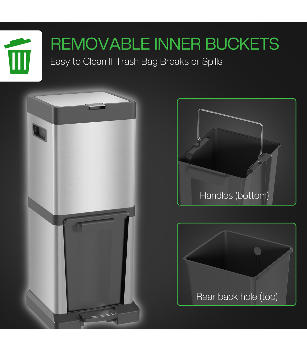 ● Two removable inner buckets for easy cleaning. Top compartment features a bag-fixing hole and bottom slot comes with handles
