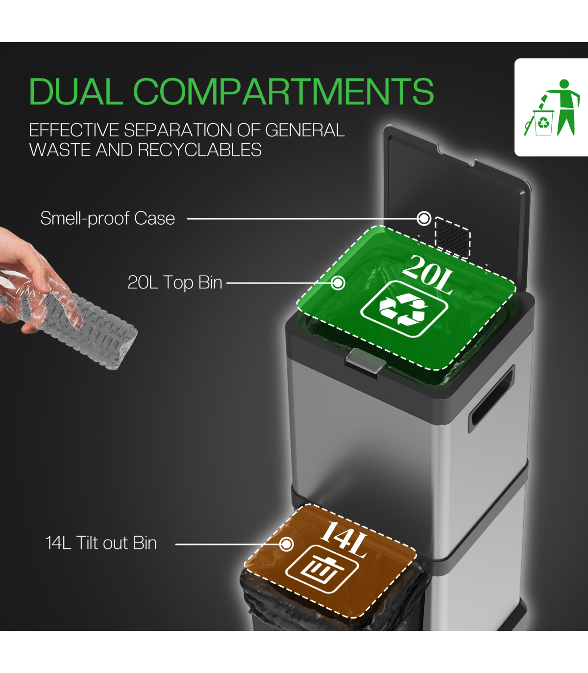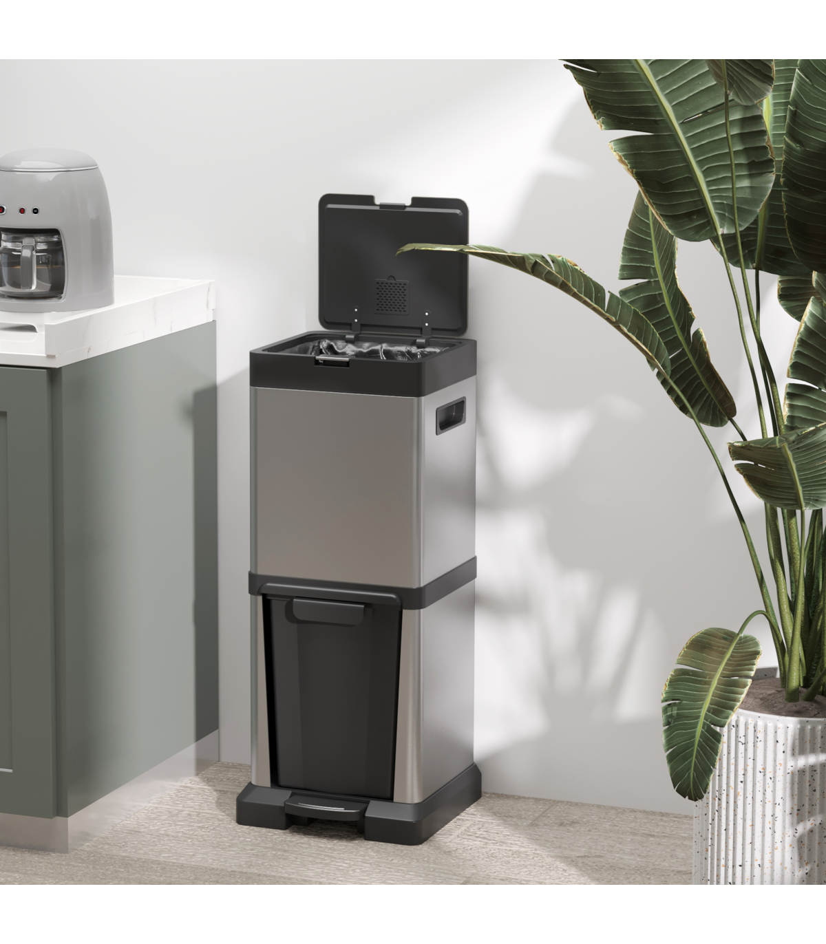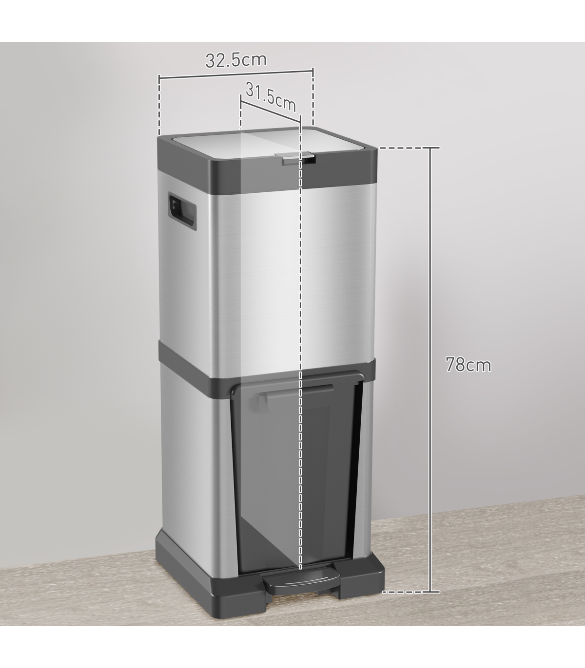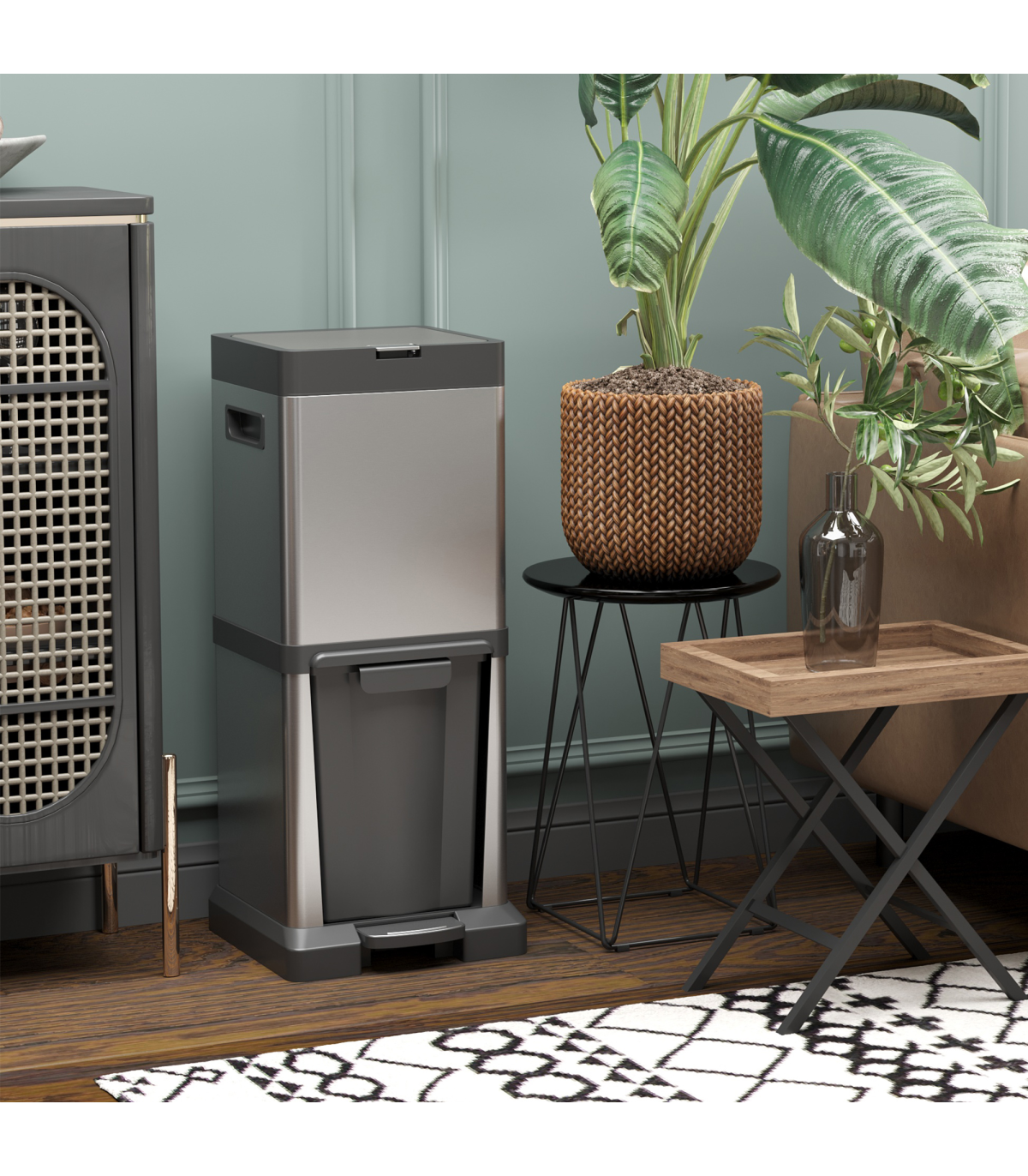● Two removable inner buckets for easy cleaning. Top compartment features a bag-fixing hole and bottom slot comes with handles