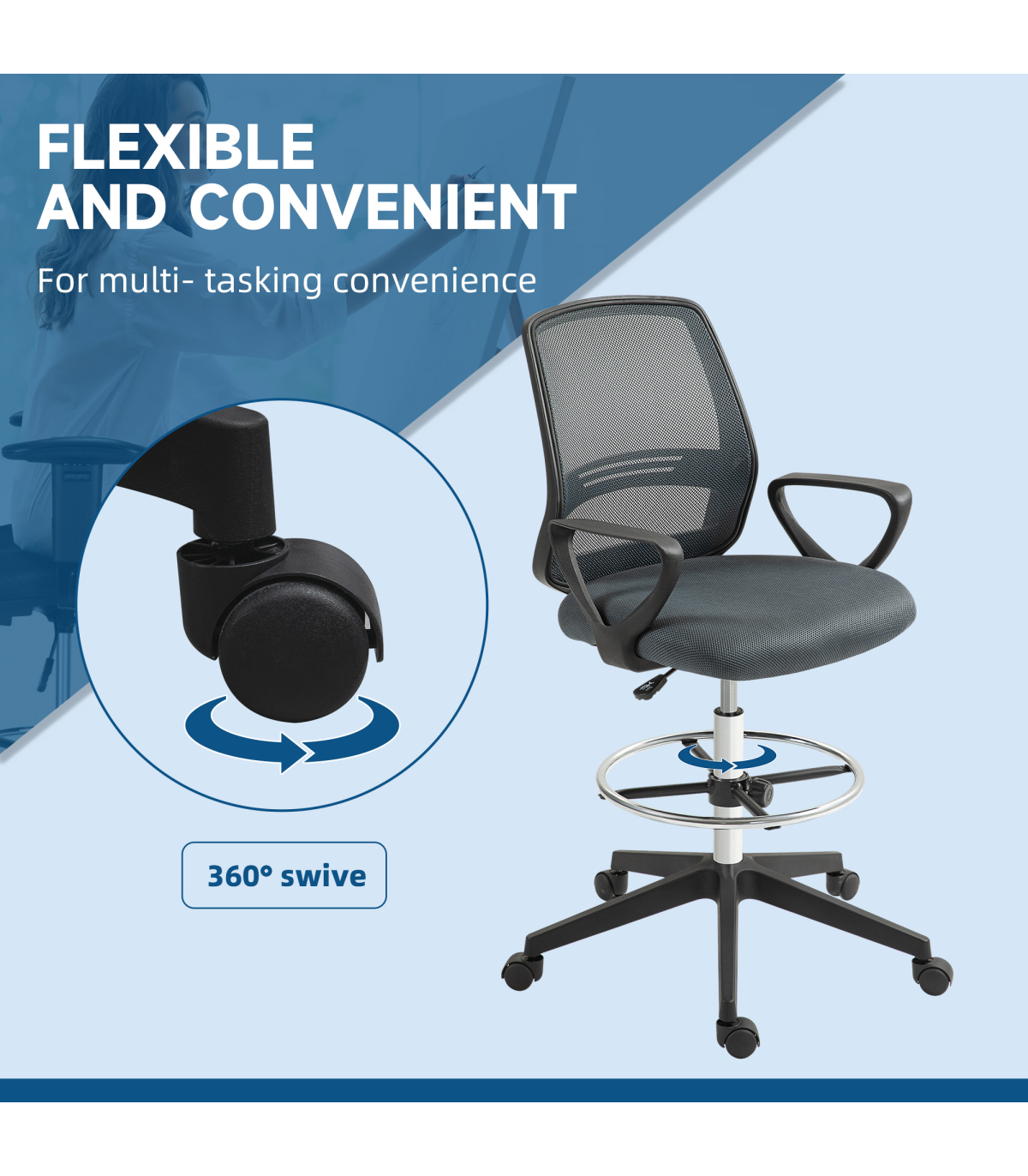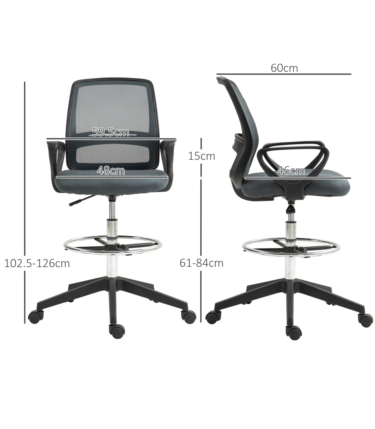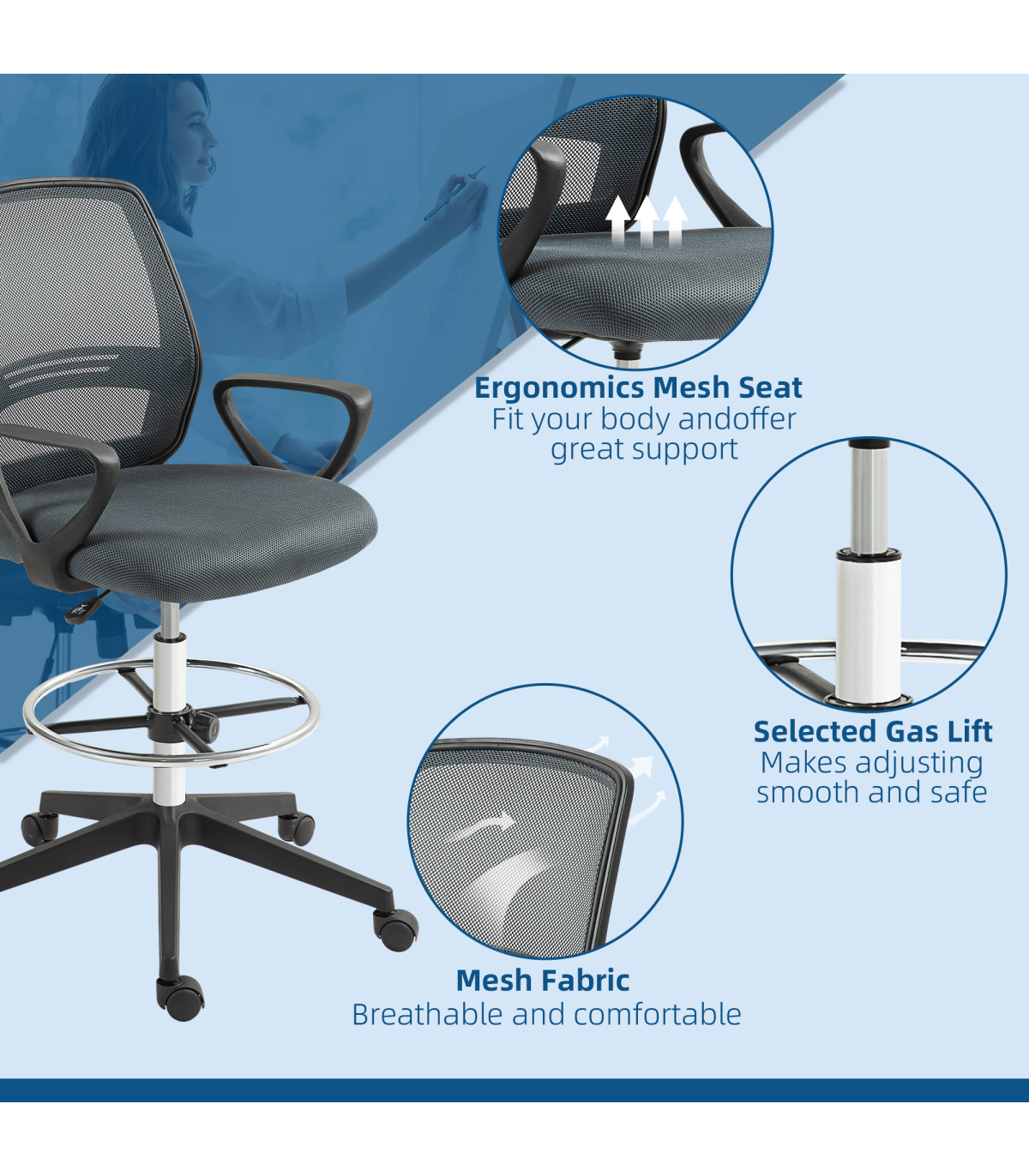 ● Ergonomic design with a foam padded seat, curved back, armrests and adjustable height