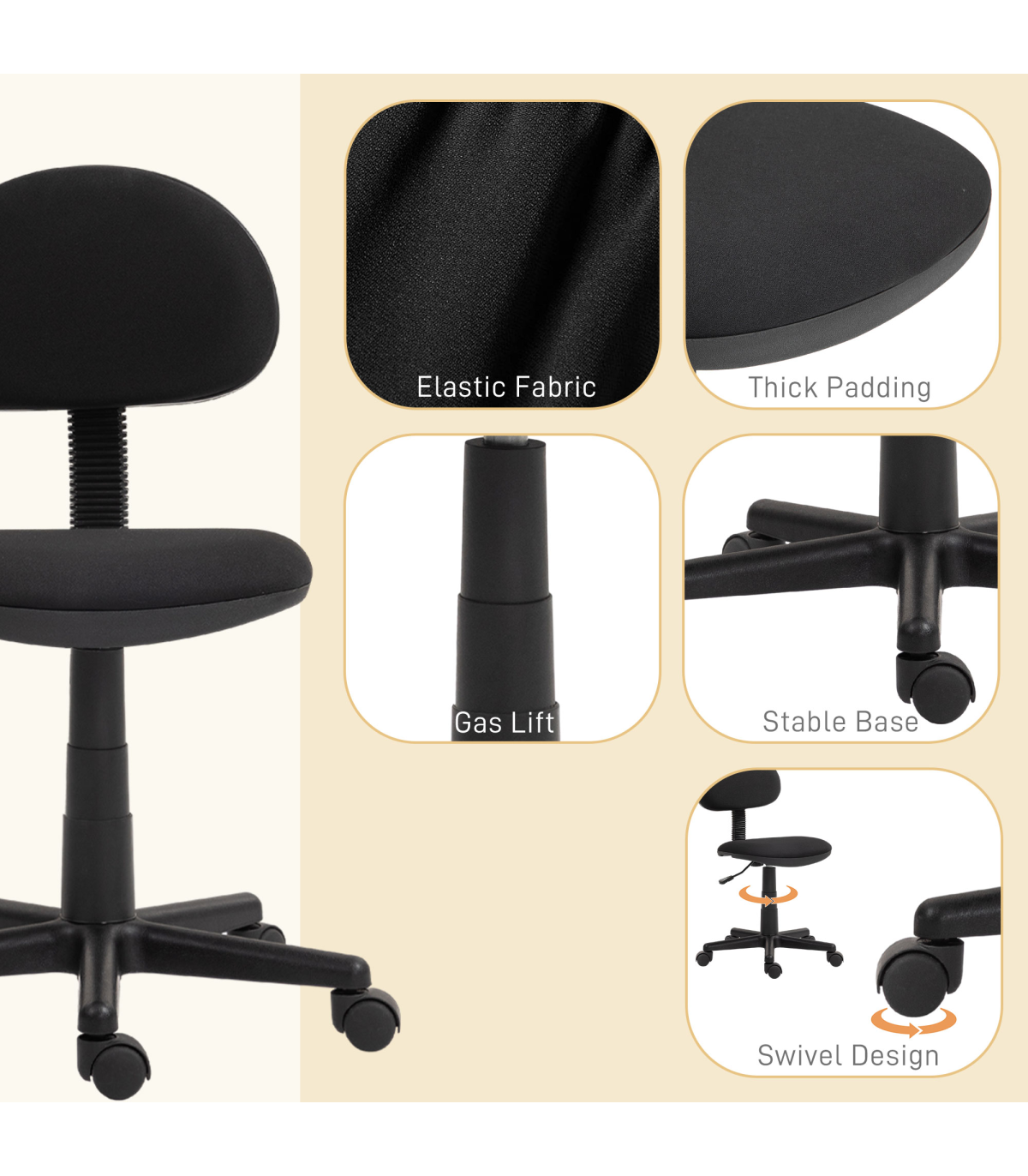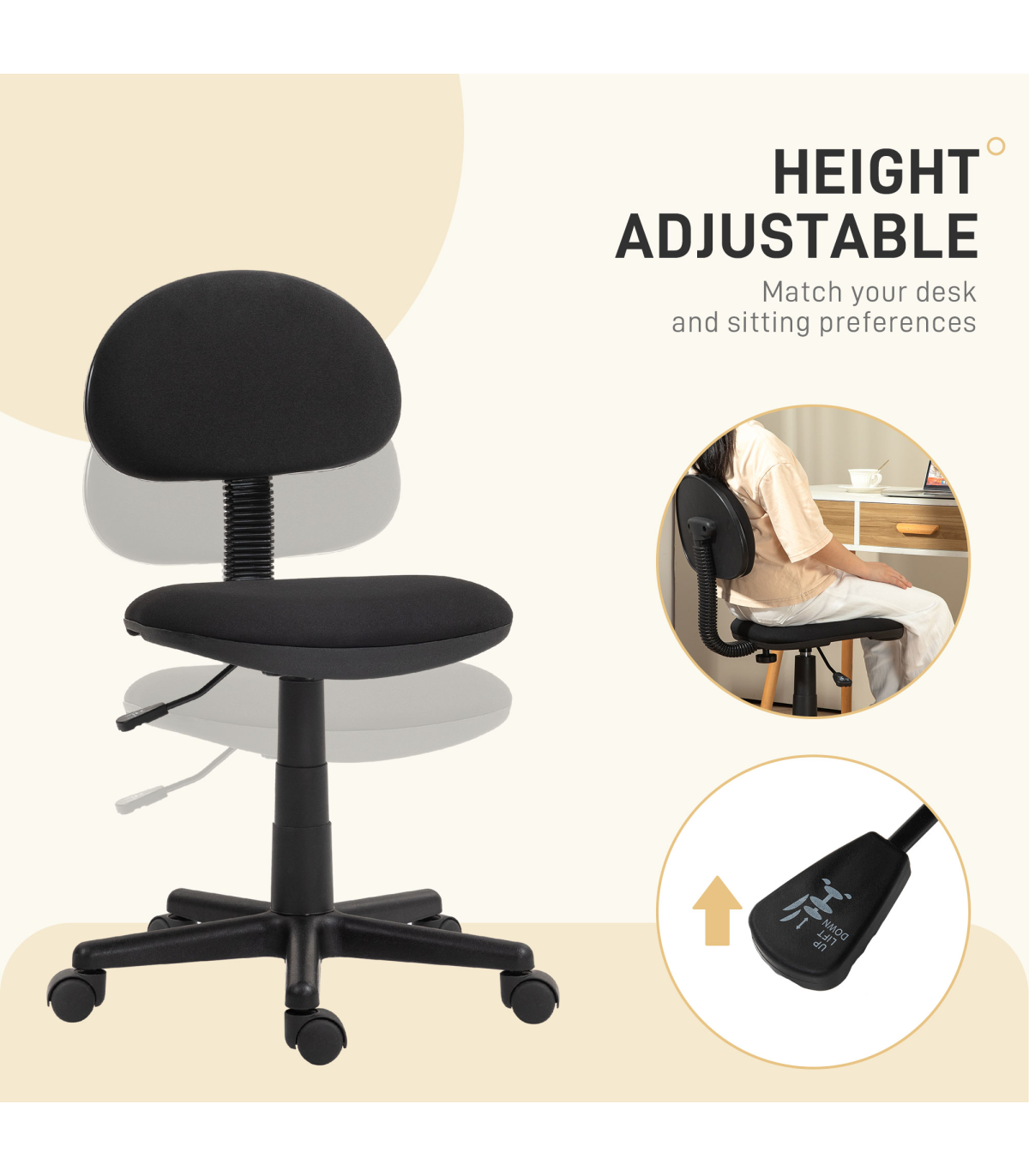● Armless design: study chair offers plenty of working room and tucks under desks easily